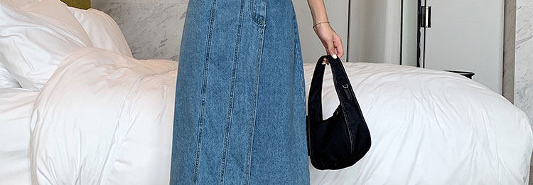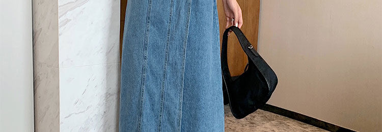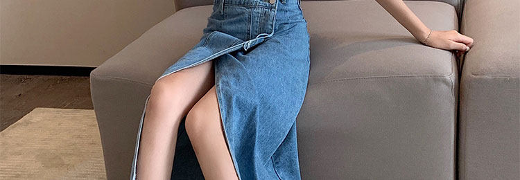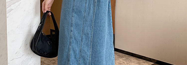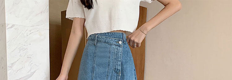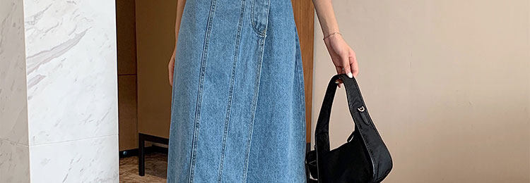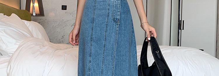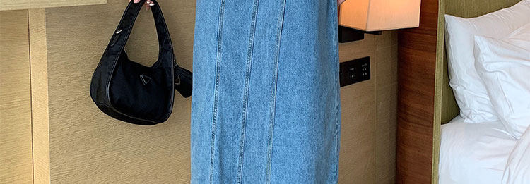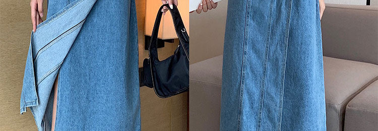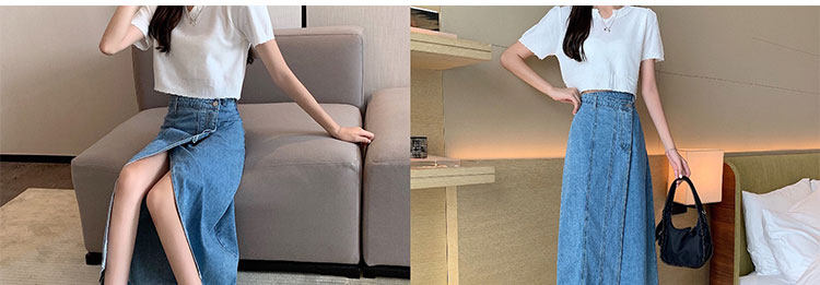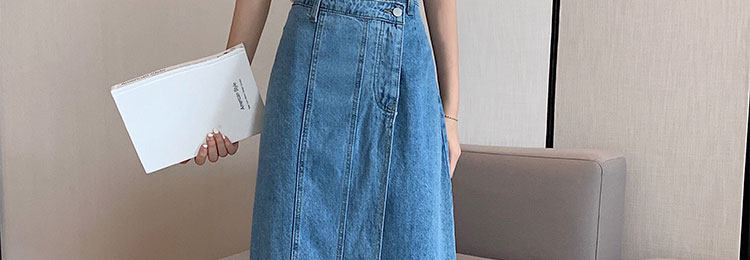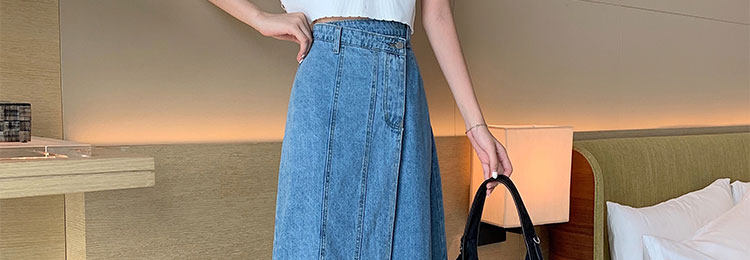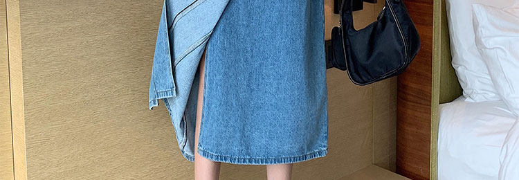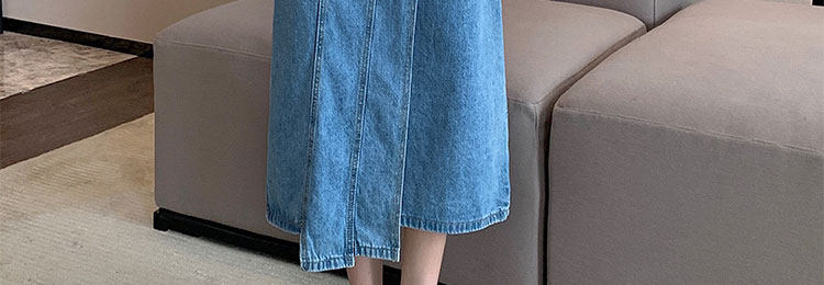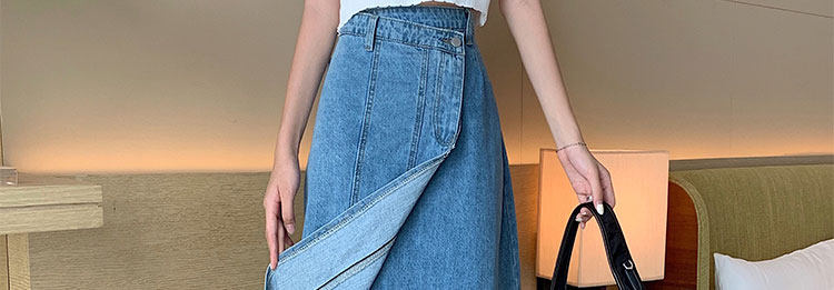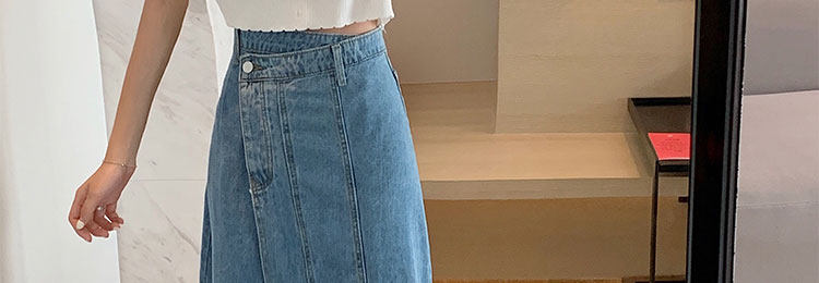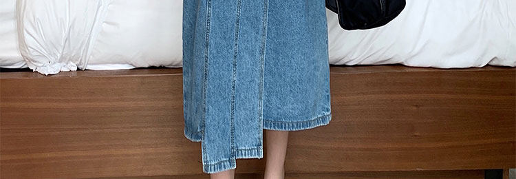 实拍现货 2021夏季薄款不规则一片式设计遮胯显瘦牛仔裙