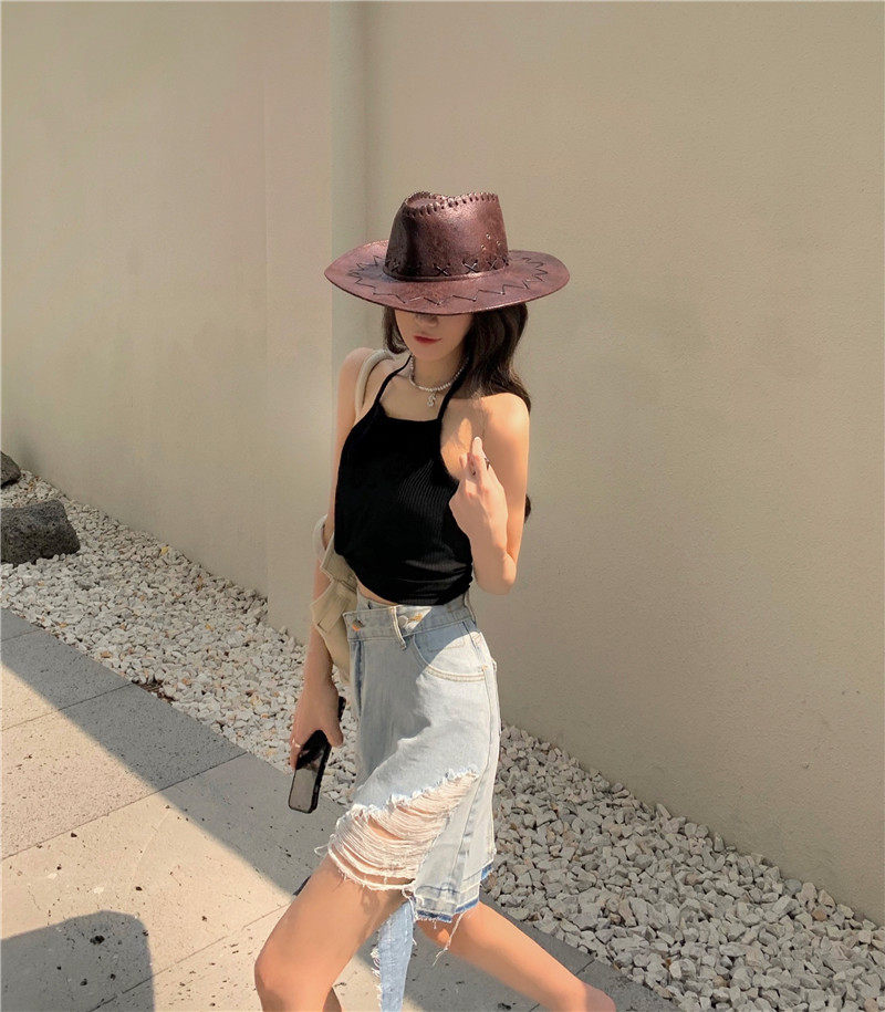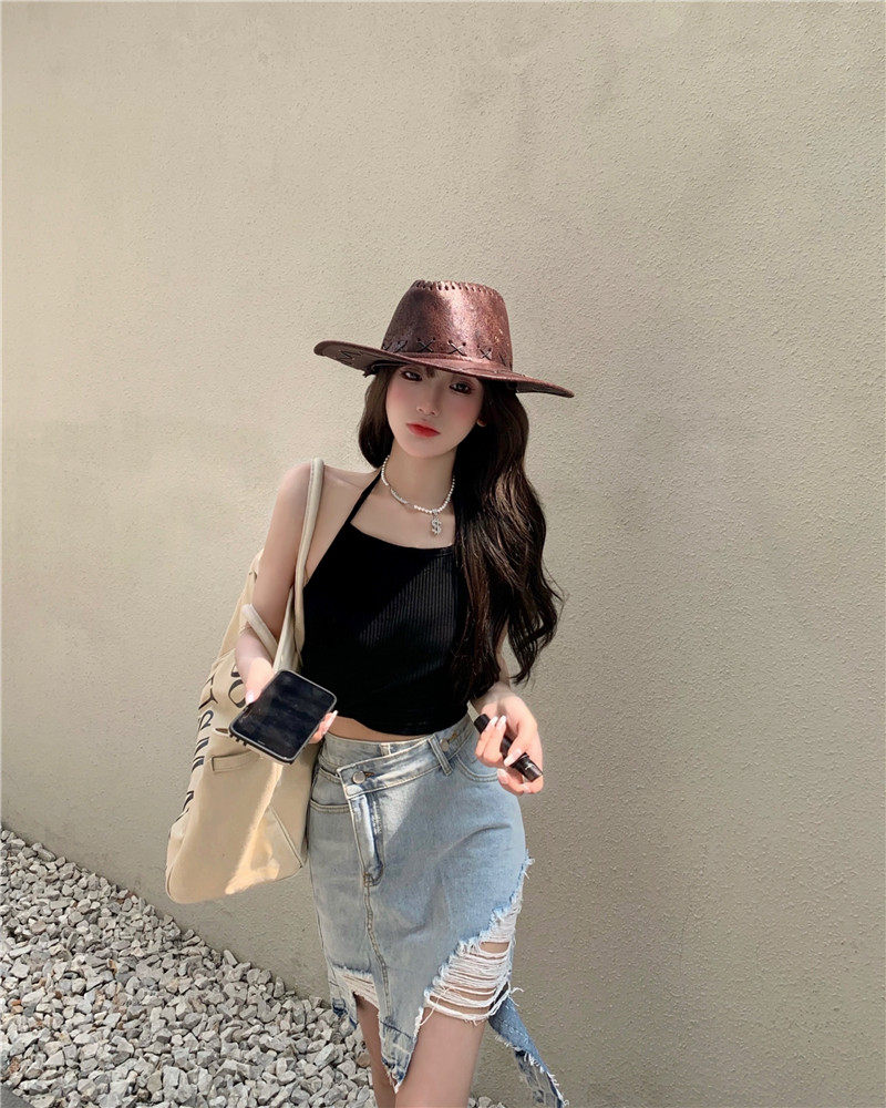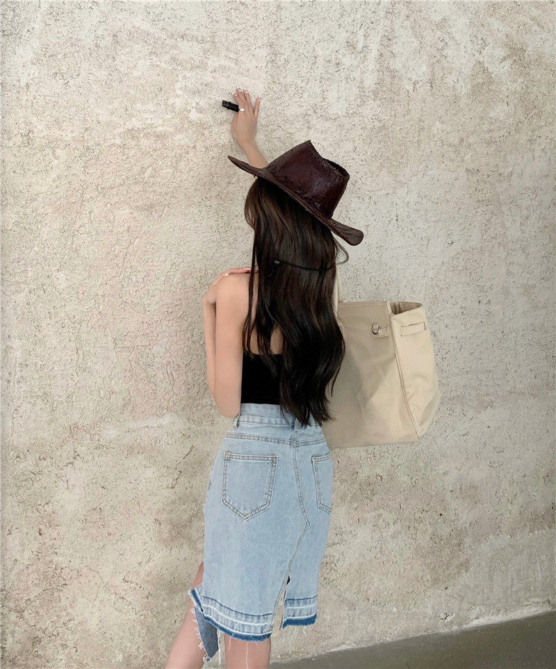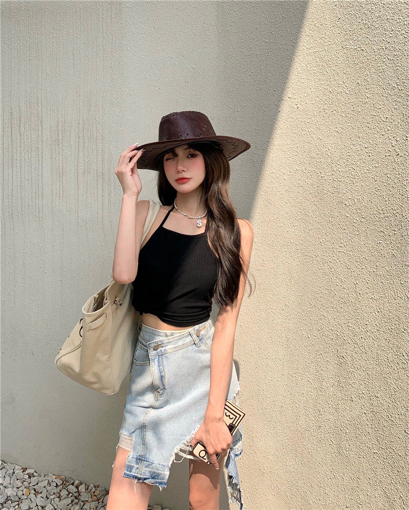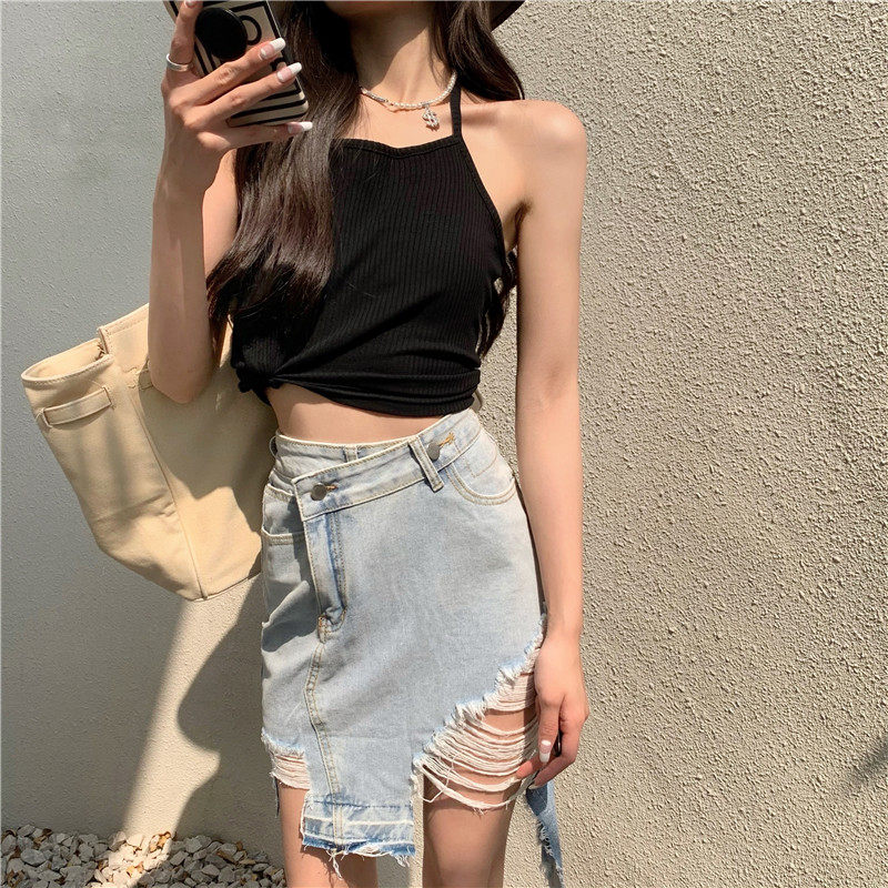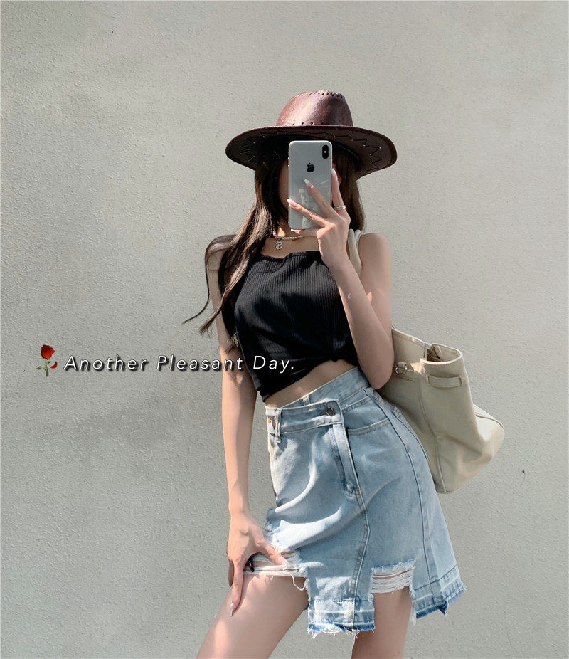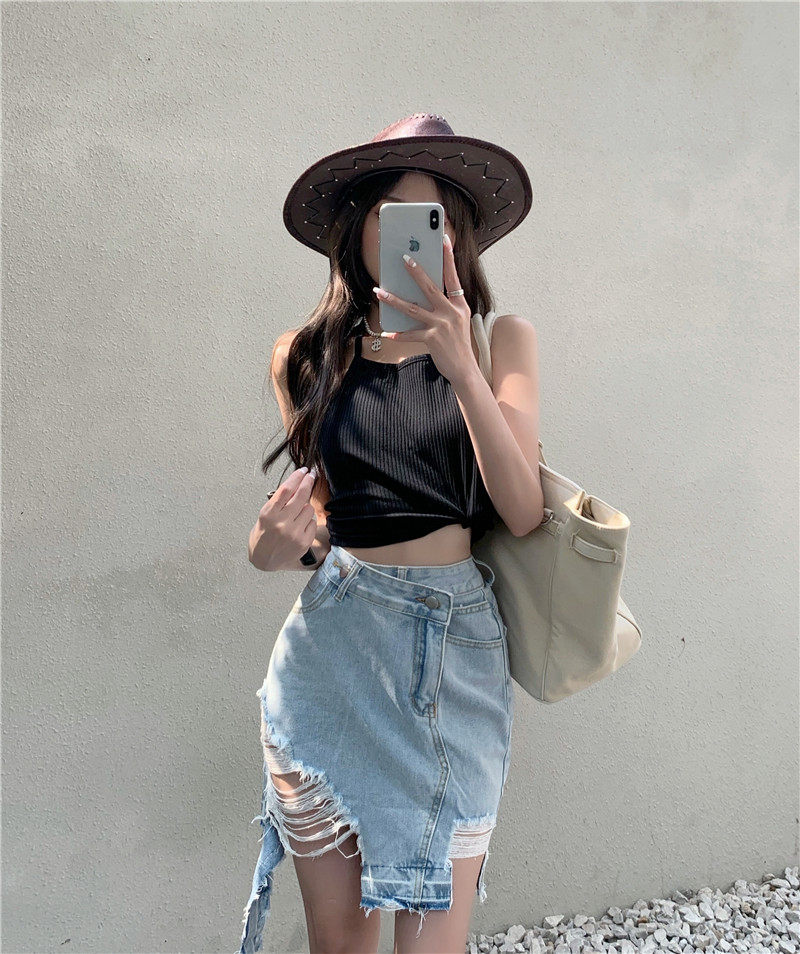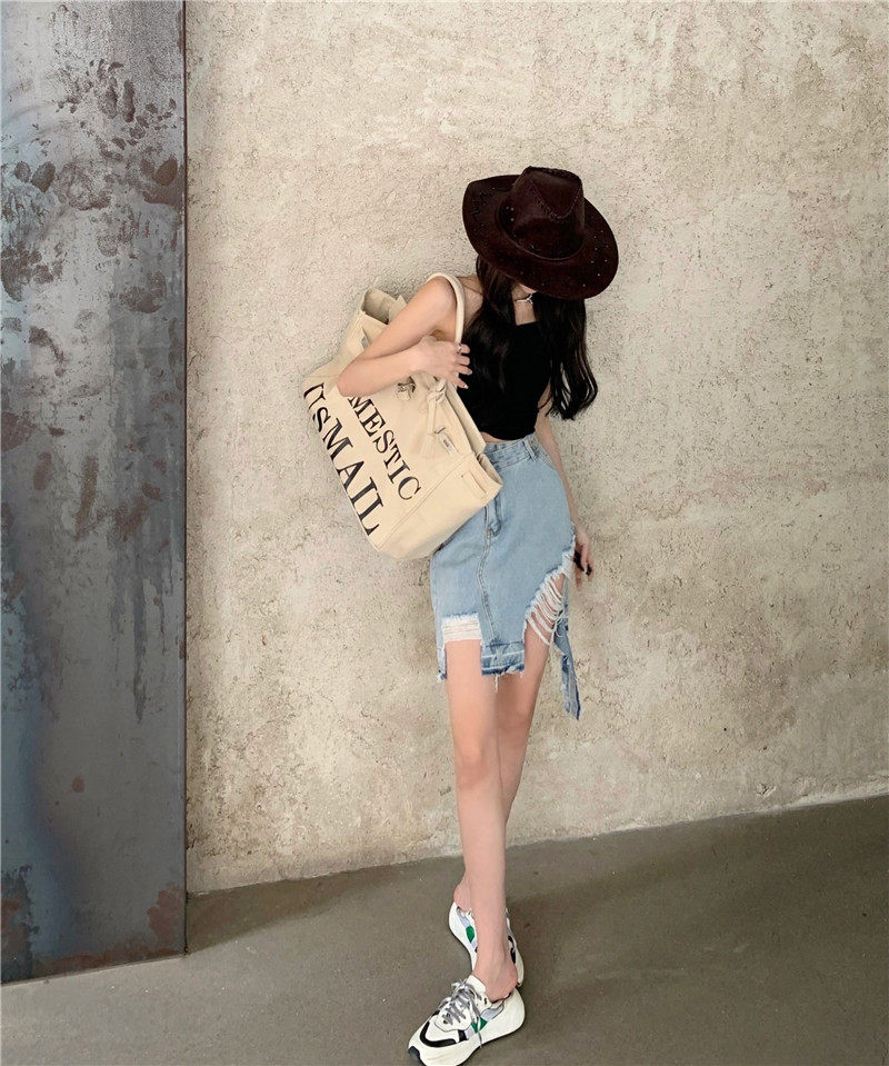 特价不减实拍港风复古薄款破洞短裙重工毛边高腰不规则牛仔半身裙