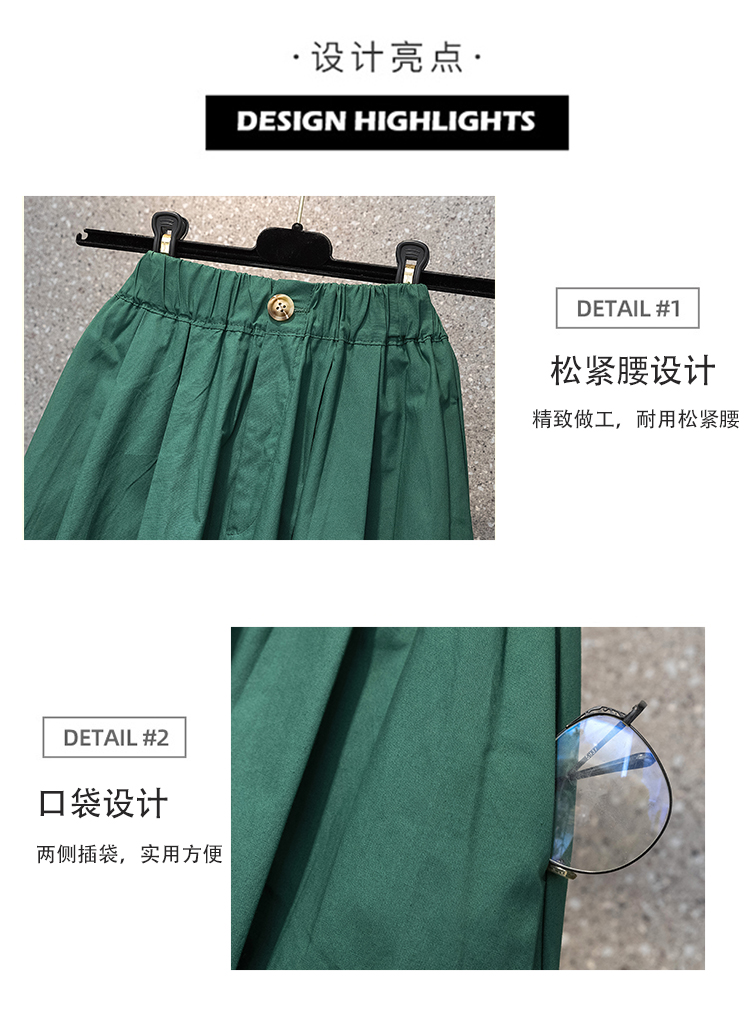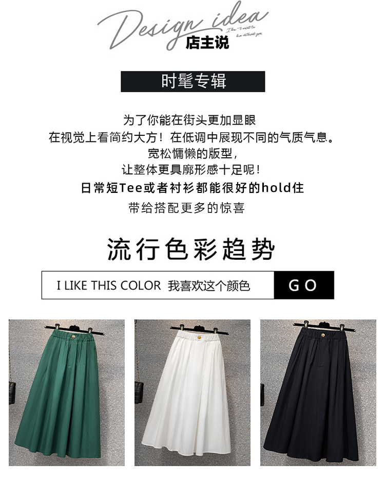 实拍现货大码女装工装半身裙日系夏季中长款伞裙高腰显瘦A字裙