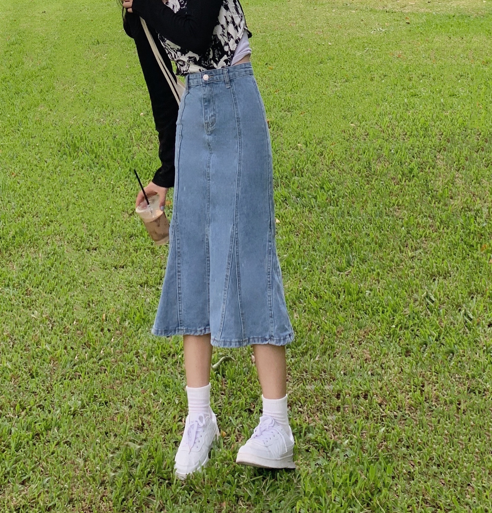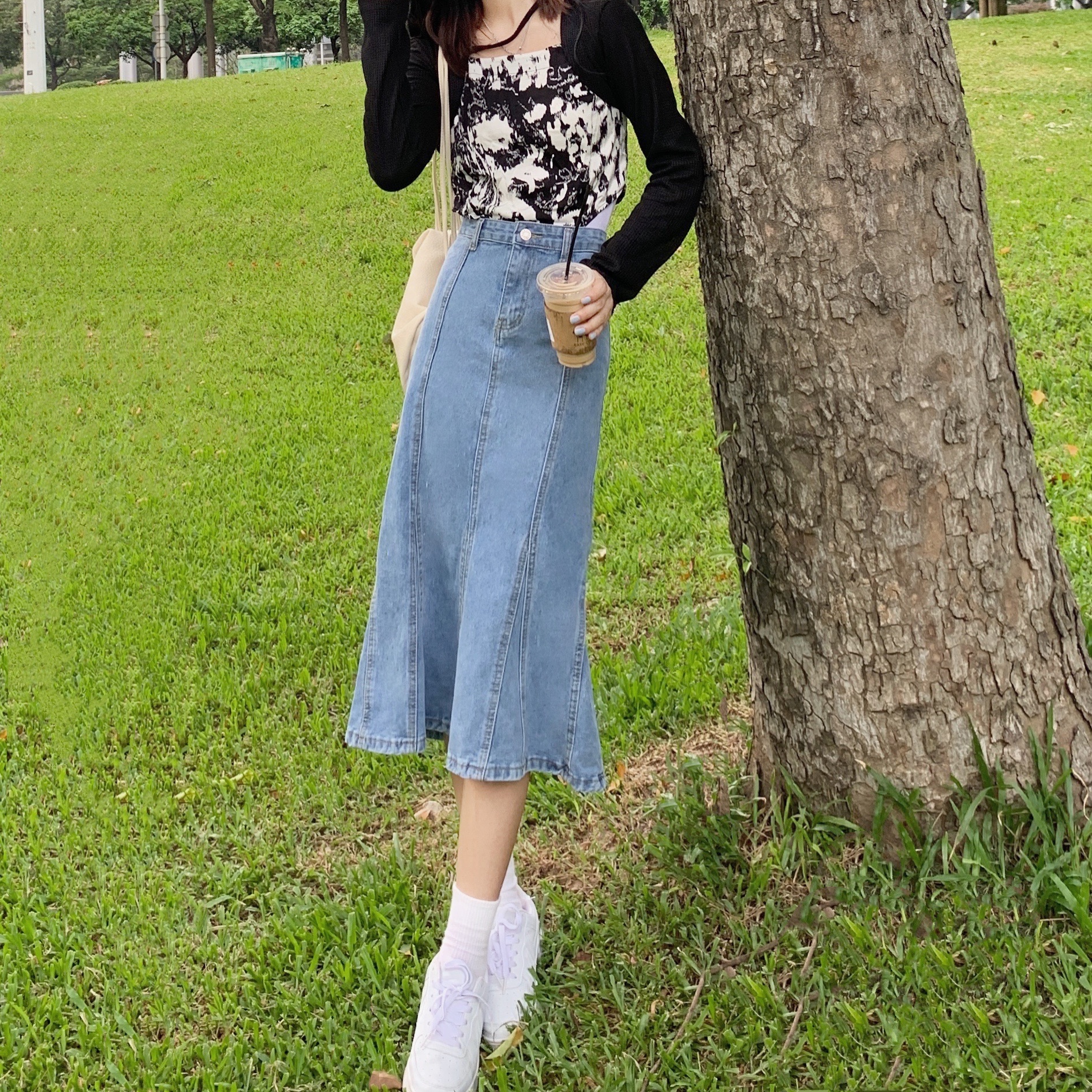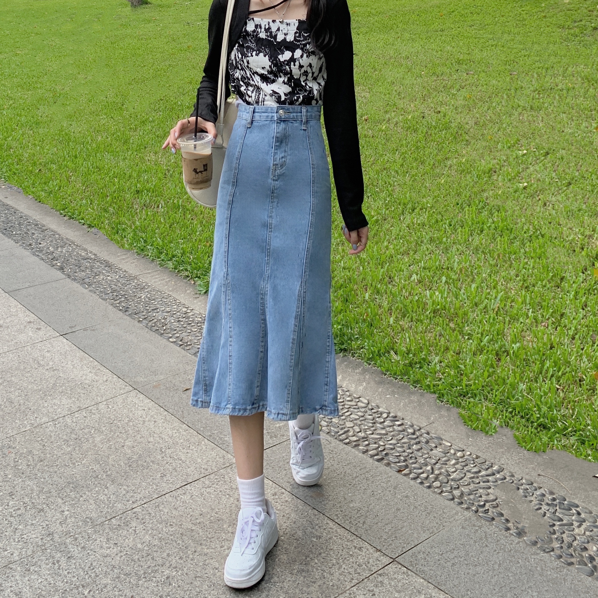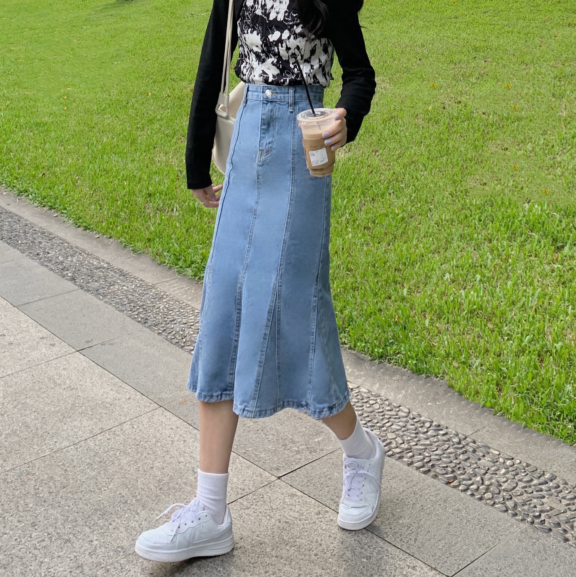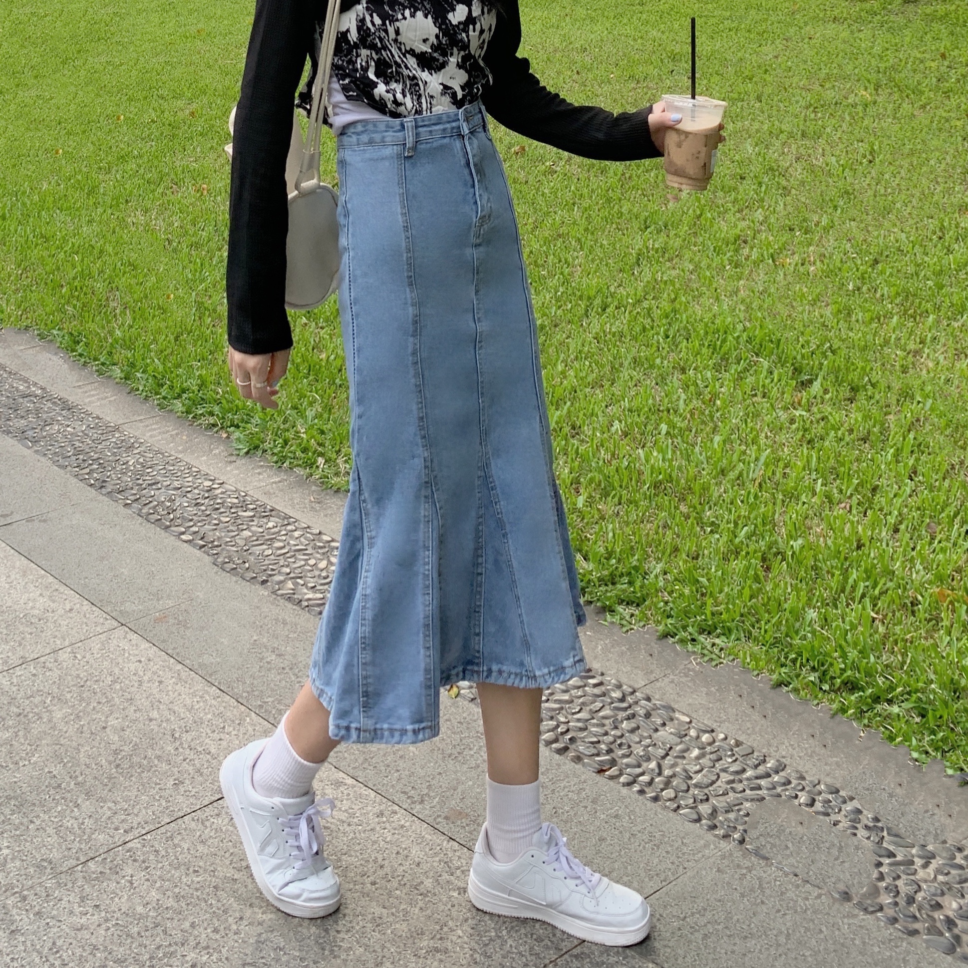 实拍大码牛仔半身裙秋夏胖妹妹新款ins韩版包臀百褶鱼尾中长裙潮