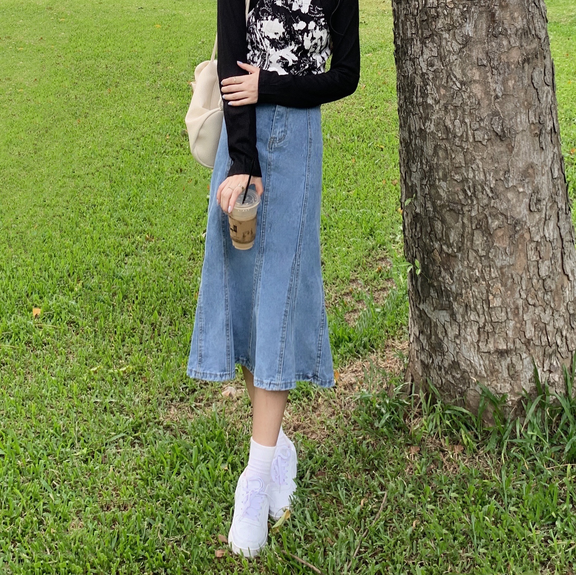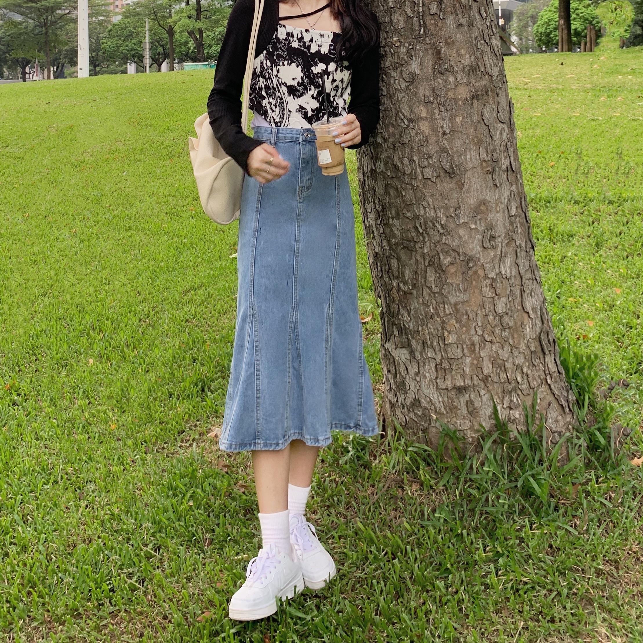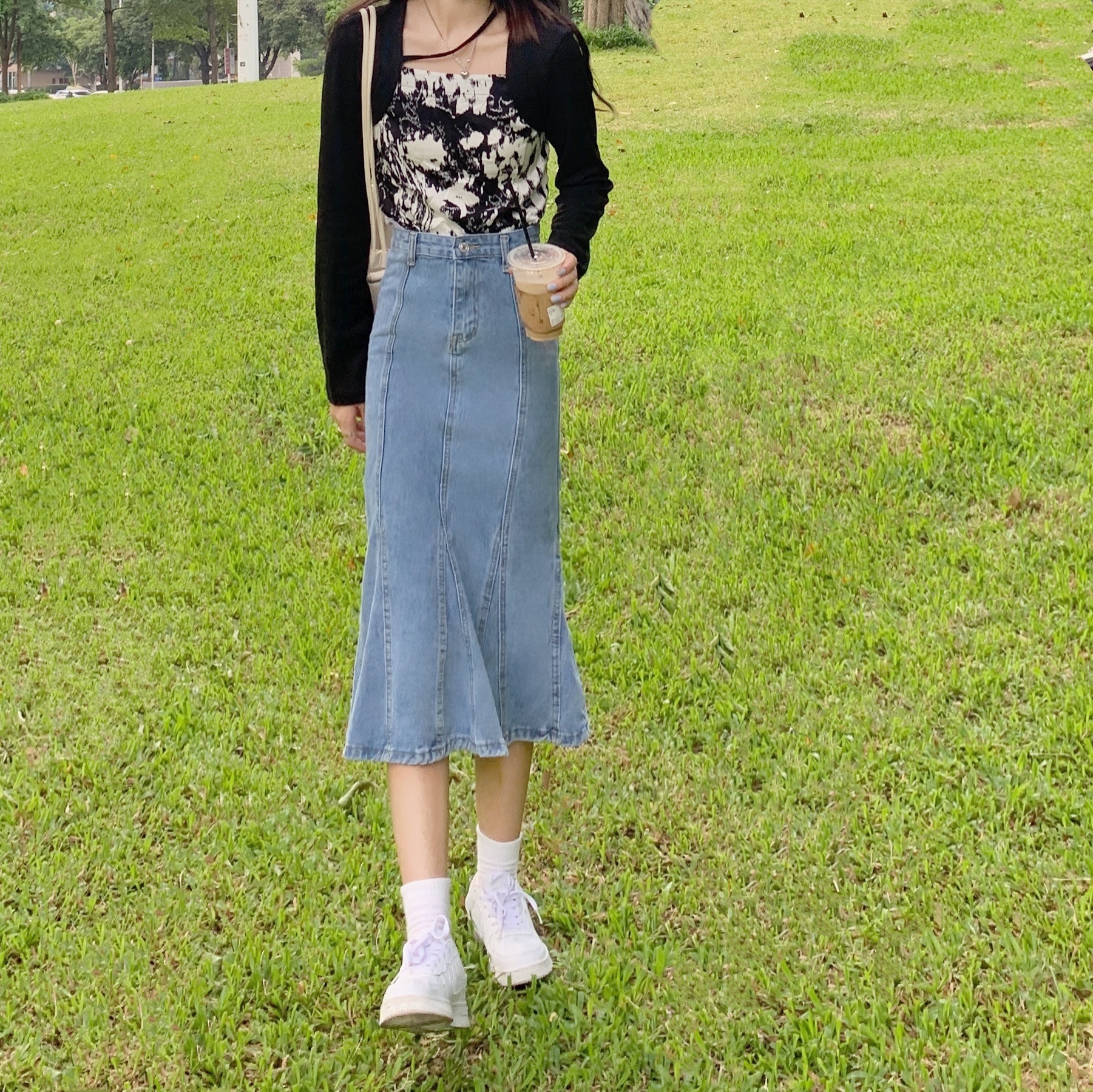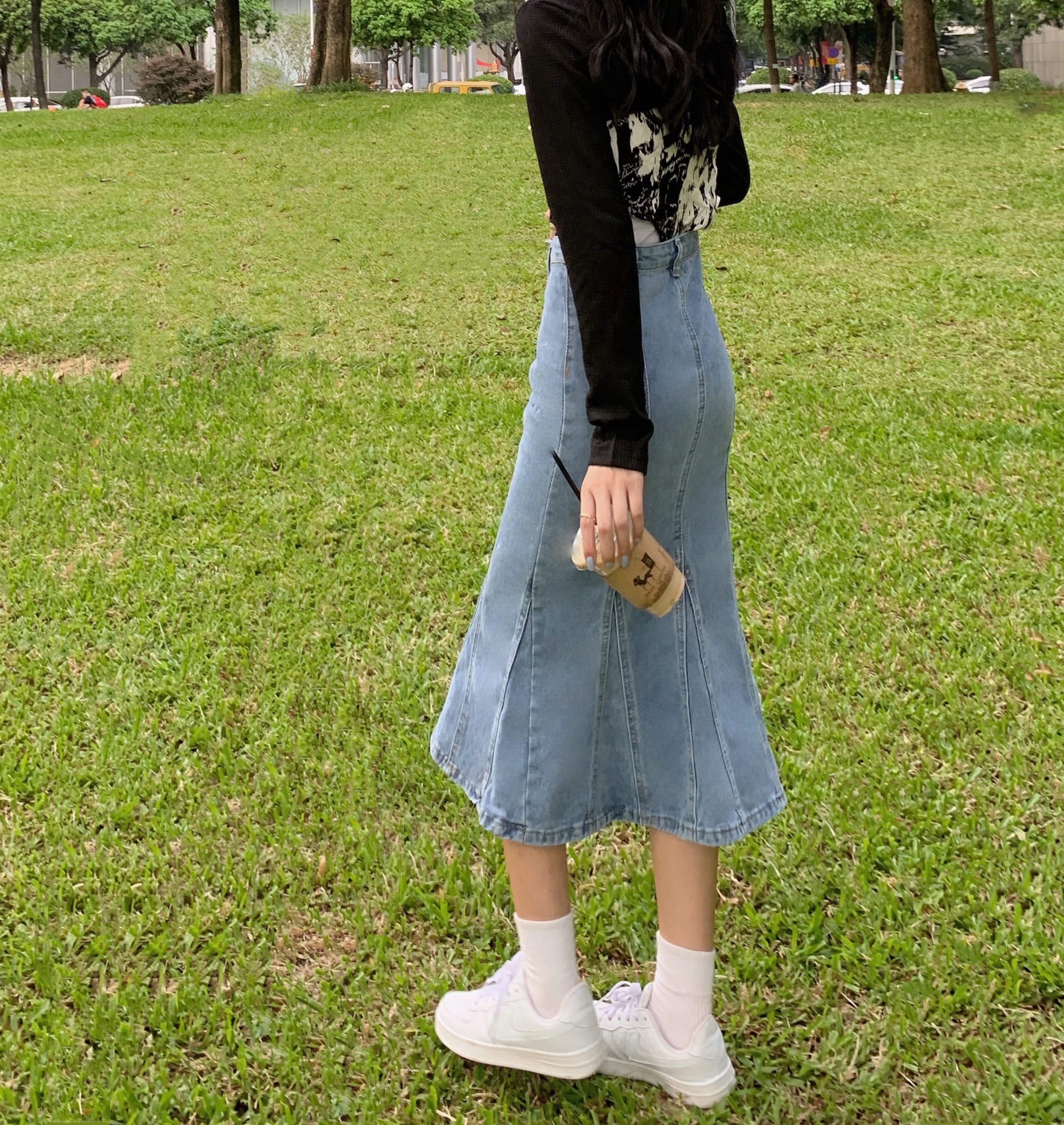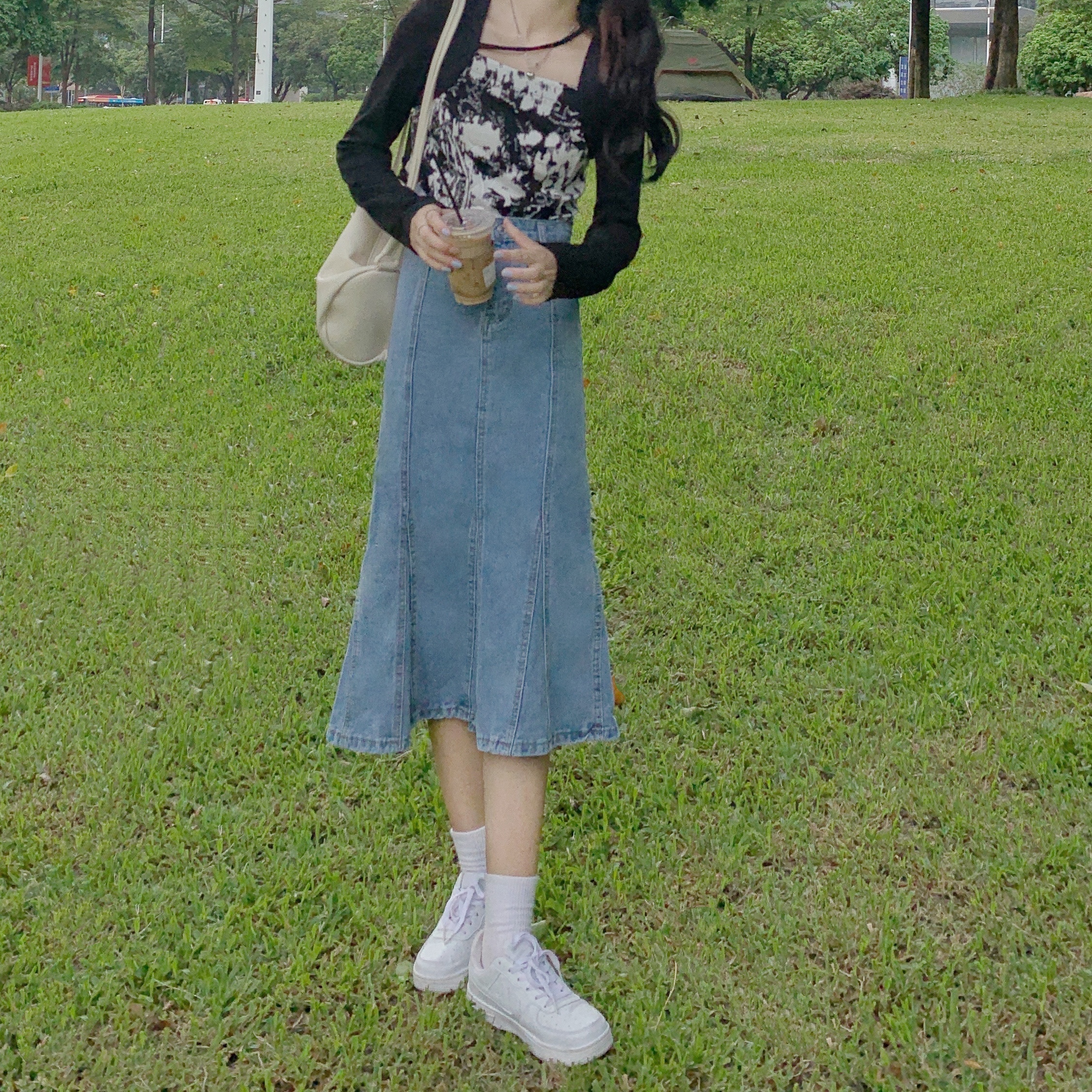 实拍大码牛仔半身裙秋夏胖妹妹新款ins韩版包臀百褶鱼尾中长裙潮