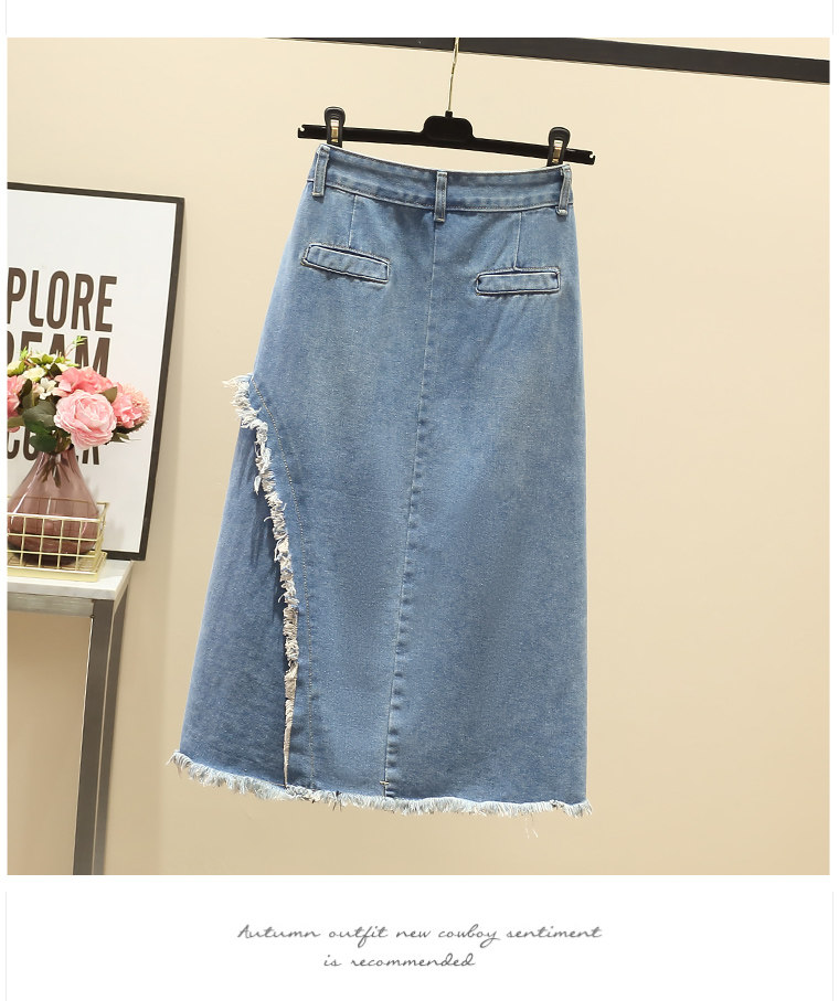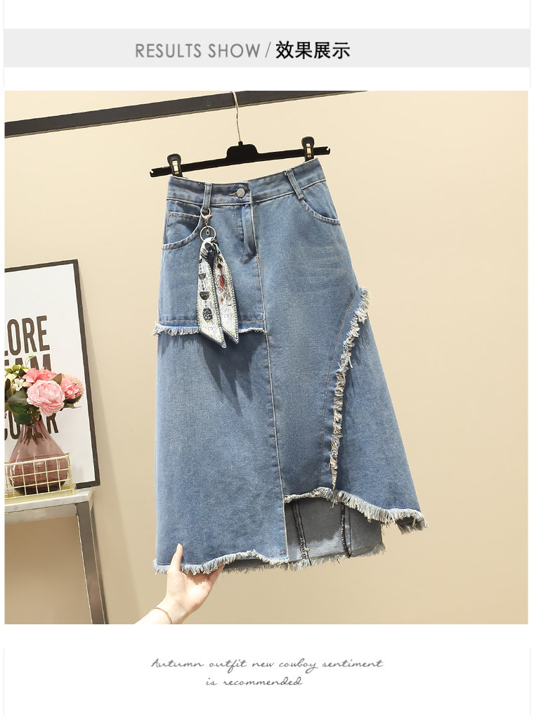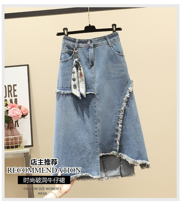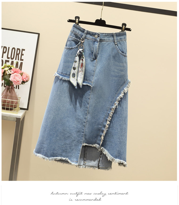 实拍现货2021大码女装胖妹妹mm中长款高腰a字半身裙显瘦牛仔裙