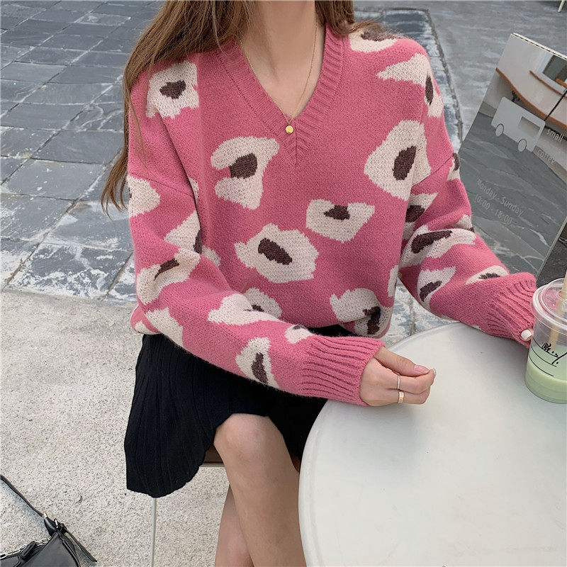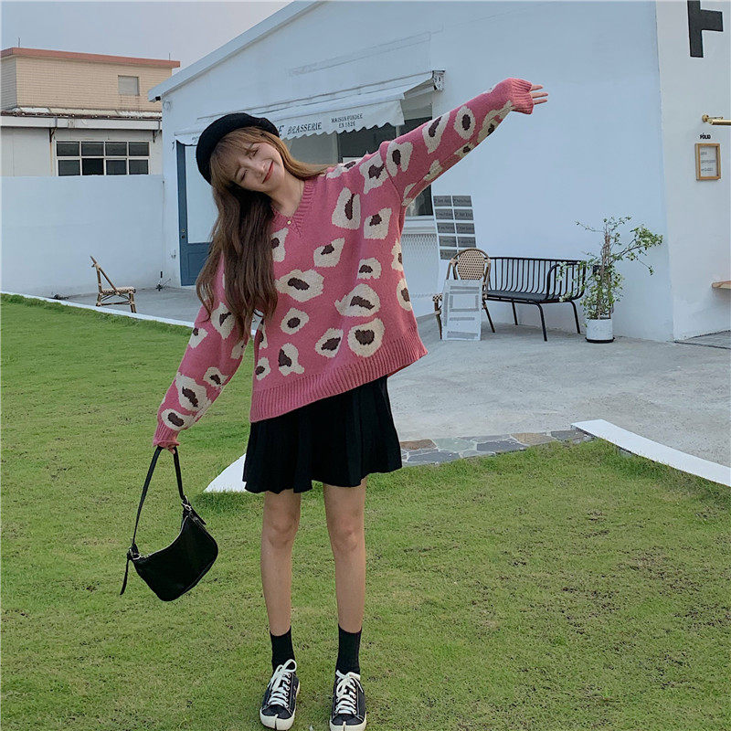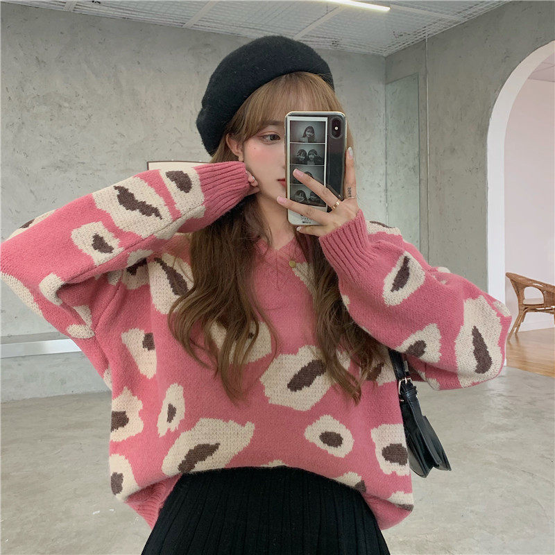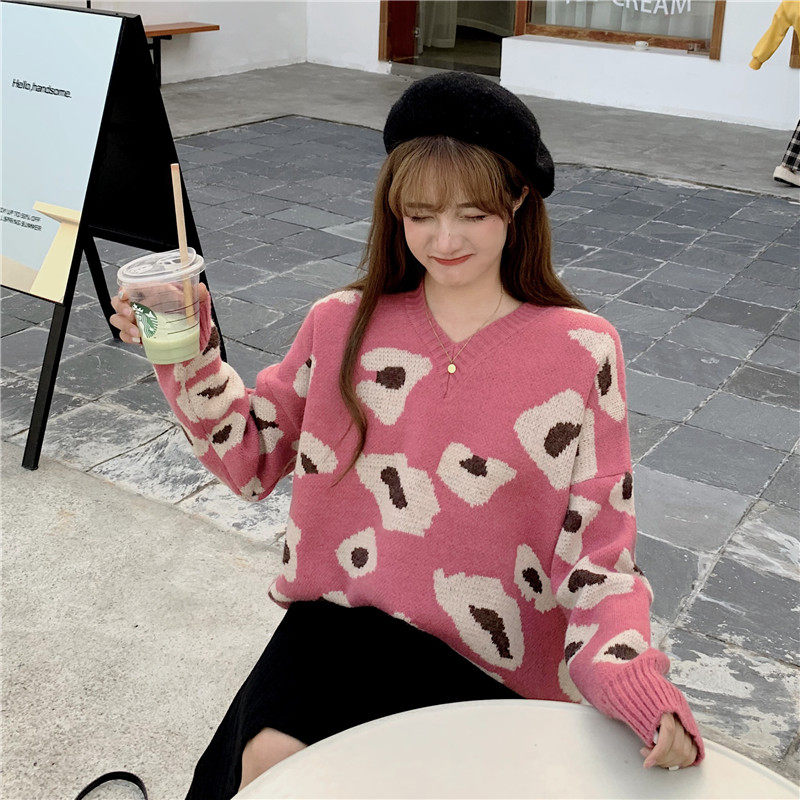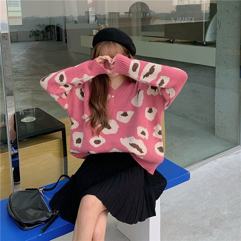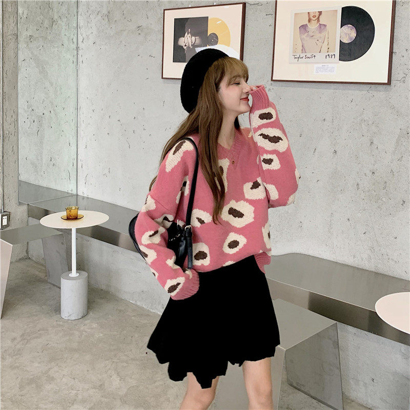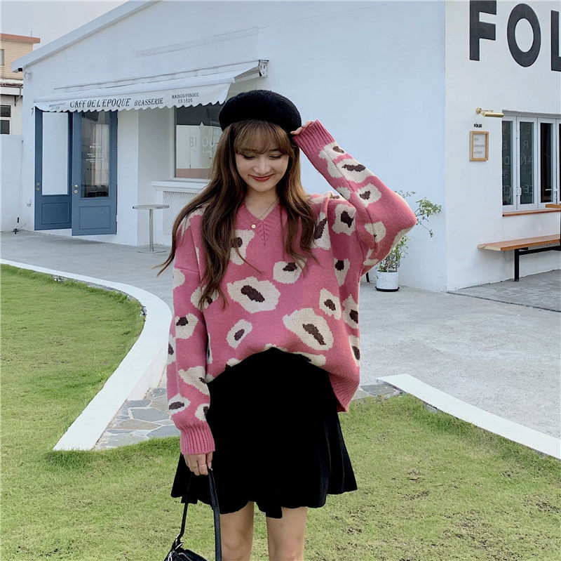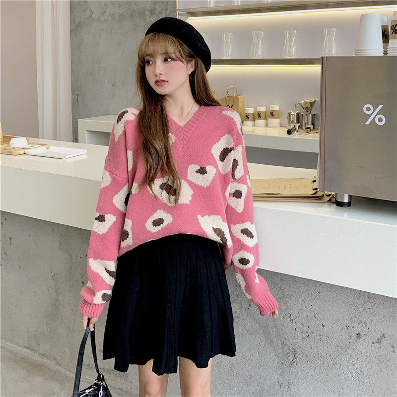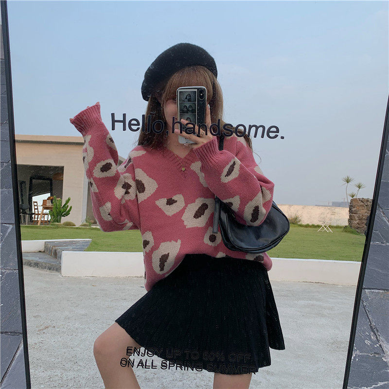实拍大码装慵懒风宽松针织衫显瘦套头V领毛衣+针织半身裙子