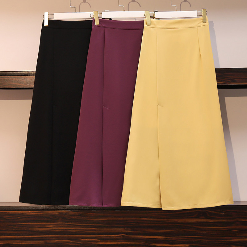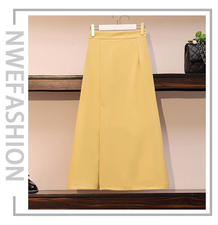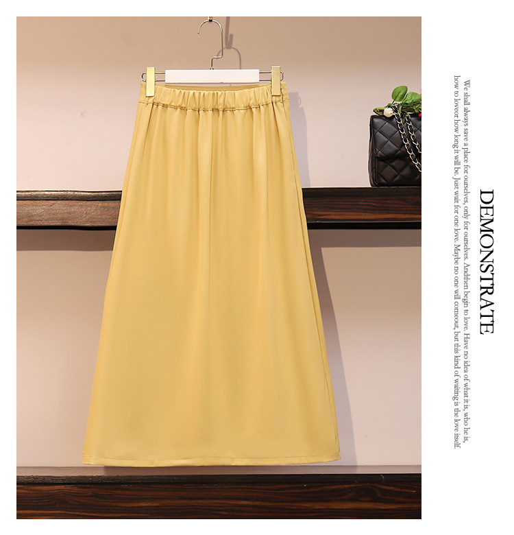 2021春夏新款胖MM淑女风显瘦雪纺开叉半身裙