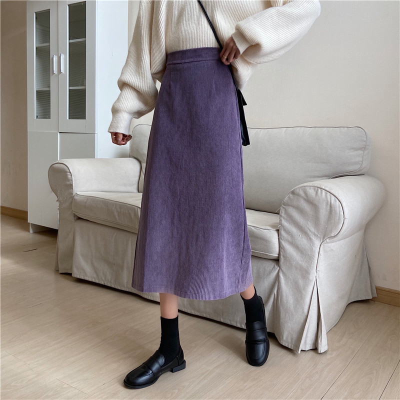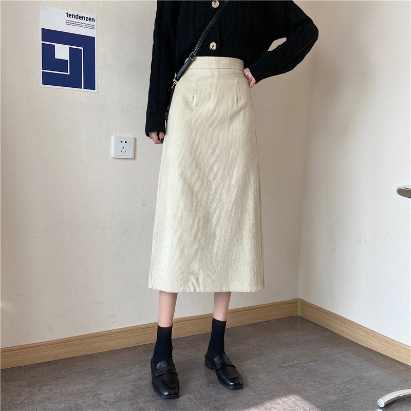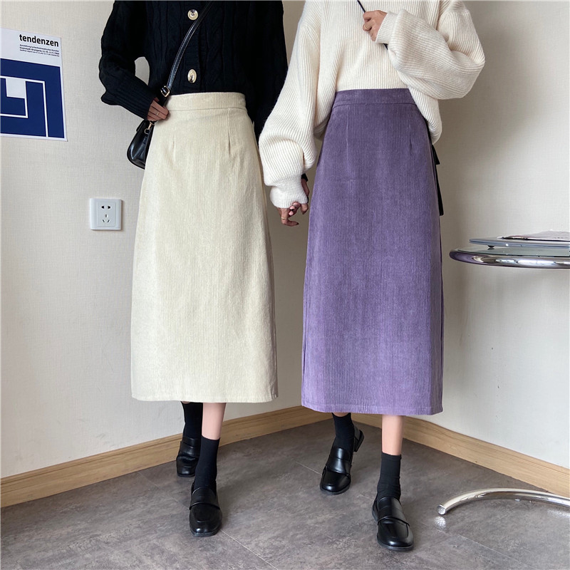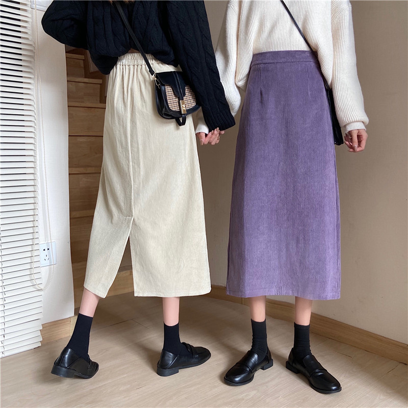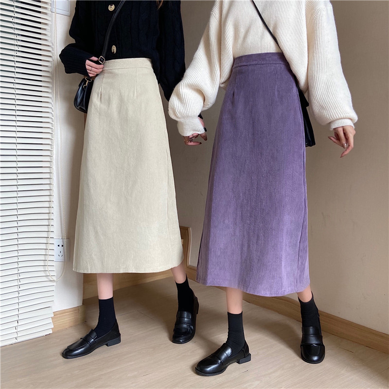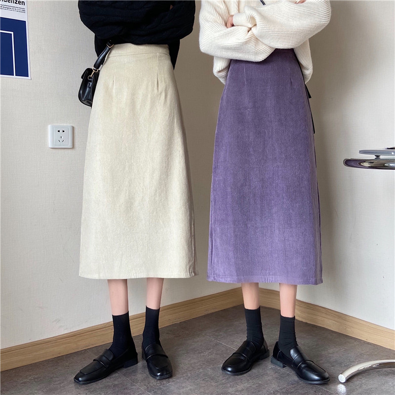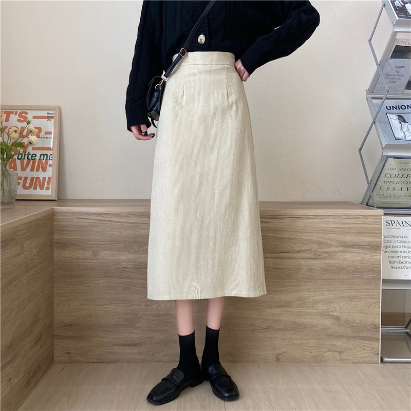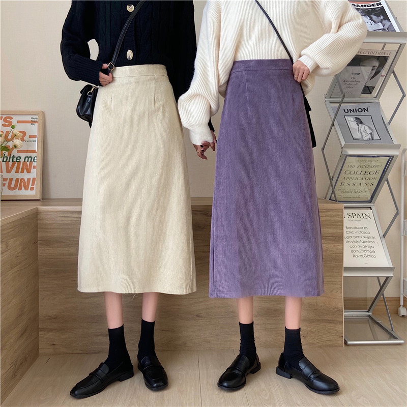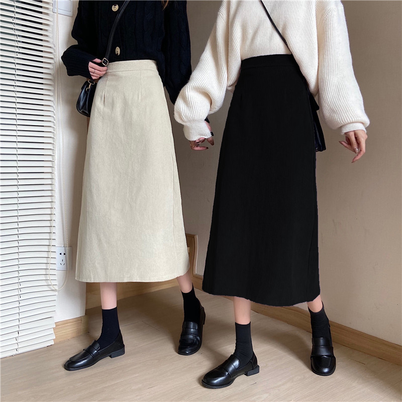 实拍~大码女装冬季新款灯芯绒半身裙女秋冬高腰A字裙中长款包臀裙