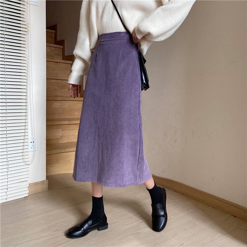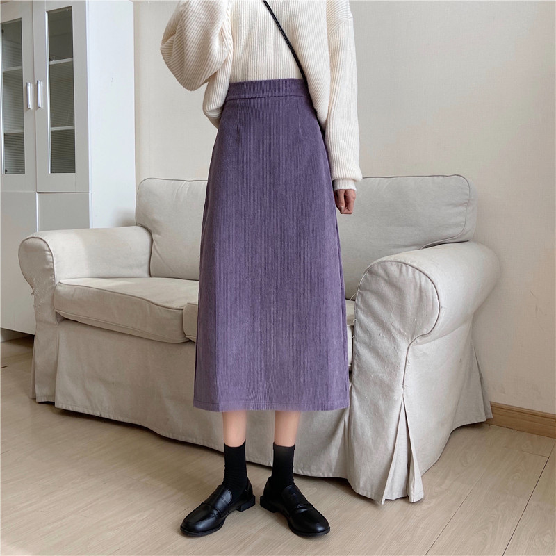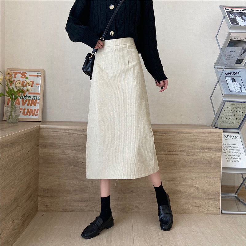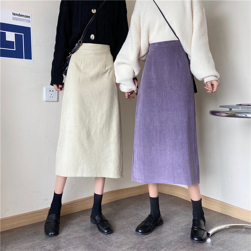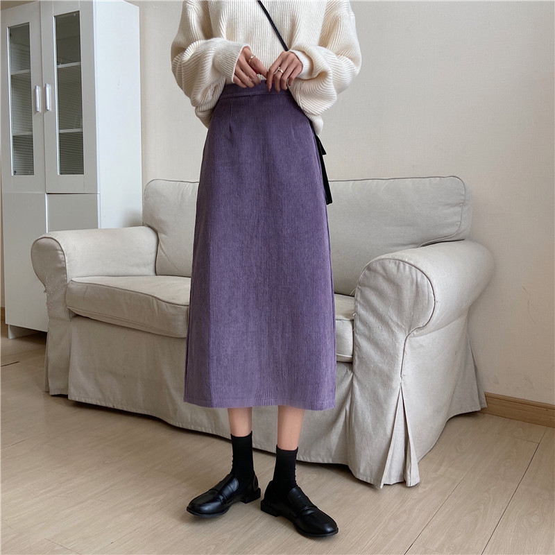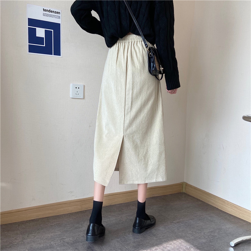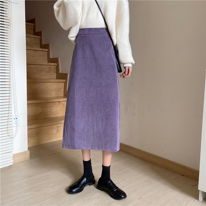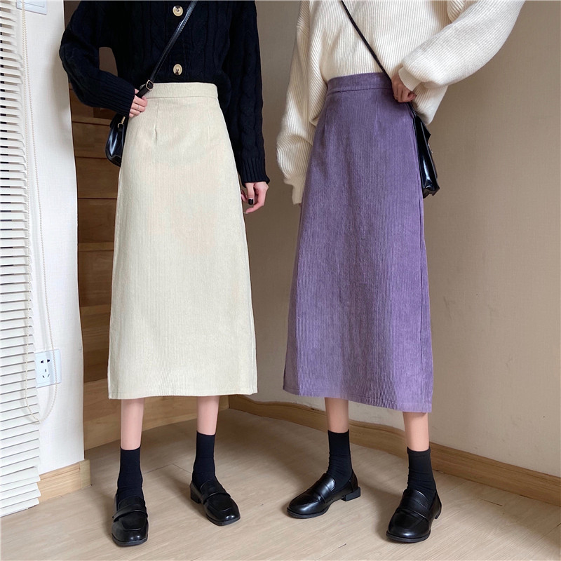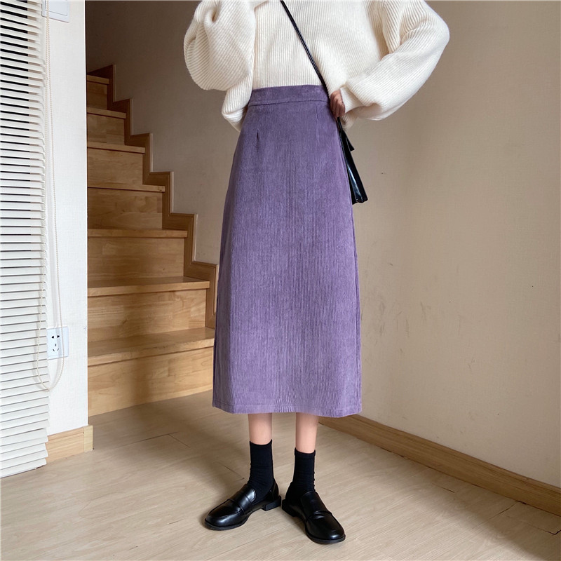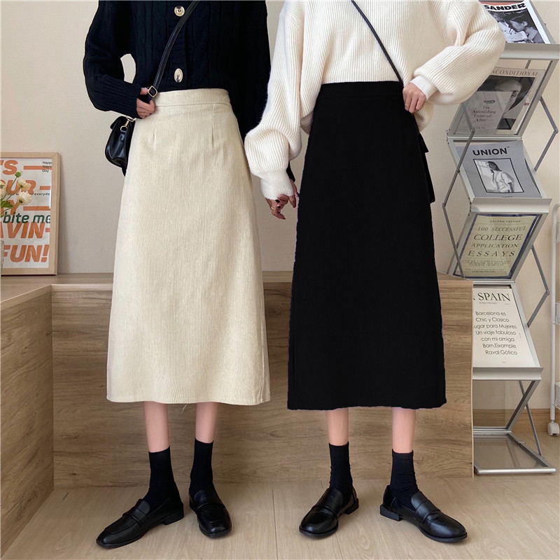 实拍~大码女装冬季新款灯芯绒半身裙女秋冬高腰A字裙中长款包臀裙