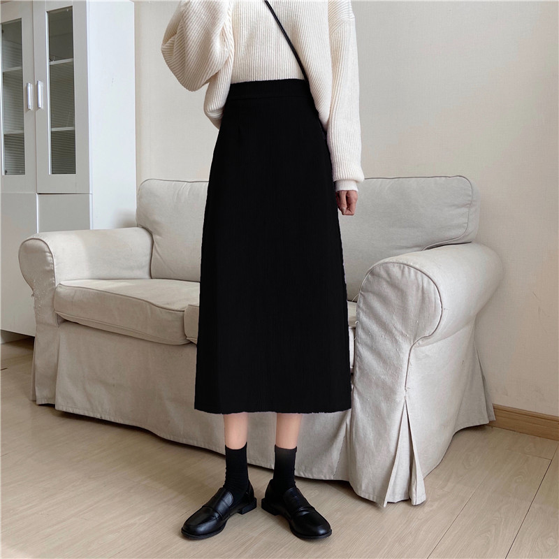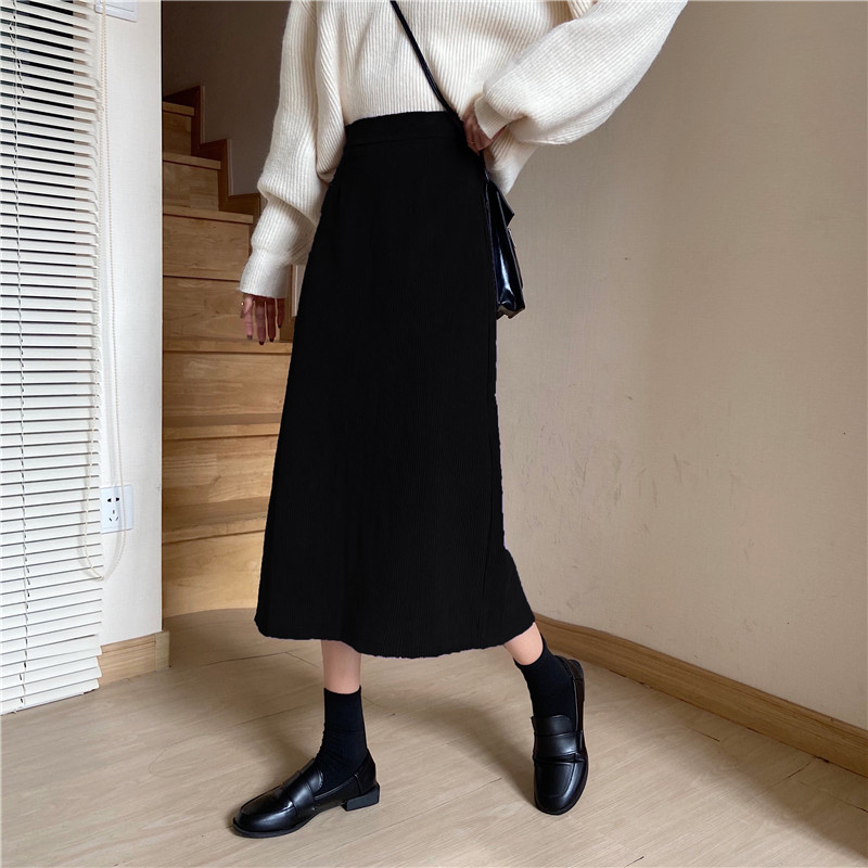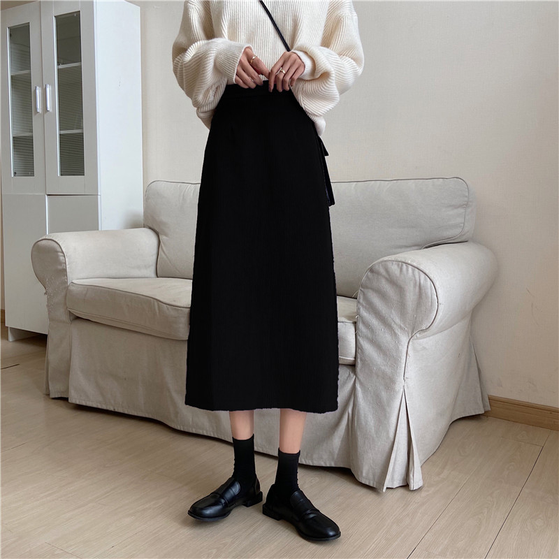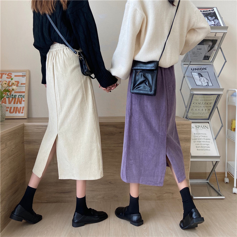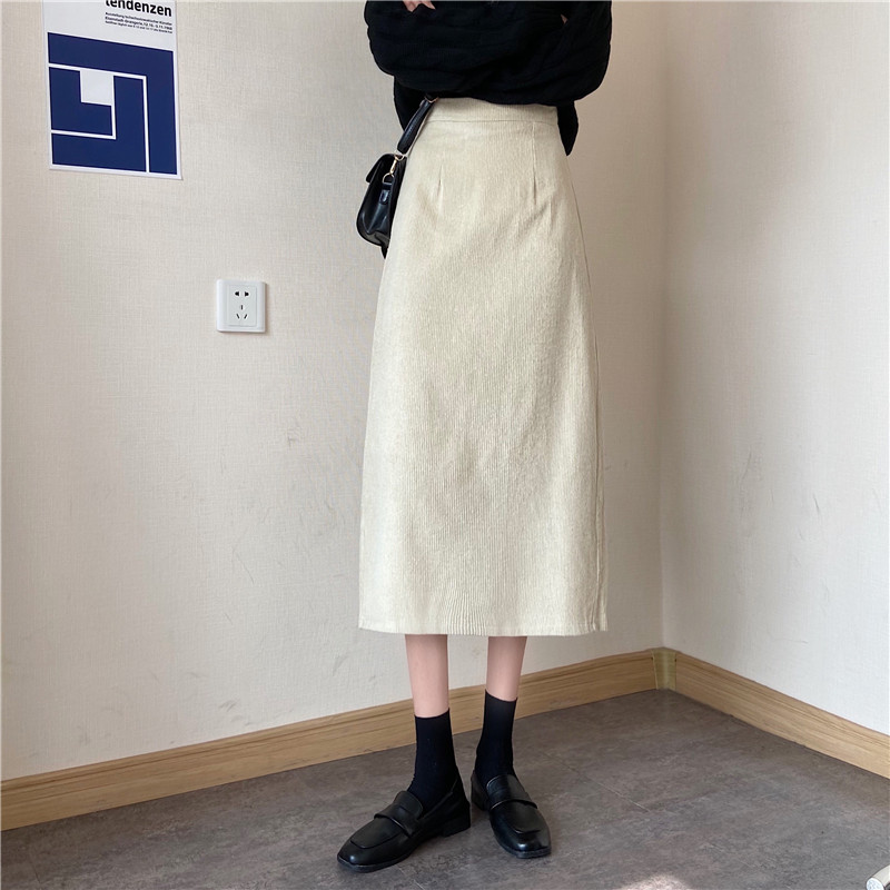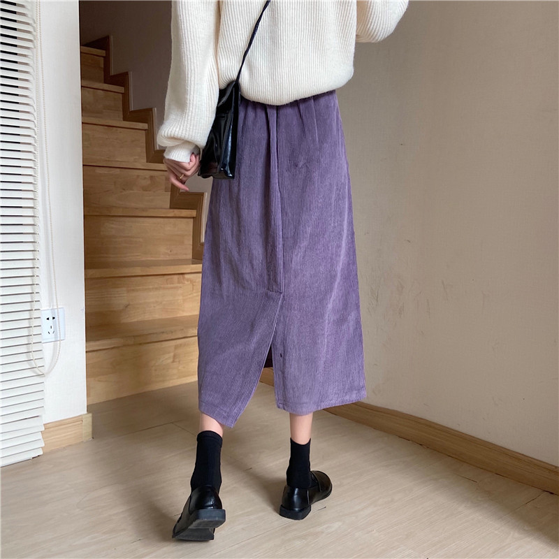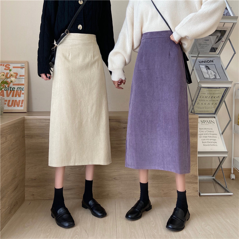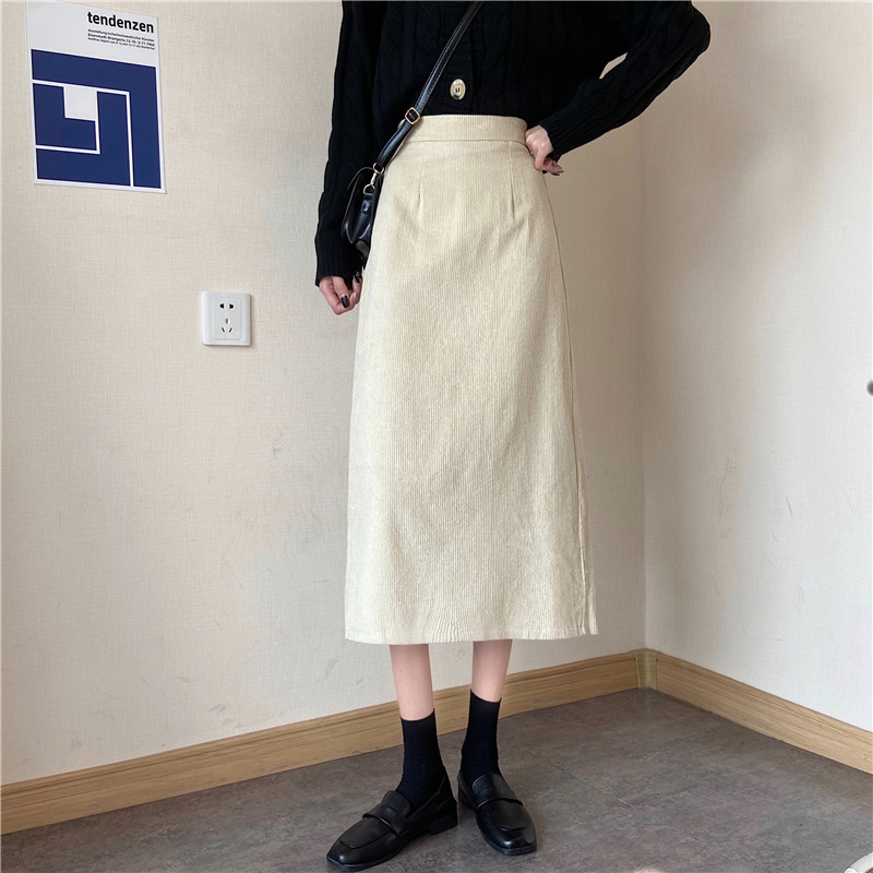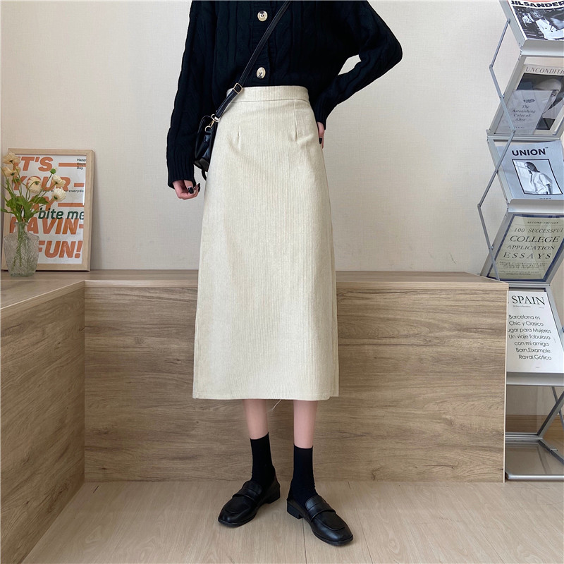 实拍~大码女装冬季新款灯芯绒半身裙女秋冬高腰A字裙中长款包臀裙
