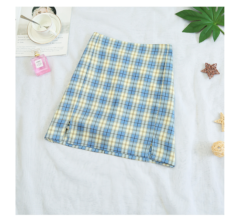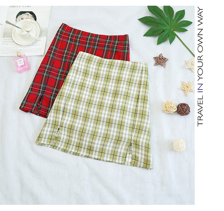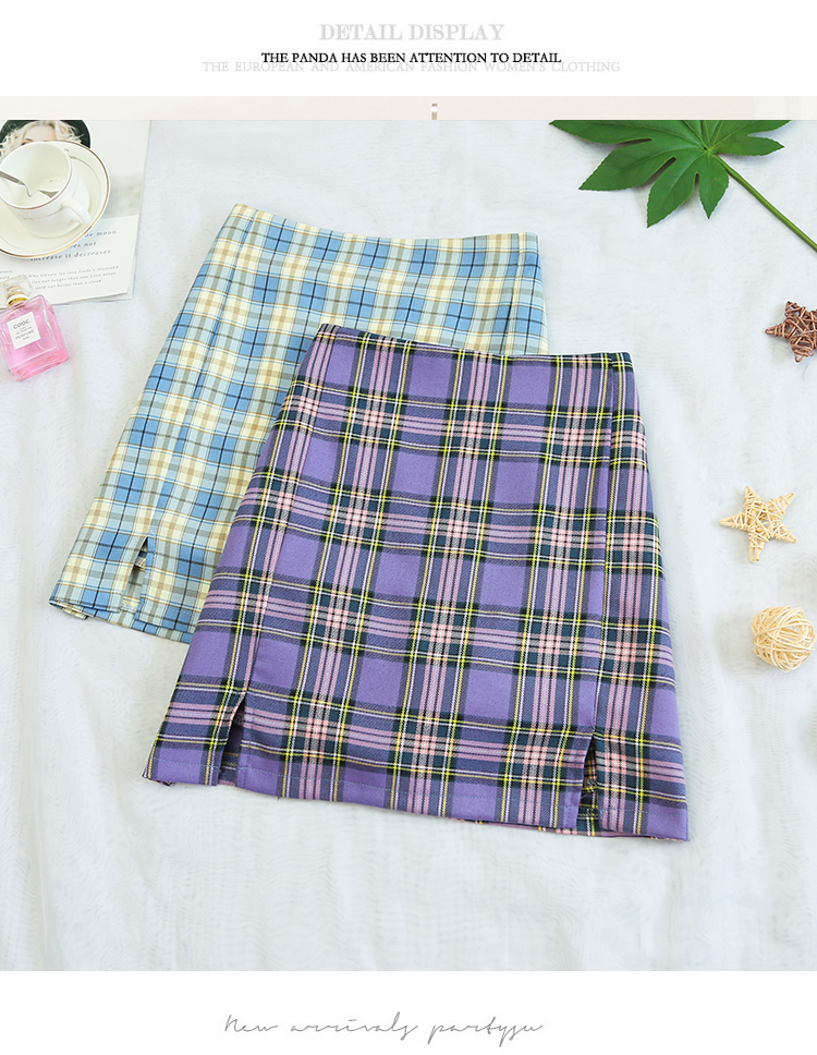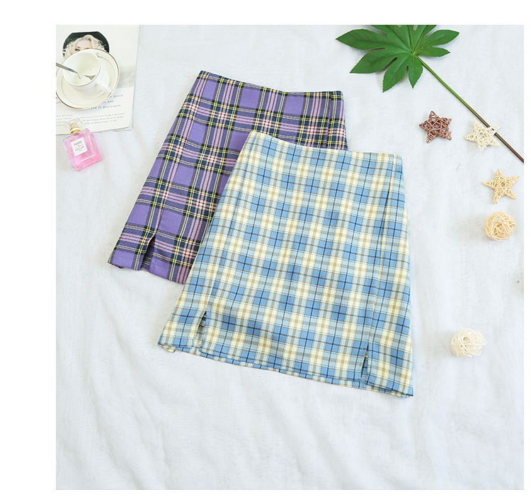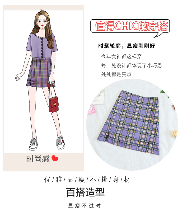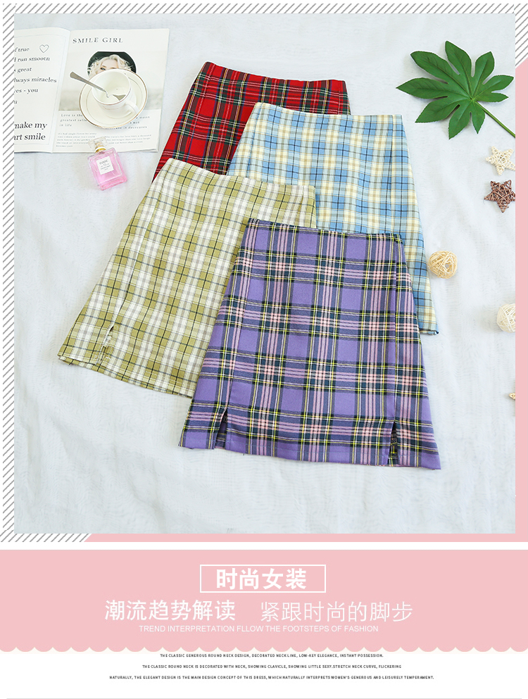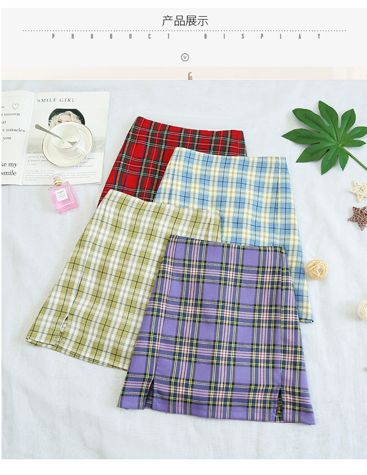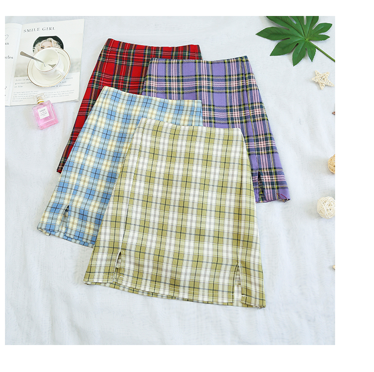 实拍大码女装2020夏季新款韩版多色复古格子半身裙显瘦开叉短裙