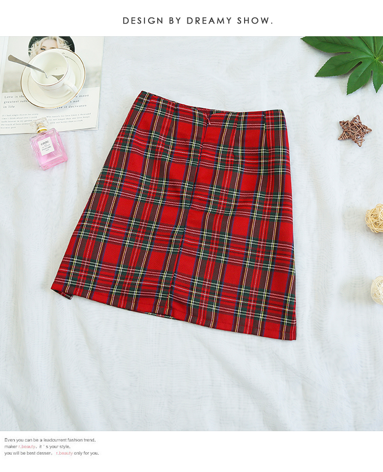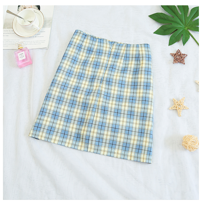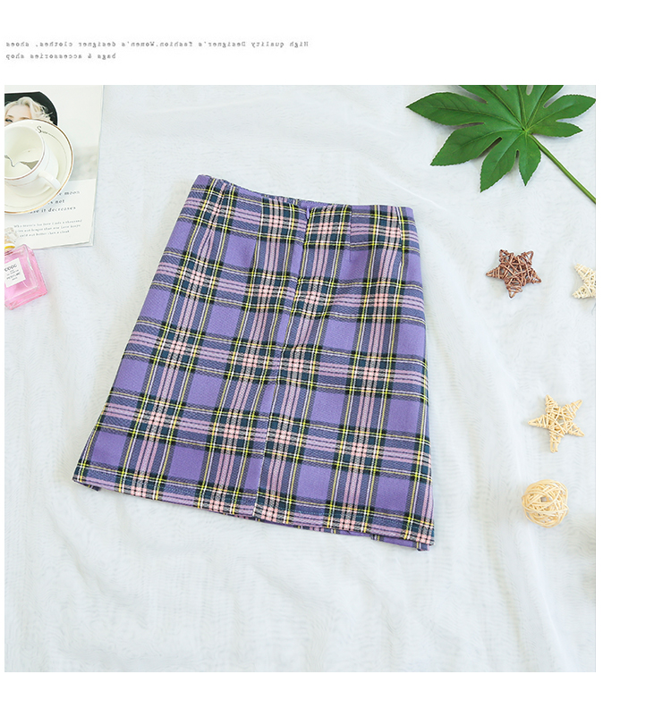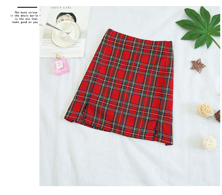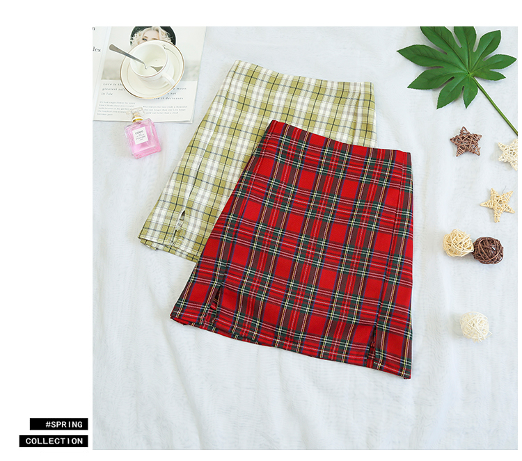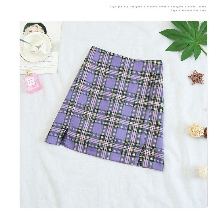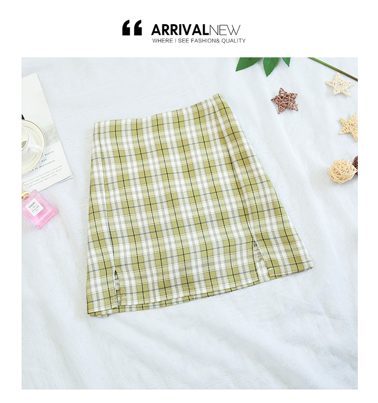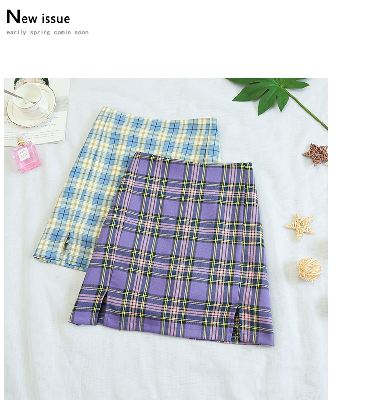 实拍大码女装2020夏季新款韩版多色复古格子半身裙显瘦开叉短裙