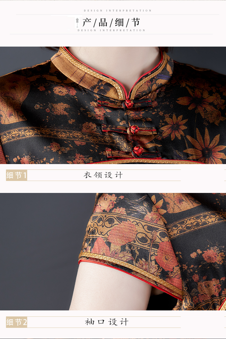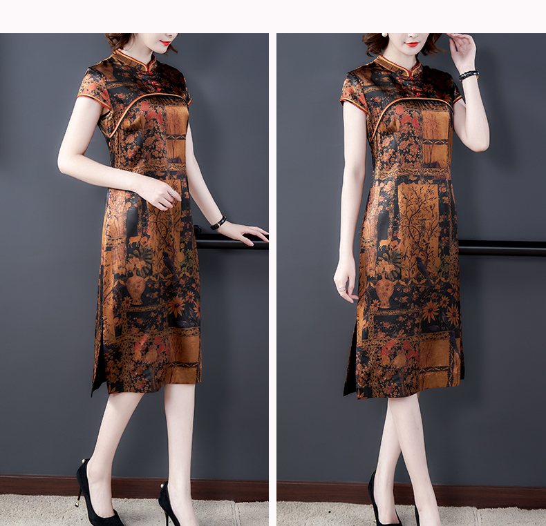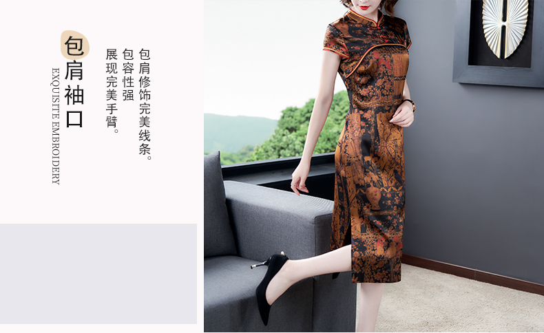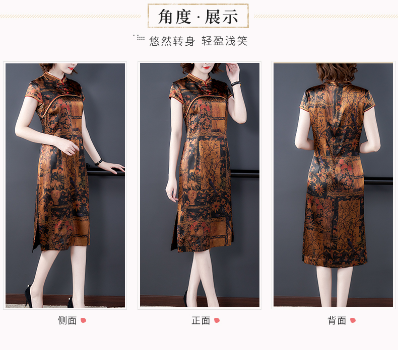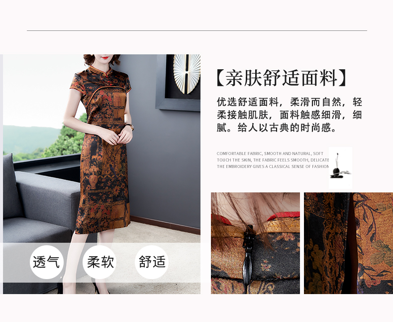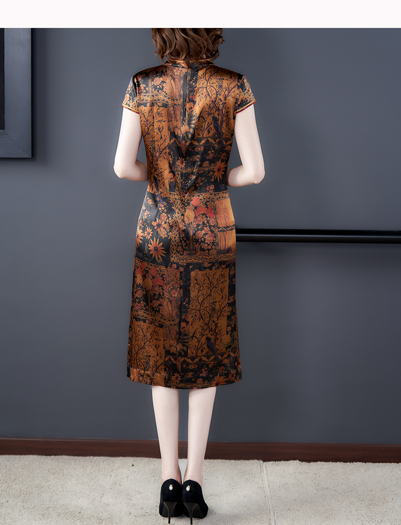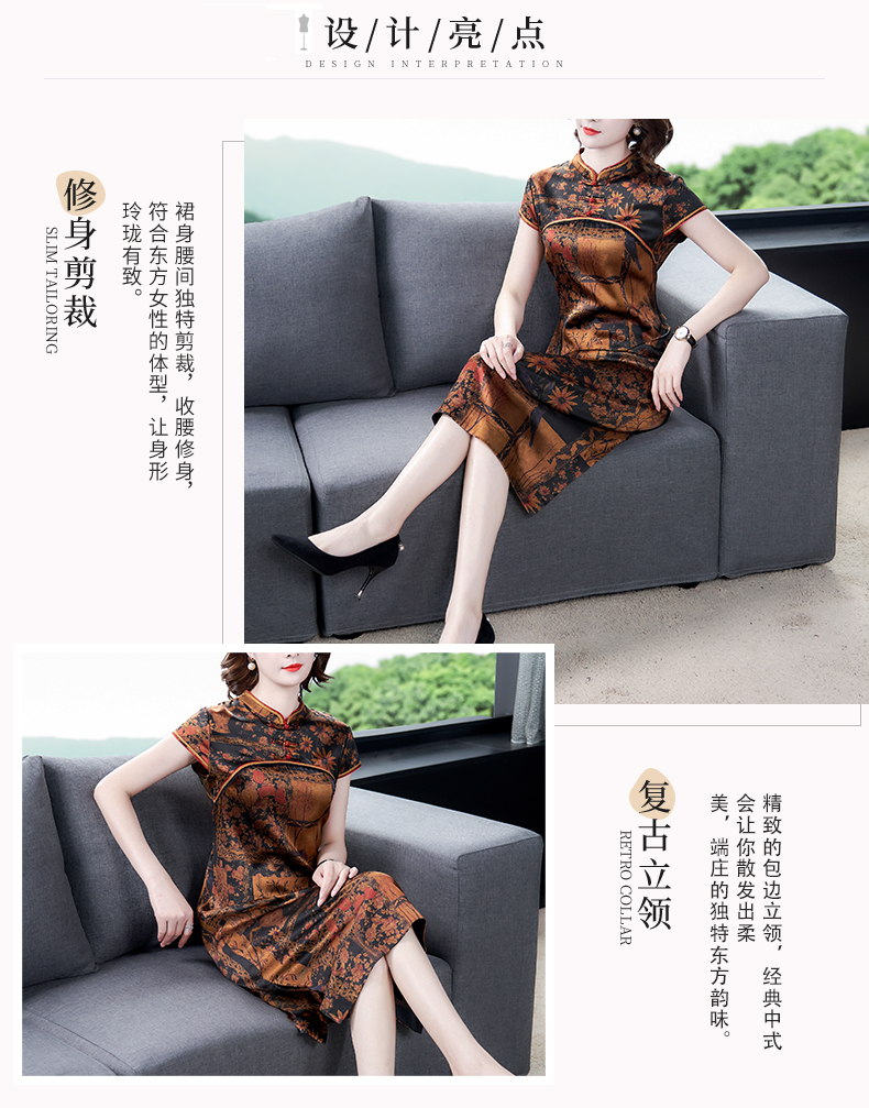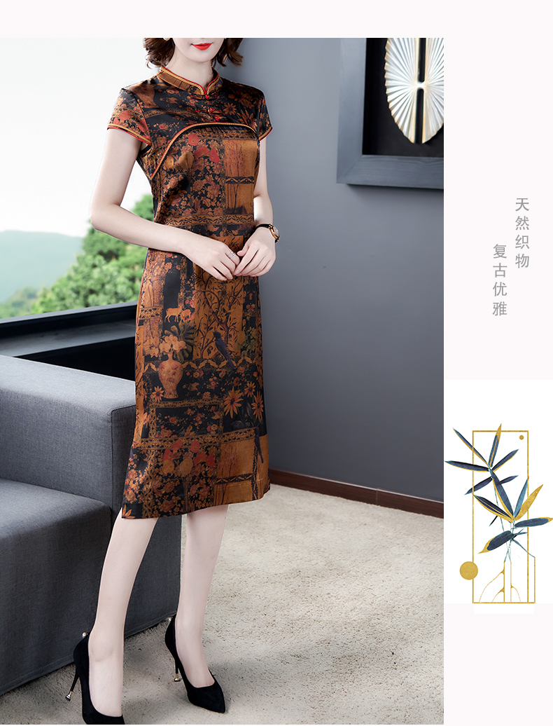 中老年真丝连衣裙女2020新款重磅桑蚕丝裙香云纱复古印花裙子夏季