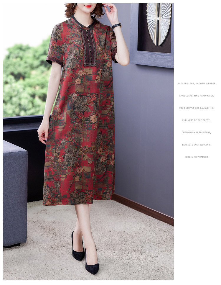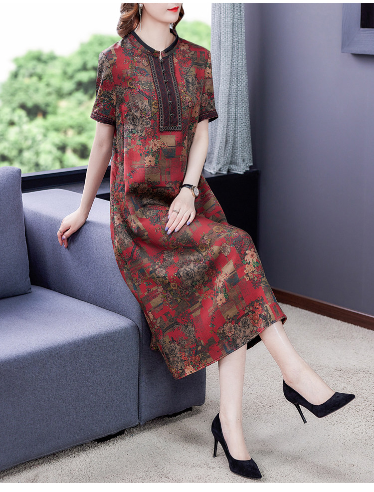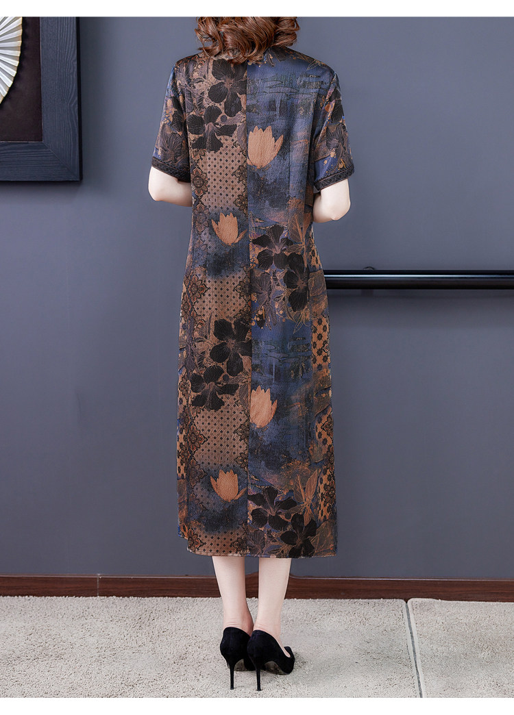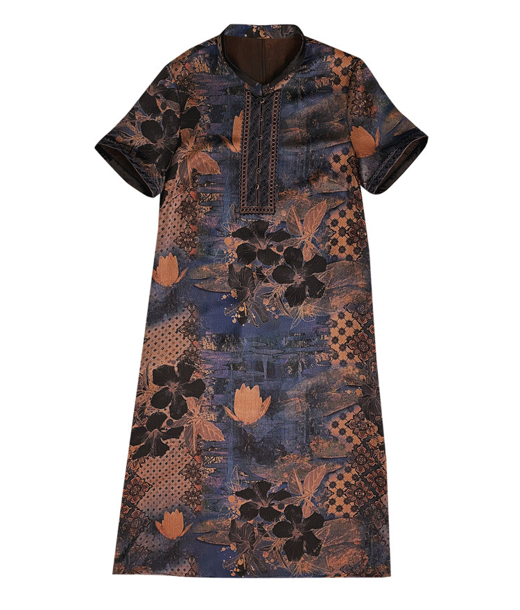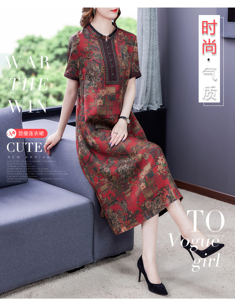 香云纱重磅真丝连衣裙女夏2021新款妈妈大码改良旗袍桑蚕丝裙子