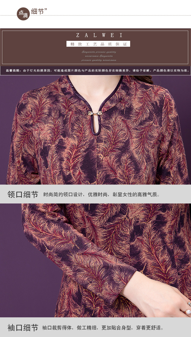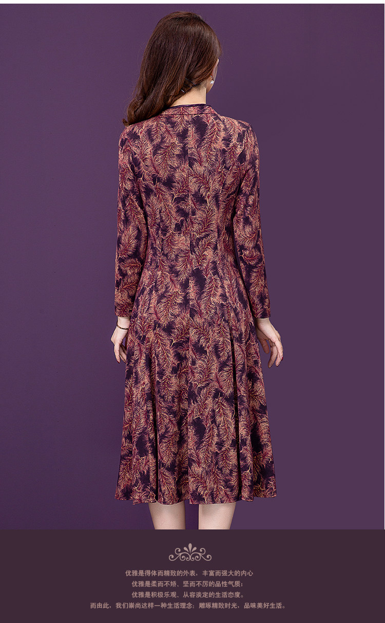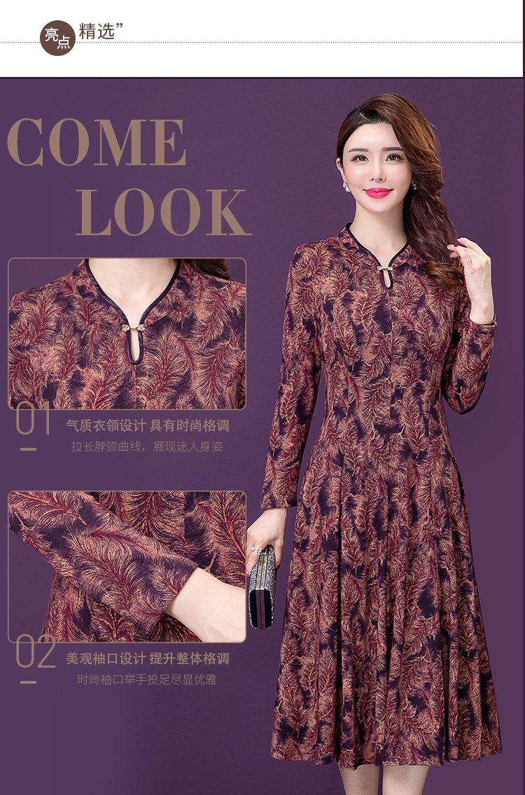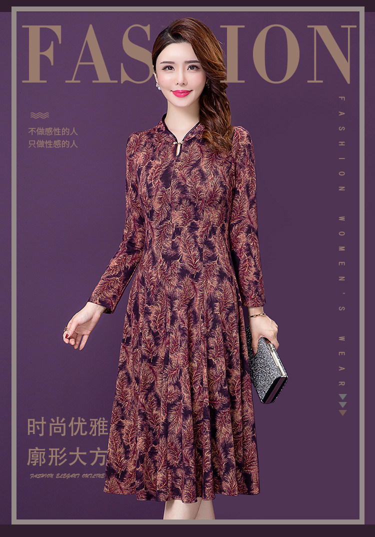 实拍现货2020新款秋季气质时尚印花洋气中年妈妈装高贵长袖连衣裙