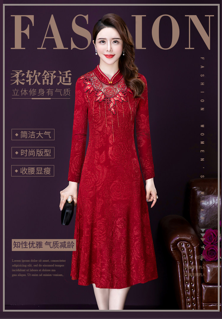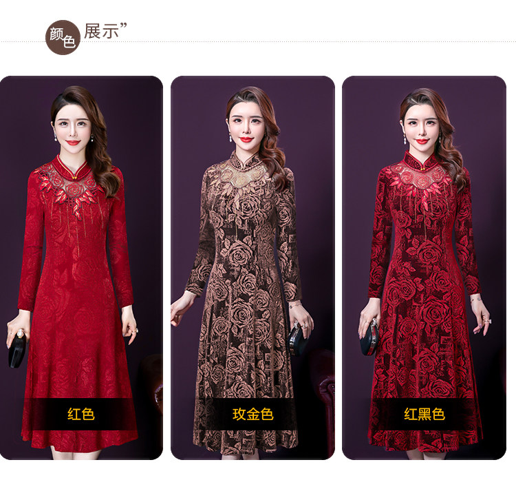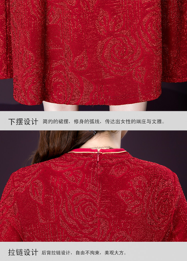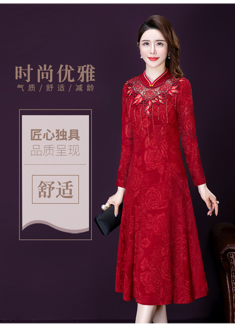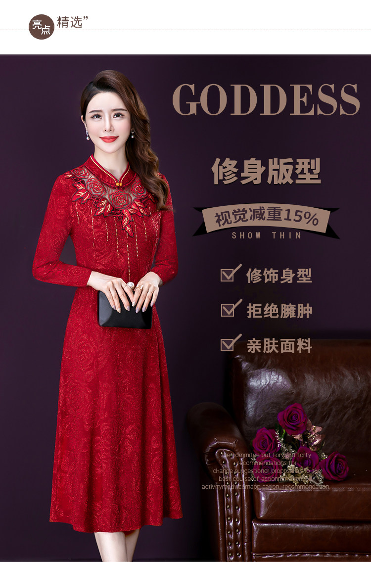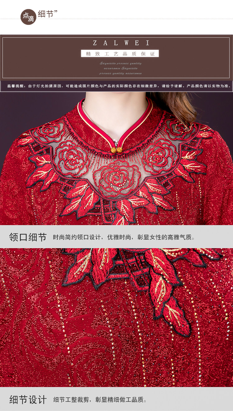 实拍2020秋季新款妈妈礼服女婚宴高贵婚礼刺绣端庄洋气宽松连衣裙