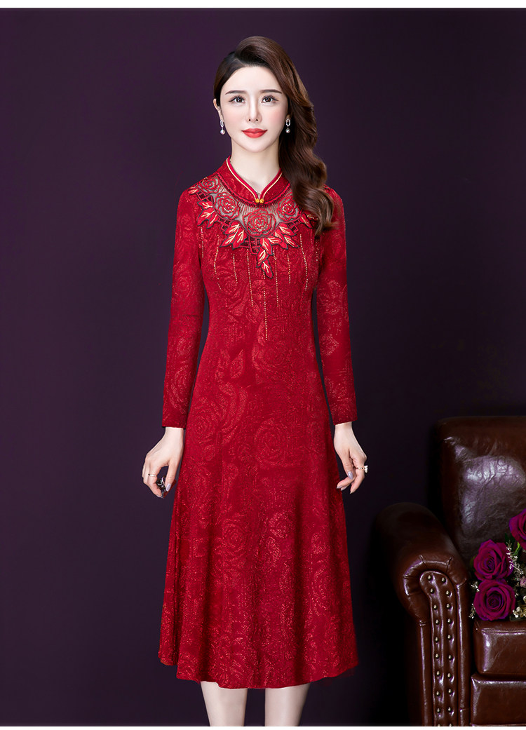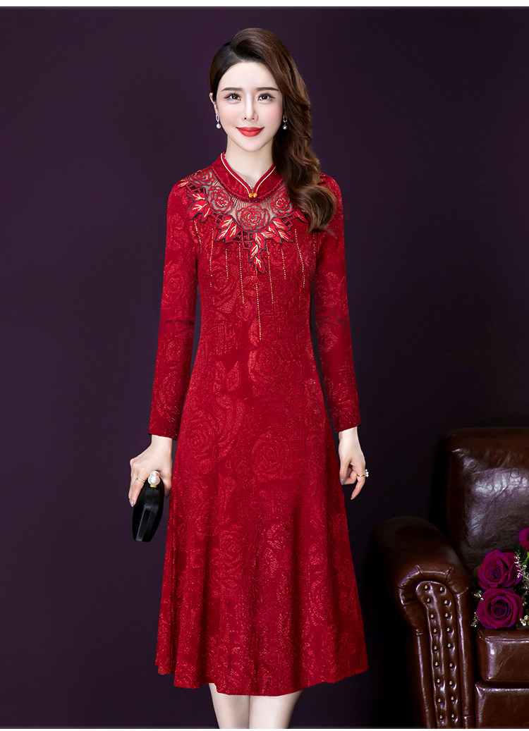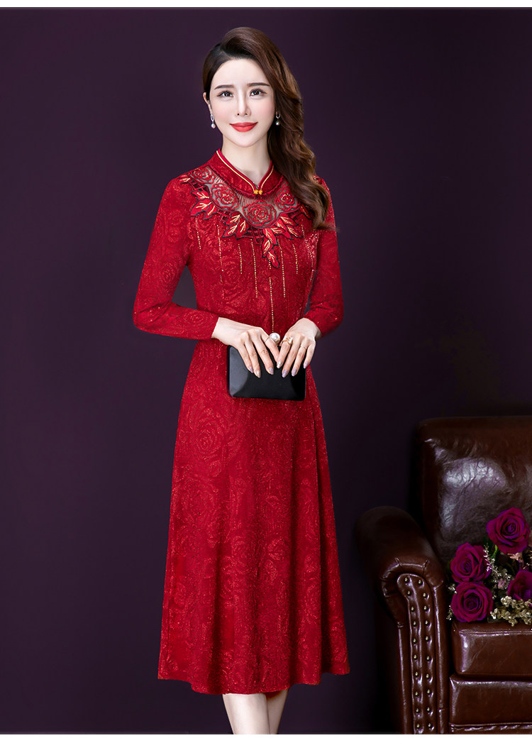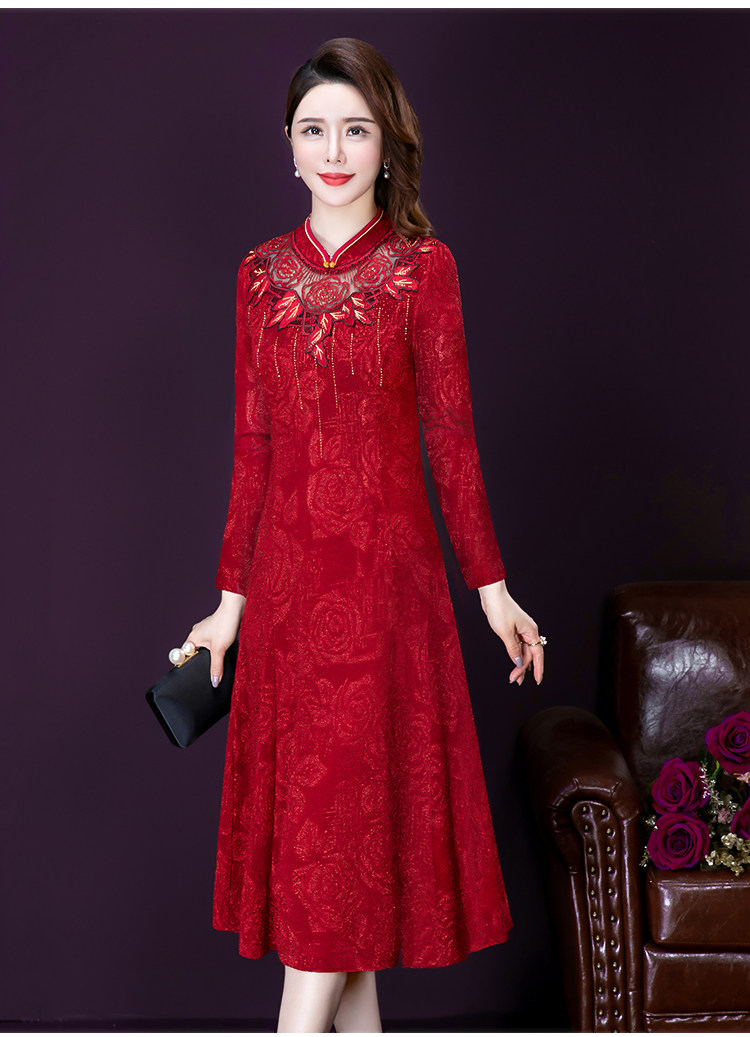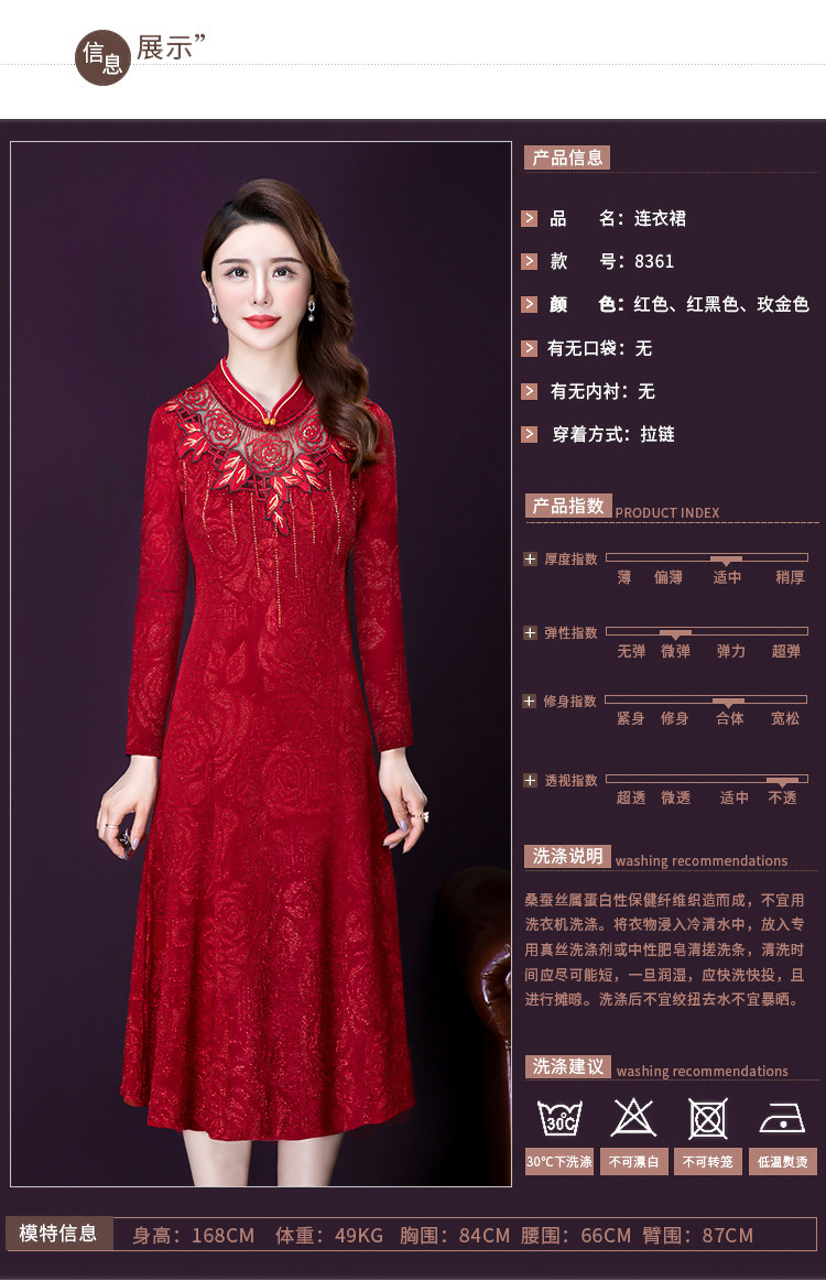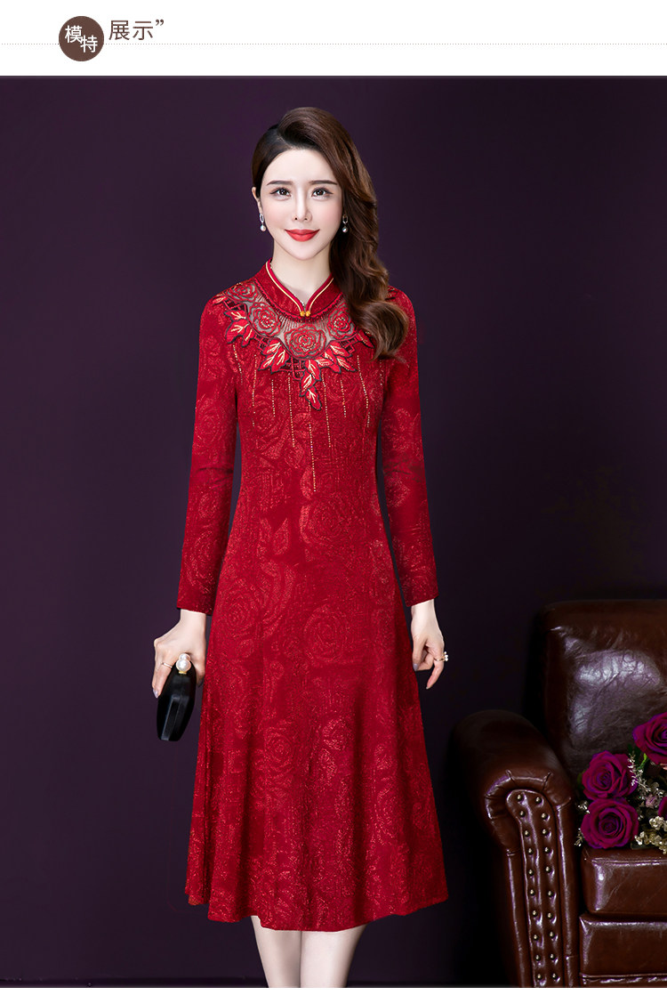 实拍2020秋季新款妈妈礼服女婚宴高贵婚礼刺绣端庄洋气宽松连衣裙