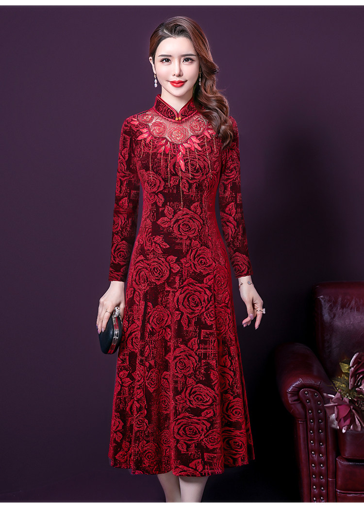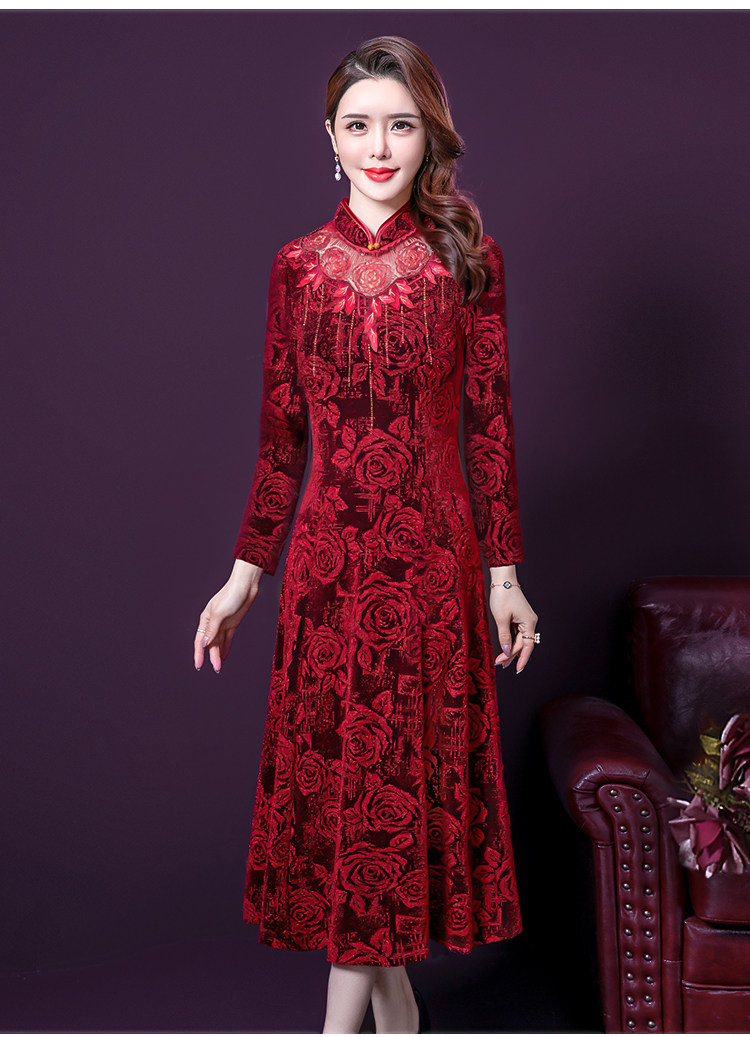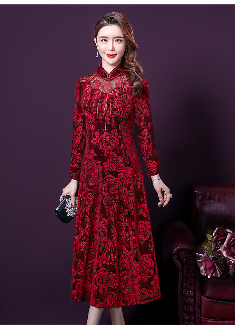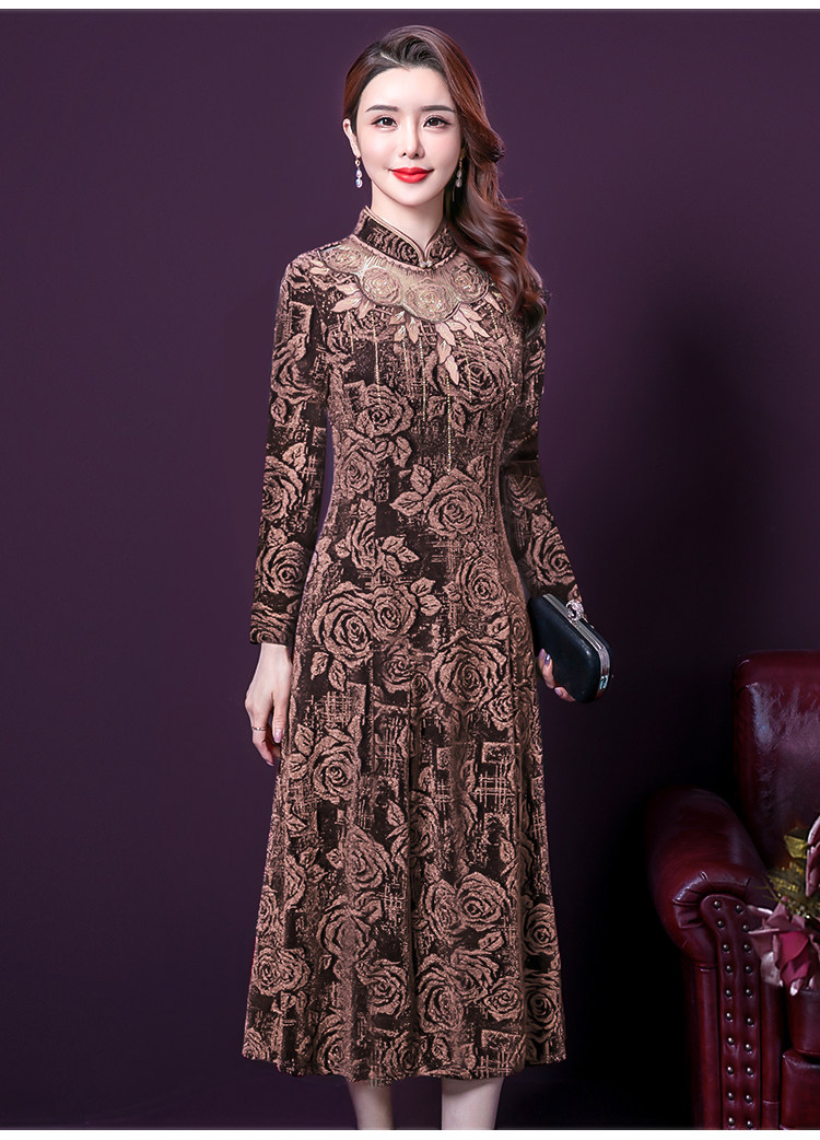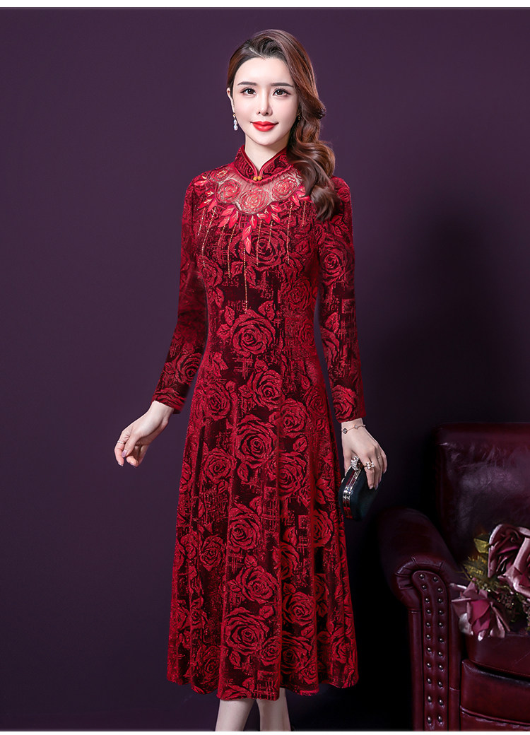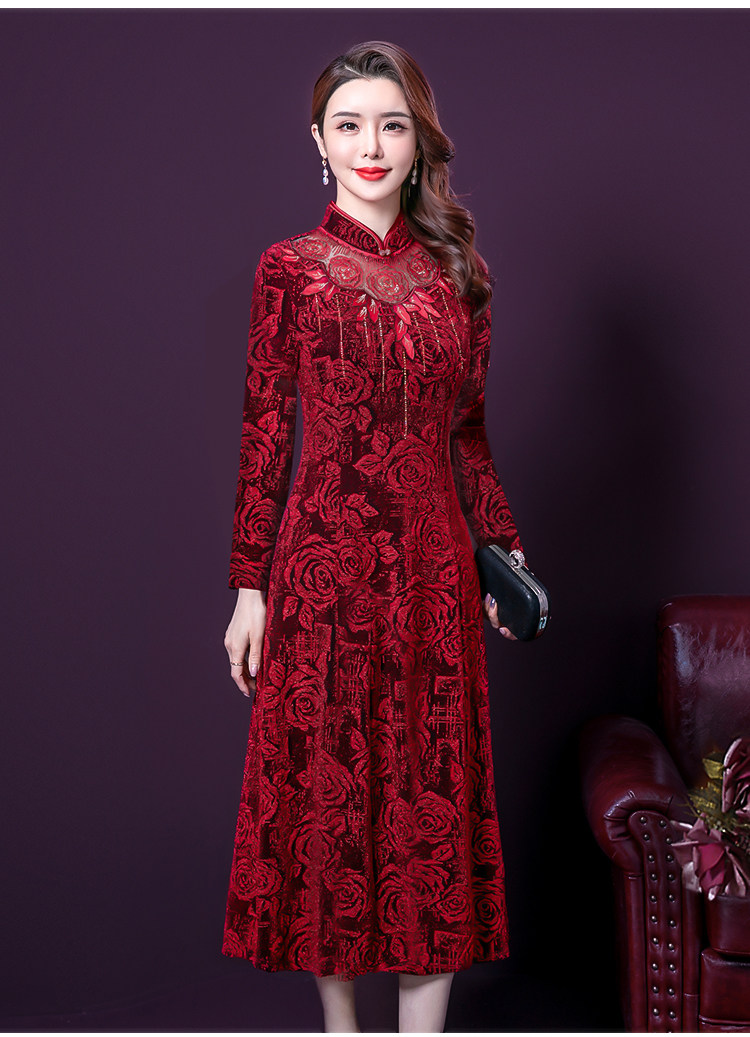 实拍2020秋季新款妈妈礼服女婚宴高贵婚礼刺绣端庄洋气宽松连衣裙