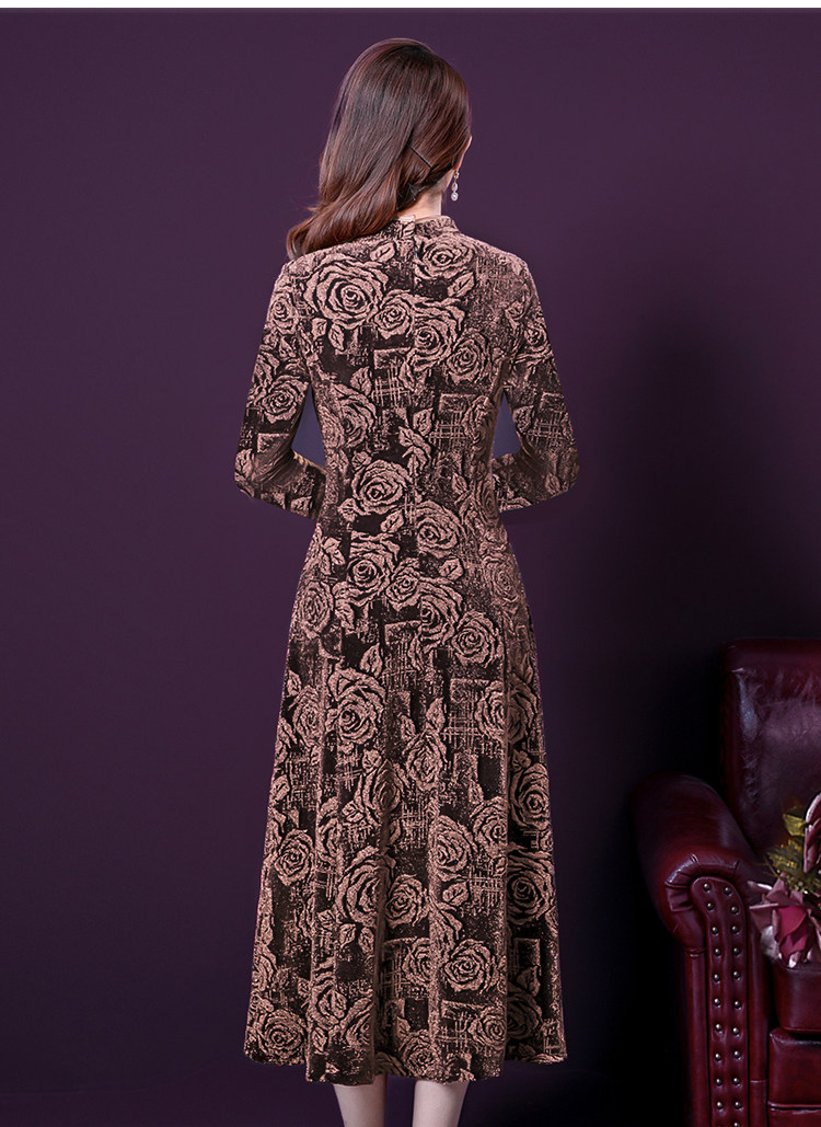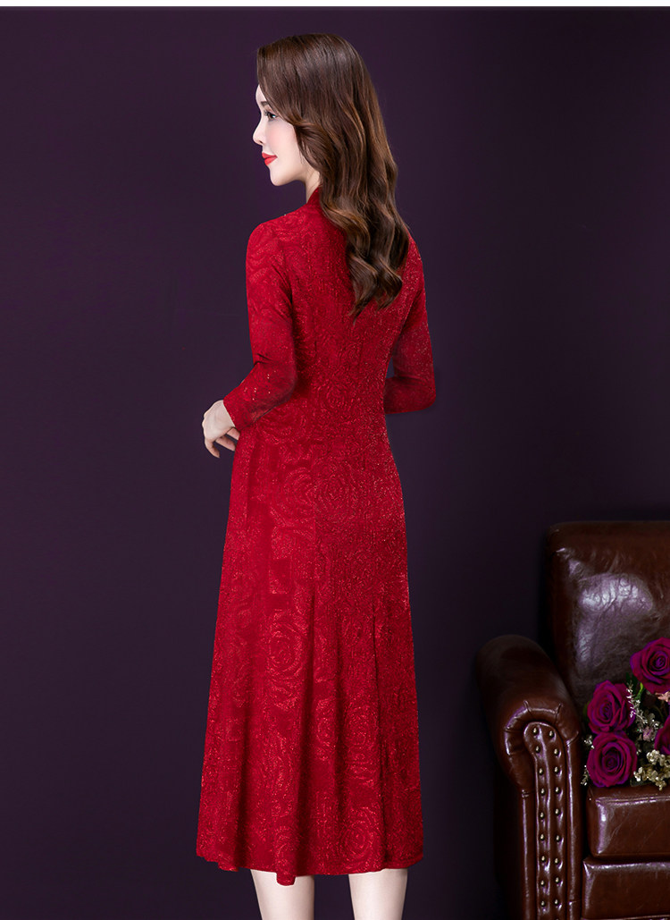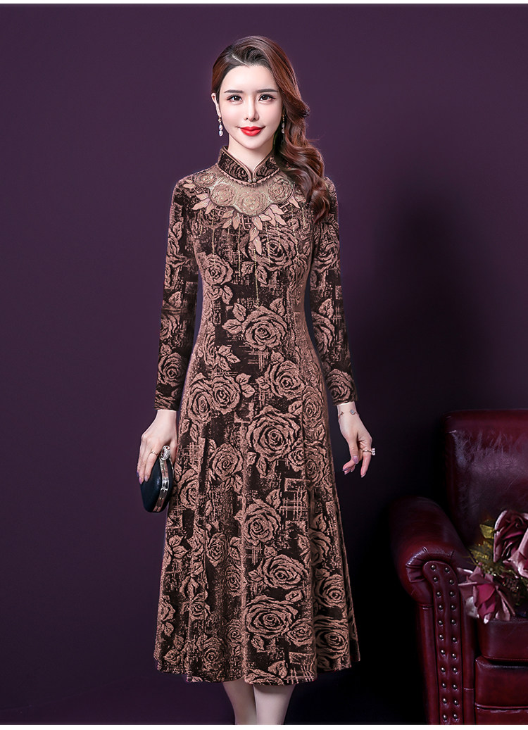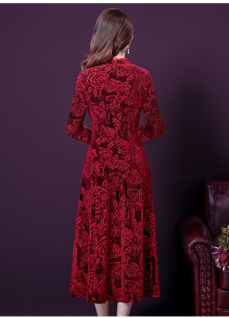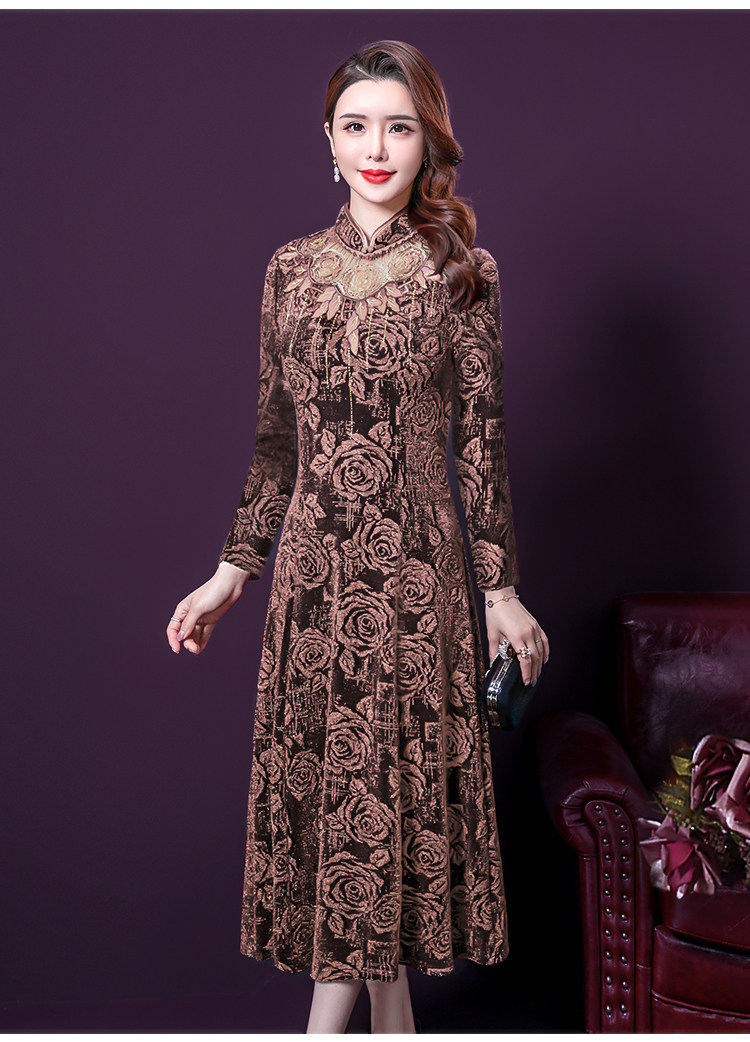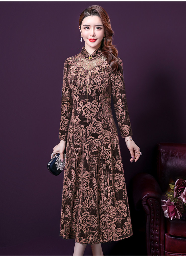 实拍2020秋季新款妈妈礼服女婚宴高贵婚礼刺绣端庄洋气宽松连衣裙