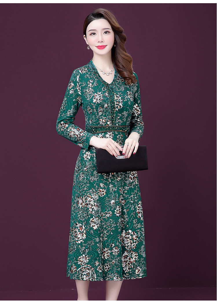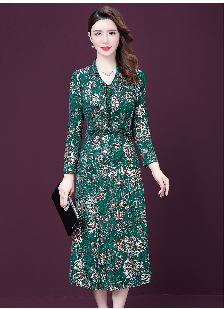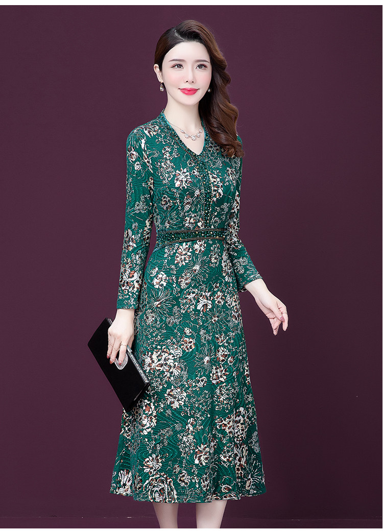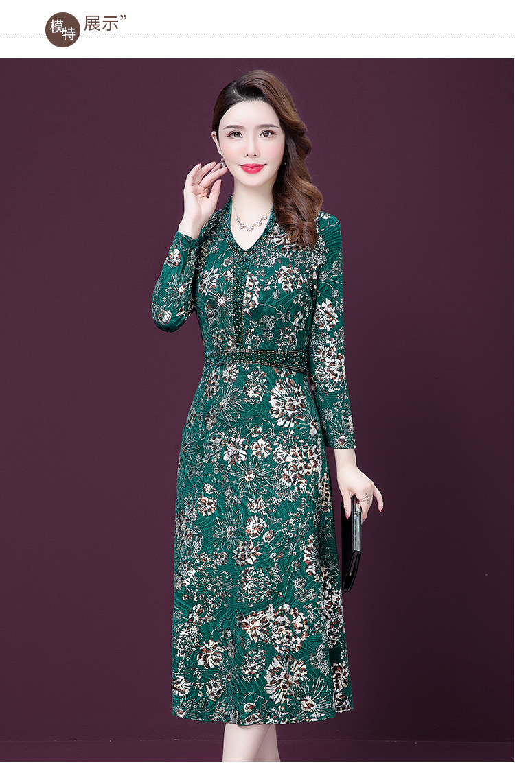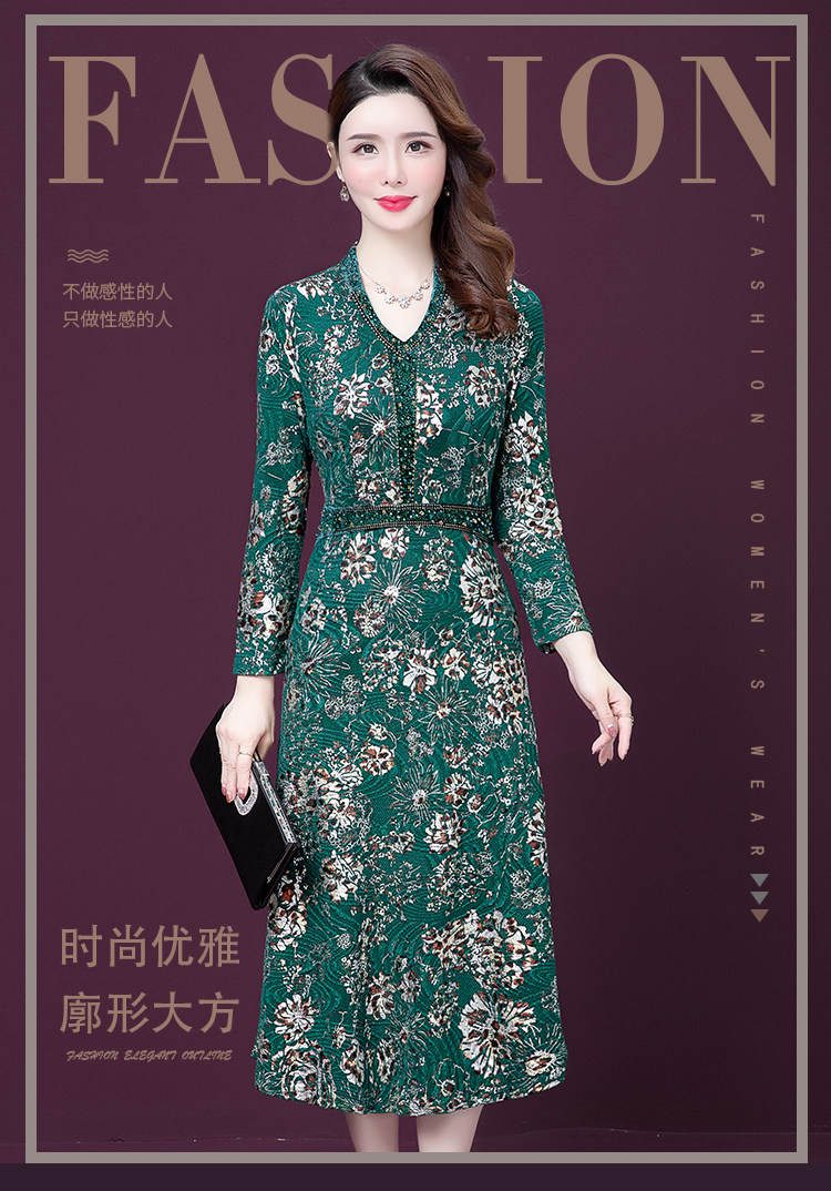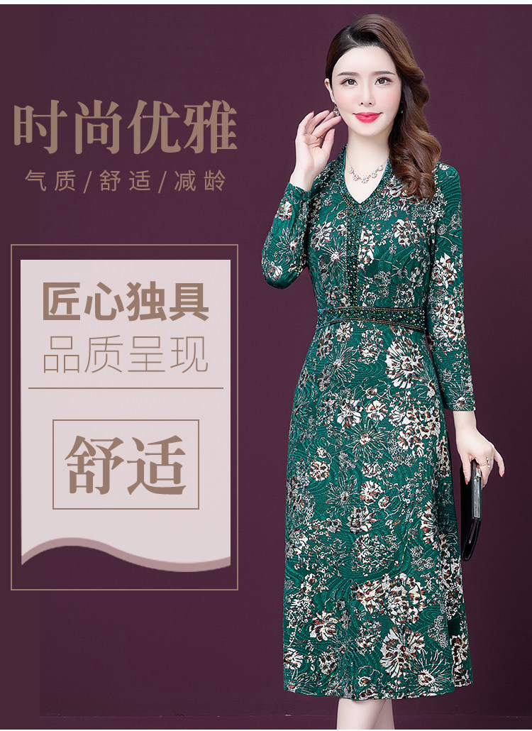 实拍现货2020春装新款修身大码印花法式高端名媛烫钻气质连衣裙