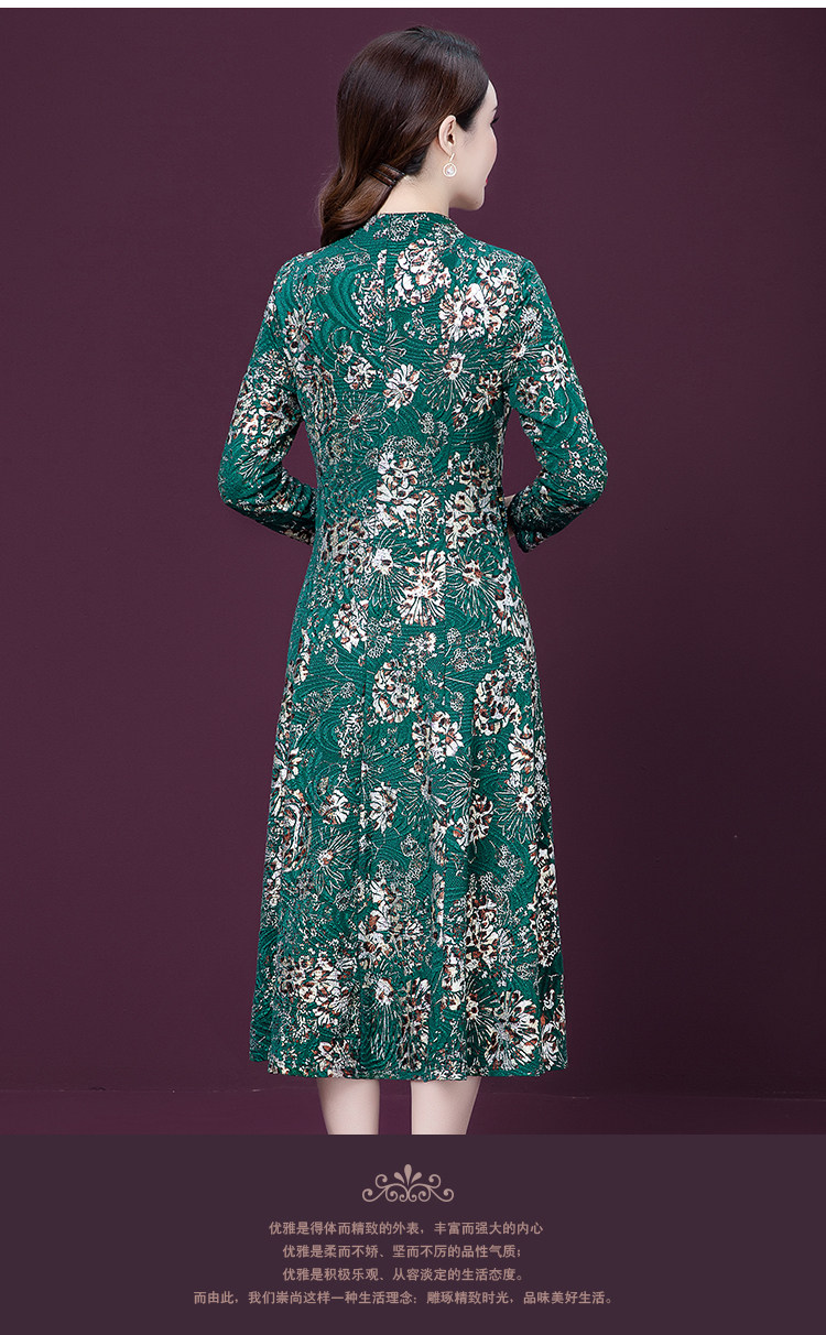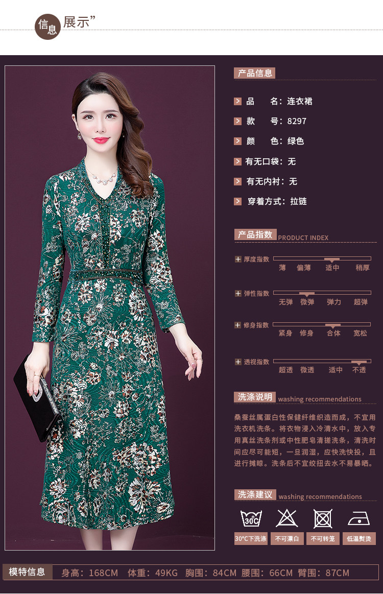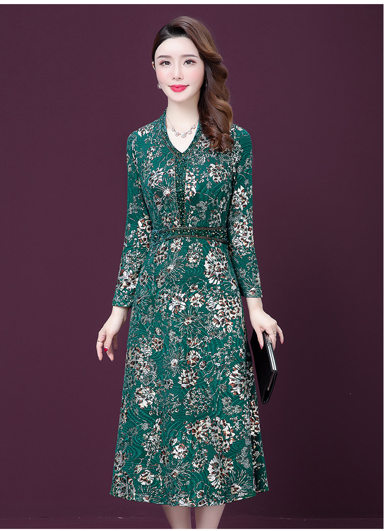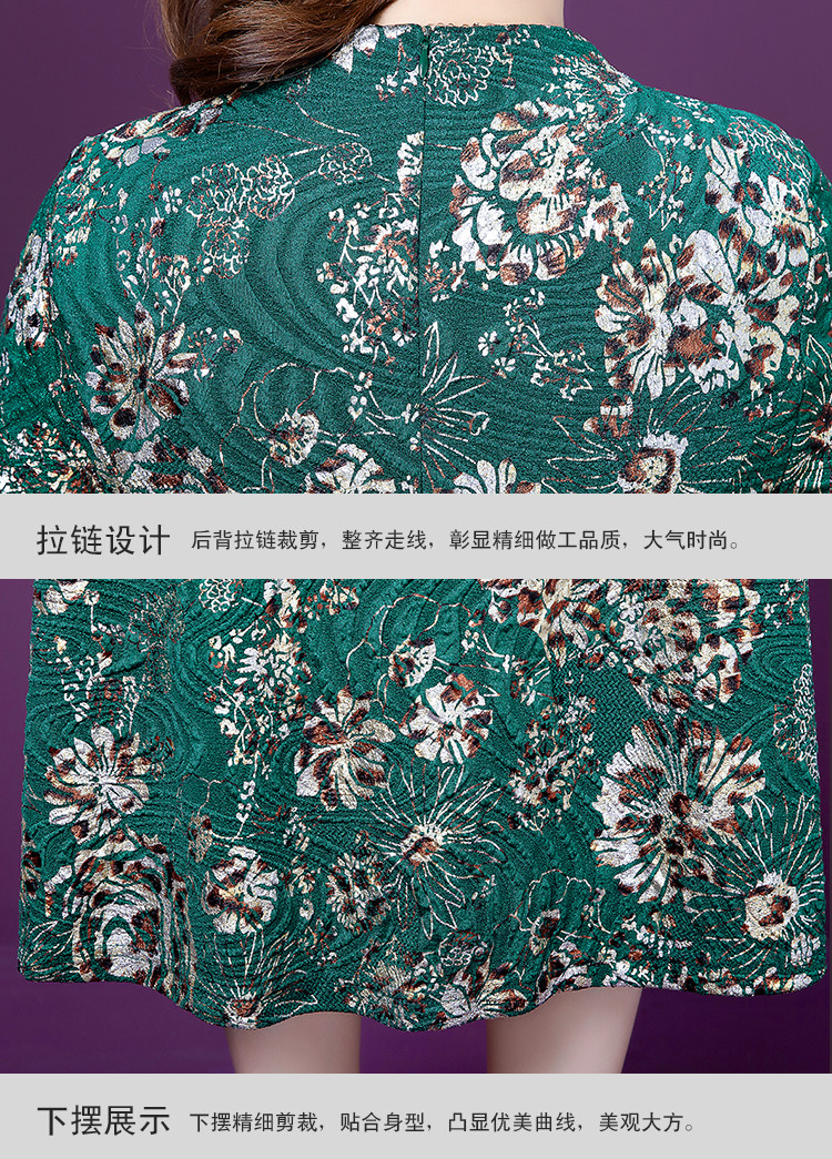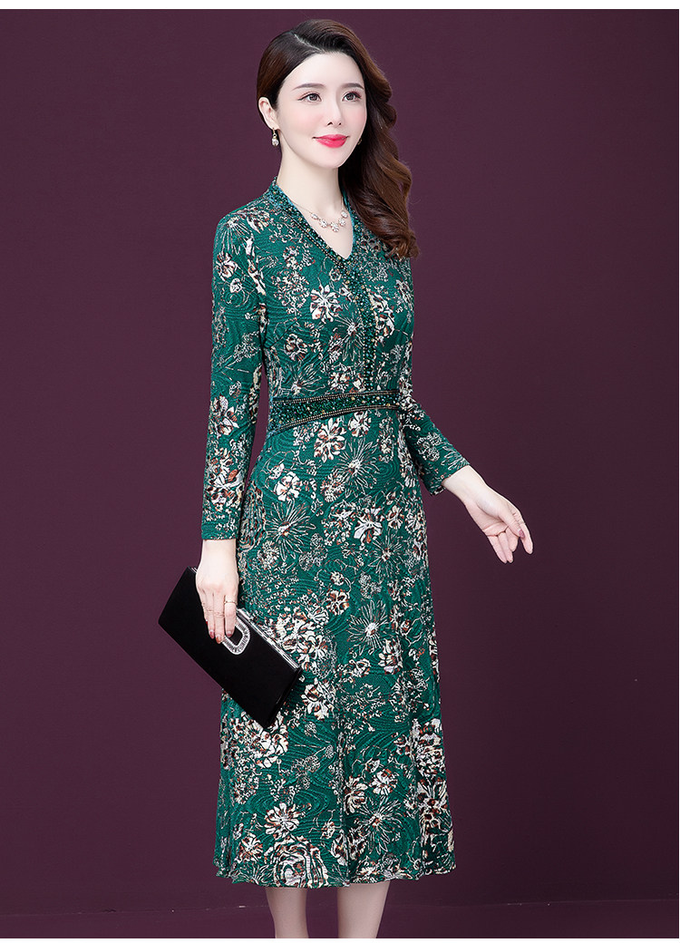 实拍现货2020春装新款修身大码印花法式高端名媛烫钻气质连衣裙