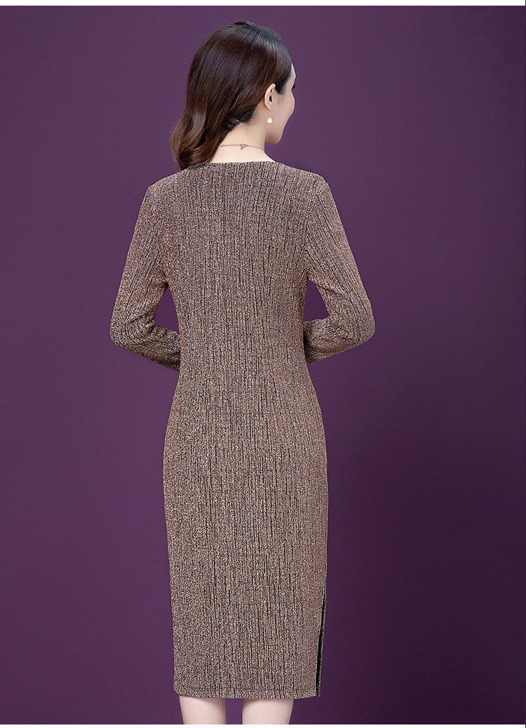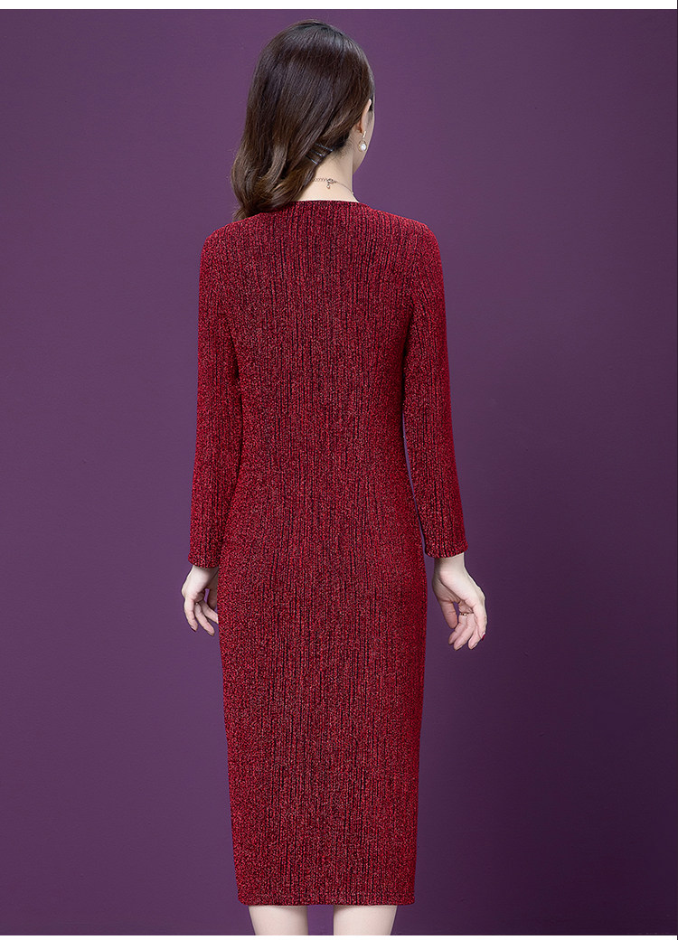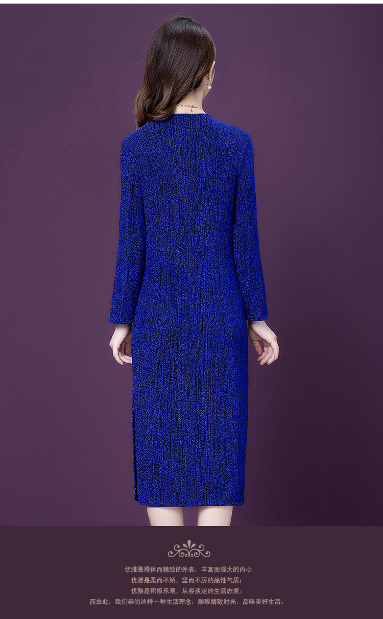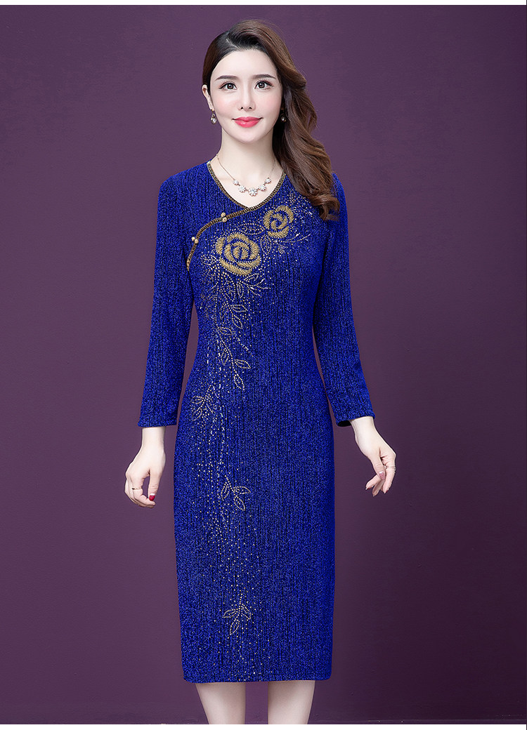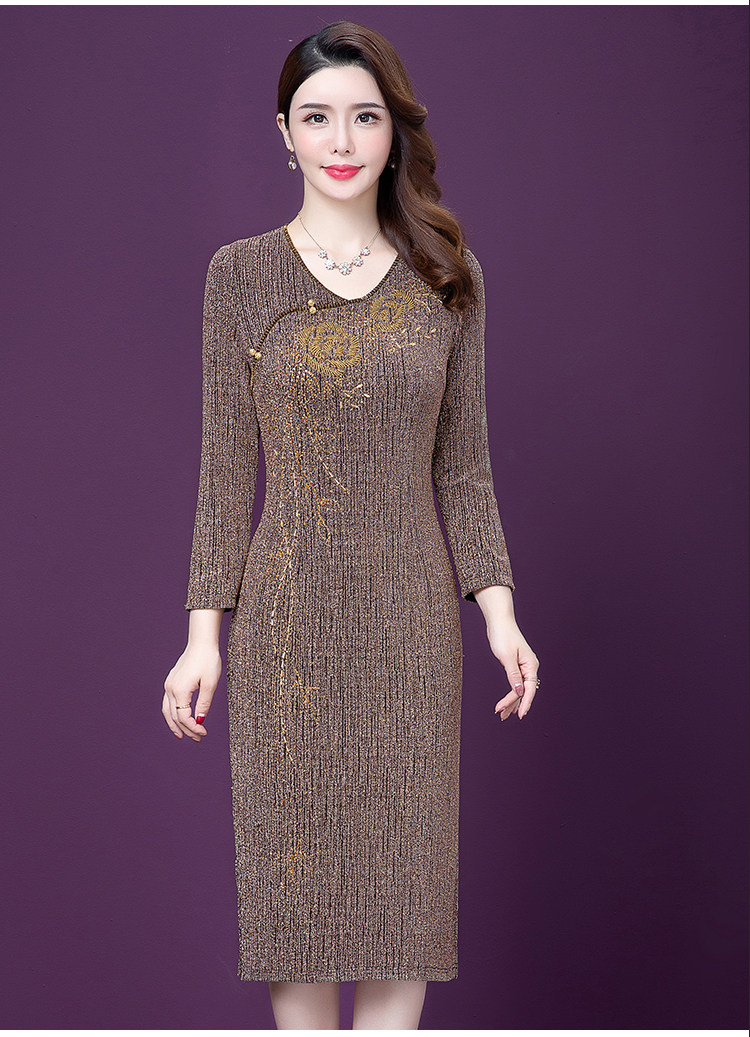 实拍修身开叉旗袍2019秋季新款女婚礼宴会喜婆婆显瘦长袖连衣裙