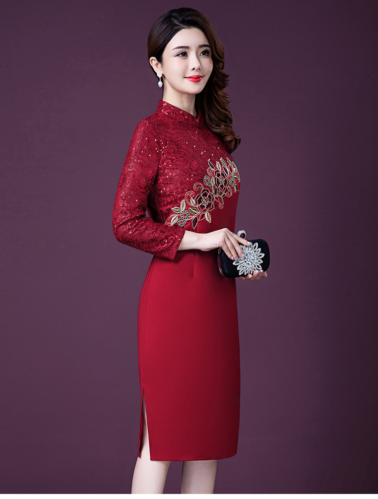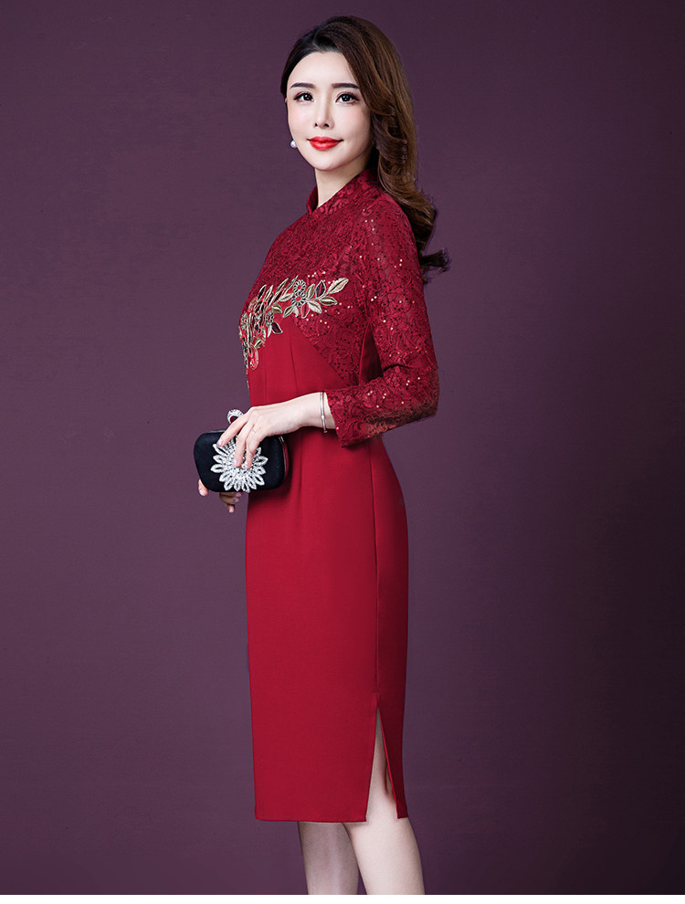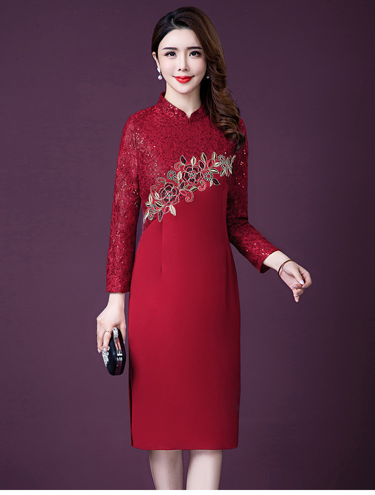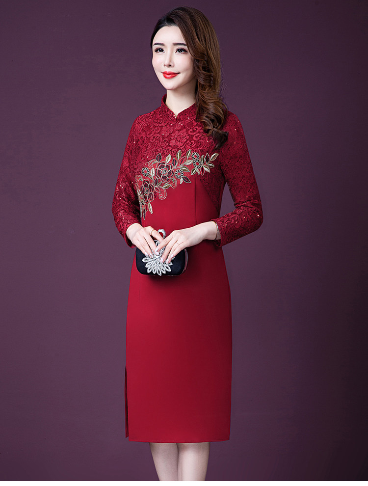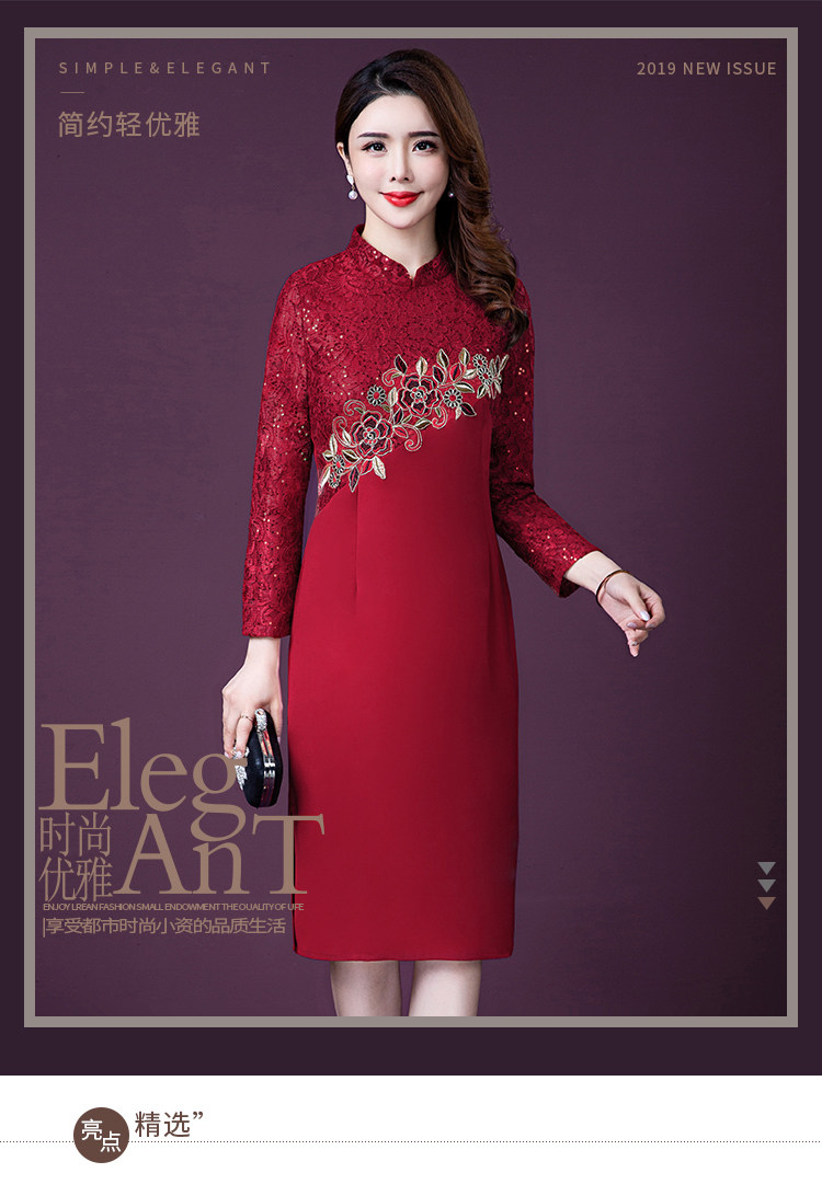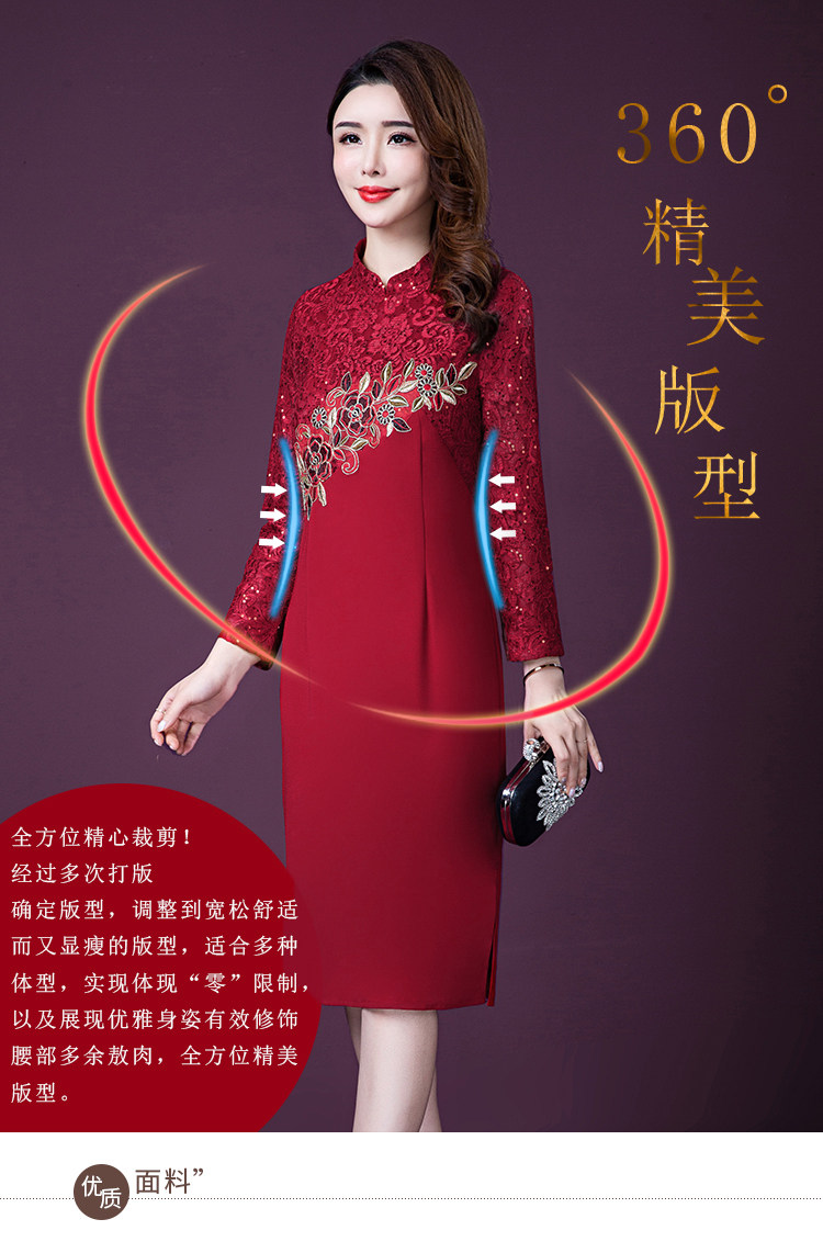 实拍现货2020新款中老年春秋装连衣裙高贵婚宴妈妈礼服刺绣连衣裙