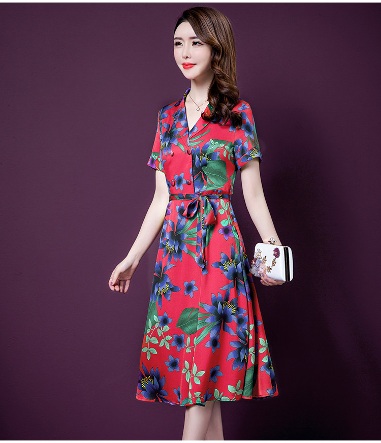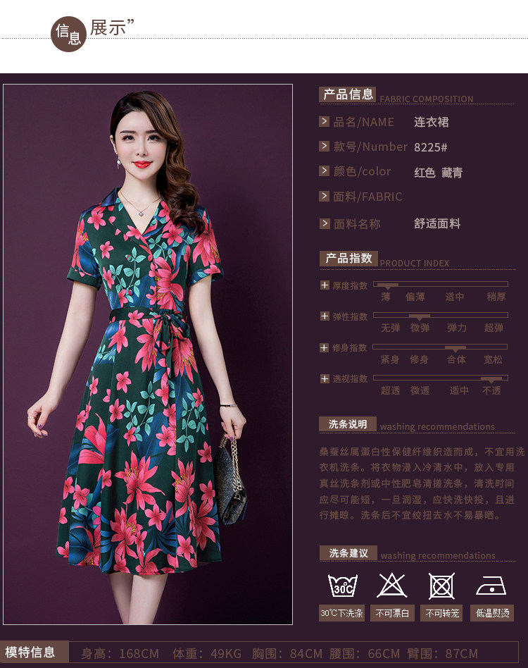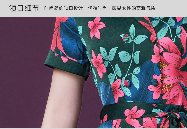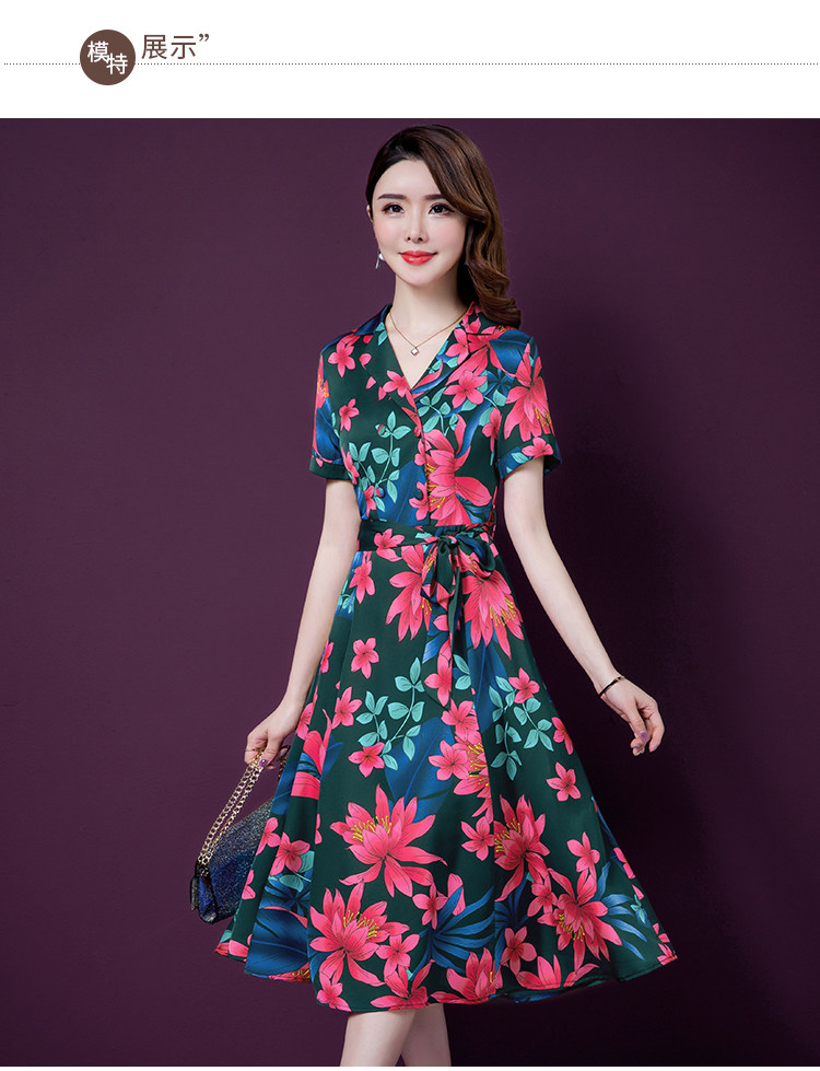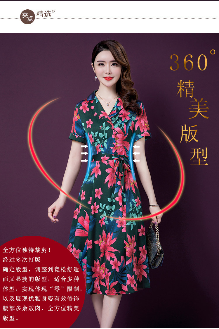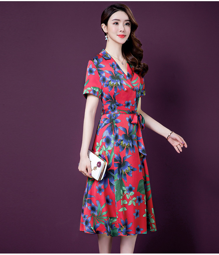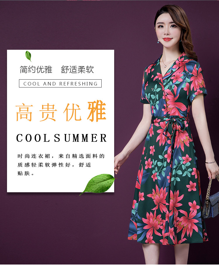 实拍现货2020夏季新款系带重磅真丝印花桑蚕丝V领优雅连衣裙女