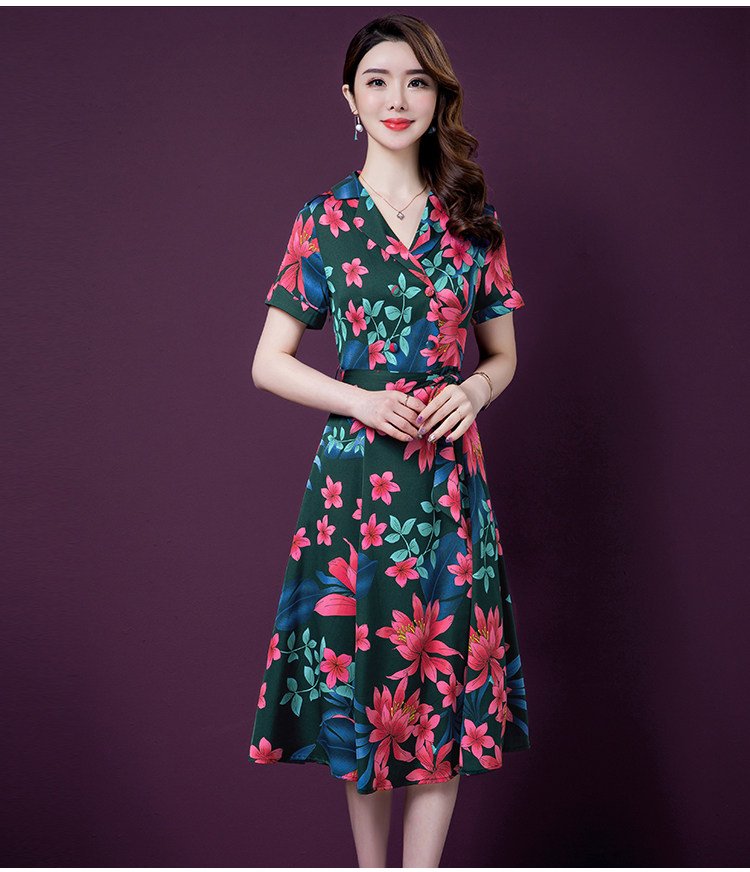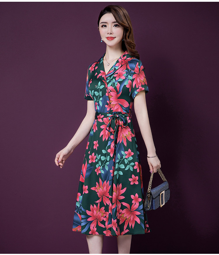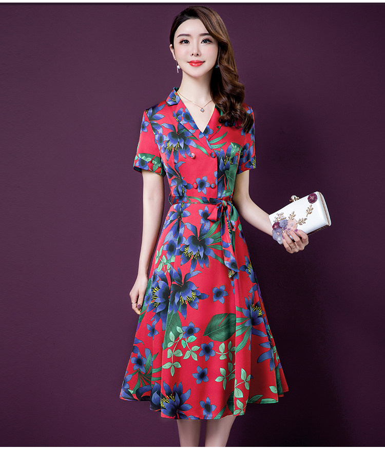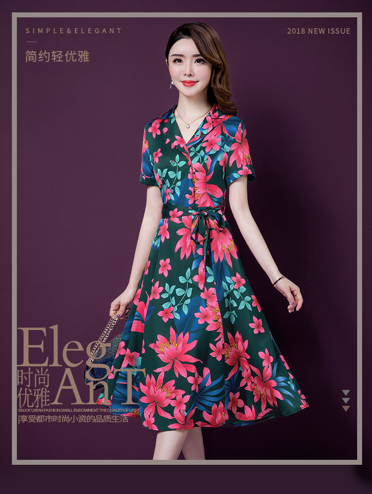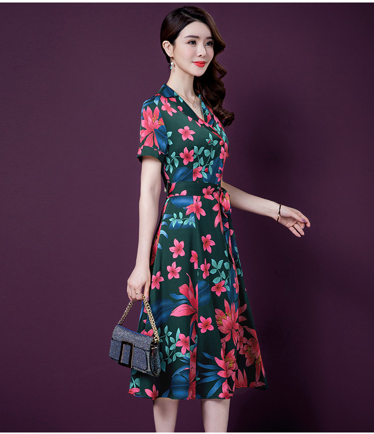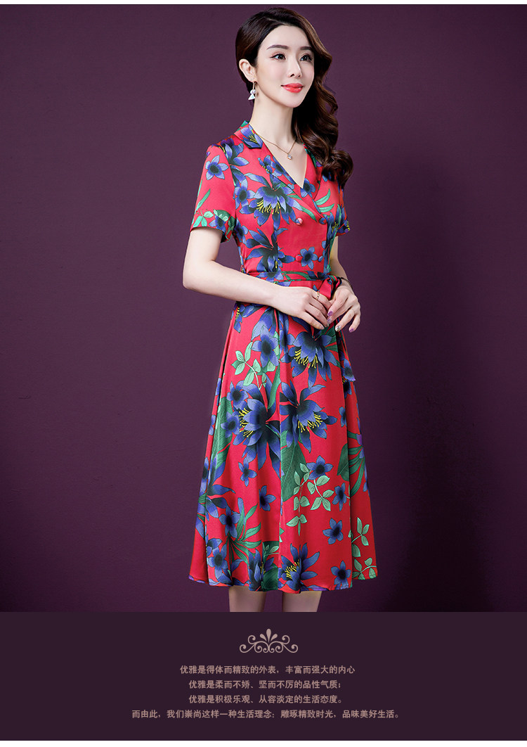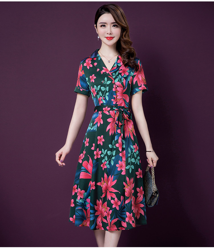 实拍现货2020夏季新款系带重磅真丝印花桑蚕丝V领优雅连衣裙女