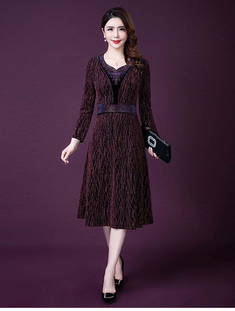 实拍现货2020春秋新款结婚喜宴妈妈礼服连衣裙女婆婆婚宴装端庄
