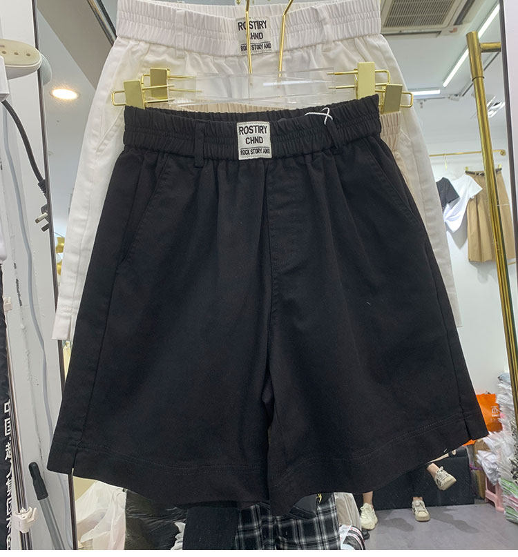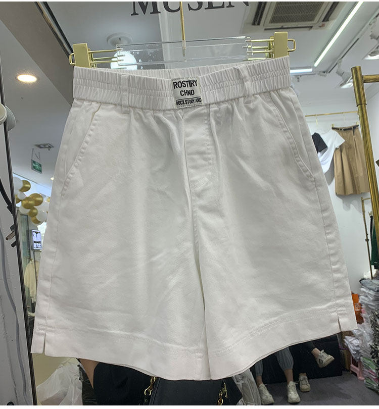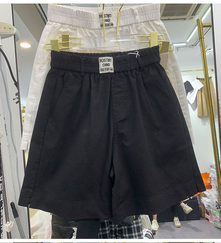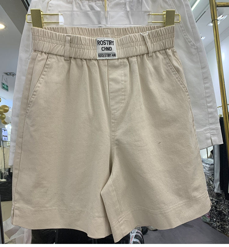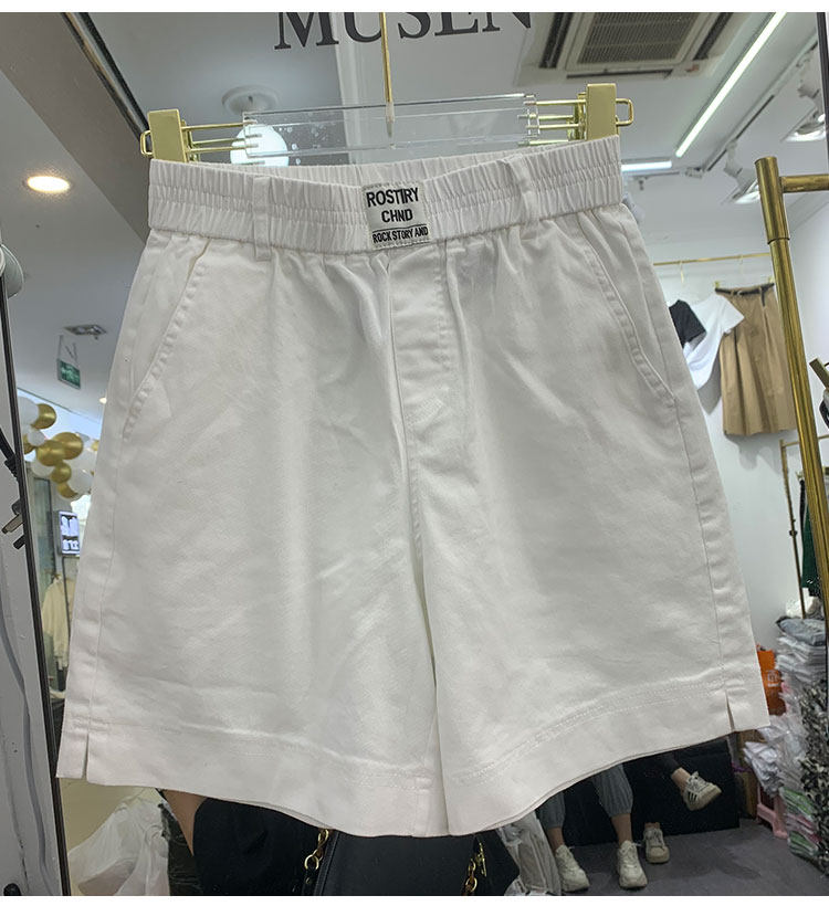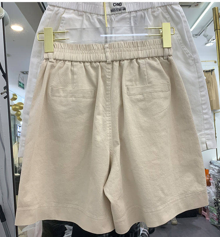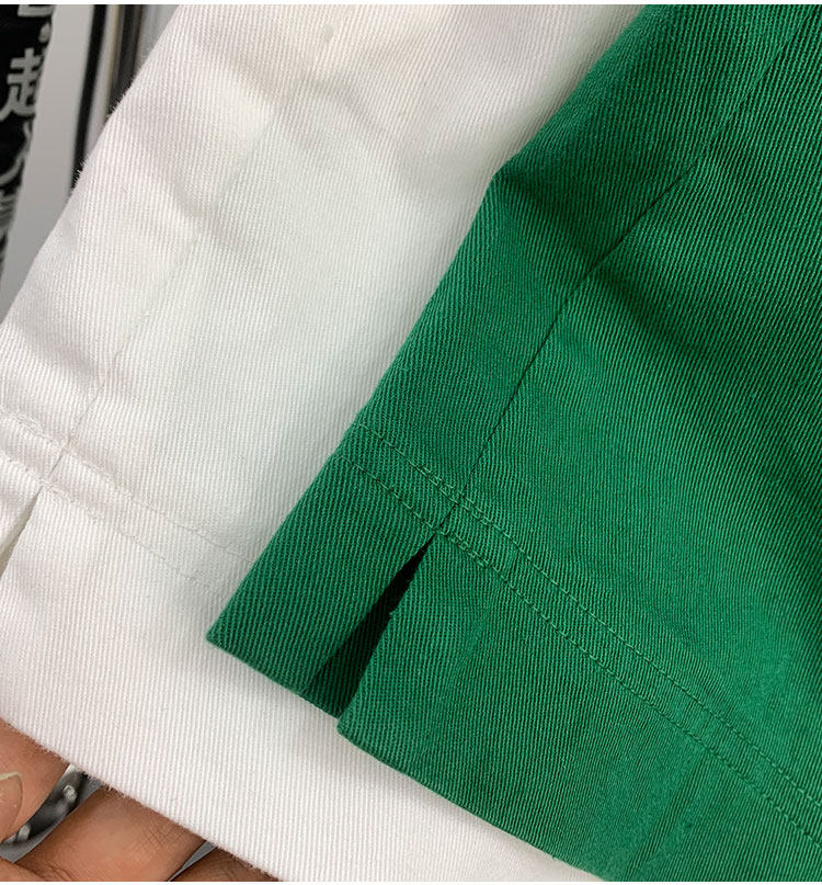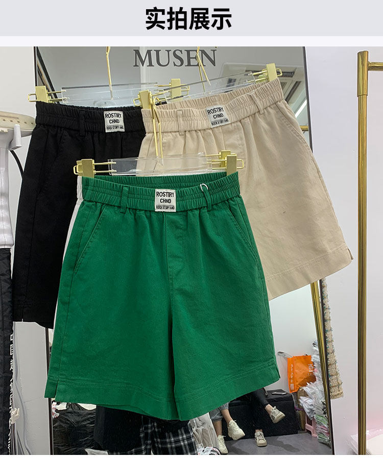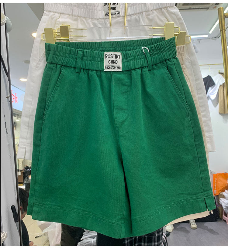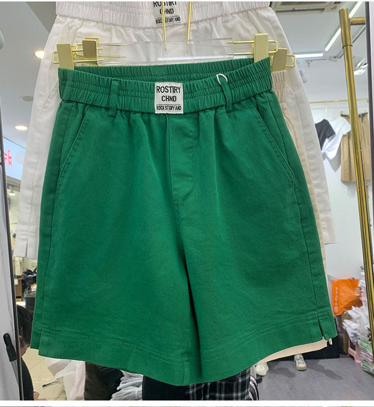 2021新款松紧腰休闲牛仔短裤女夏季高腰绿色阔腿裤工装五分裤热裤