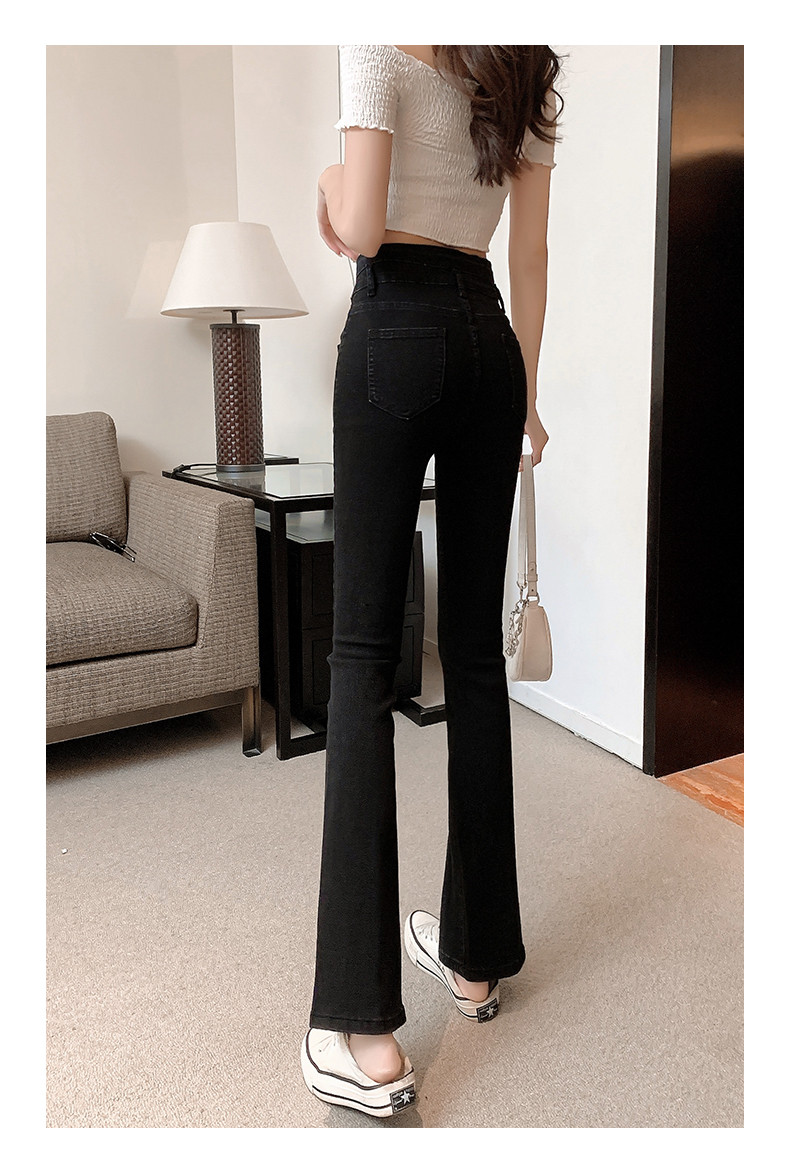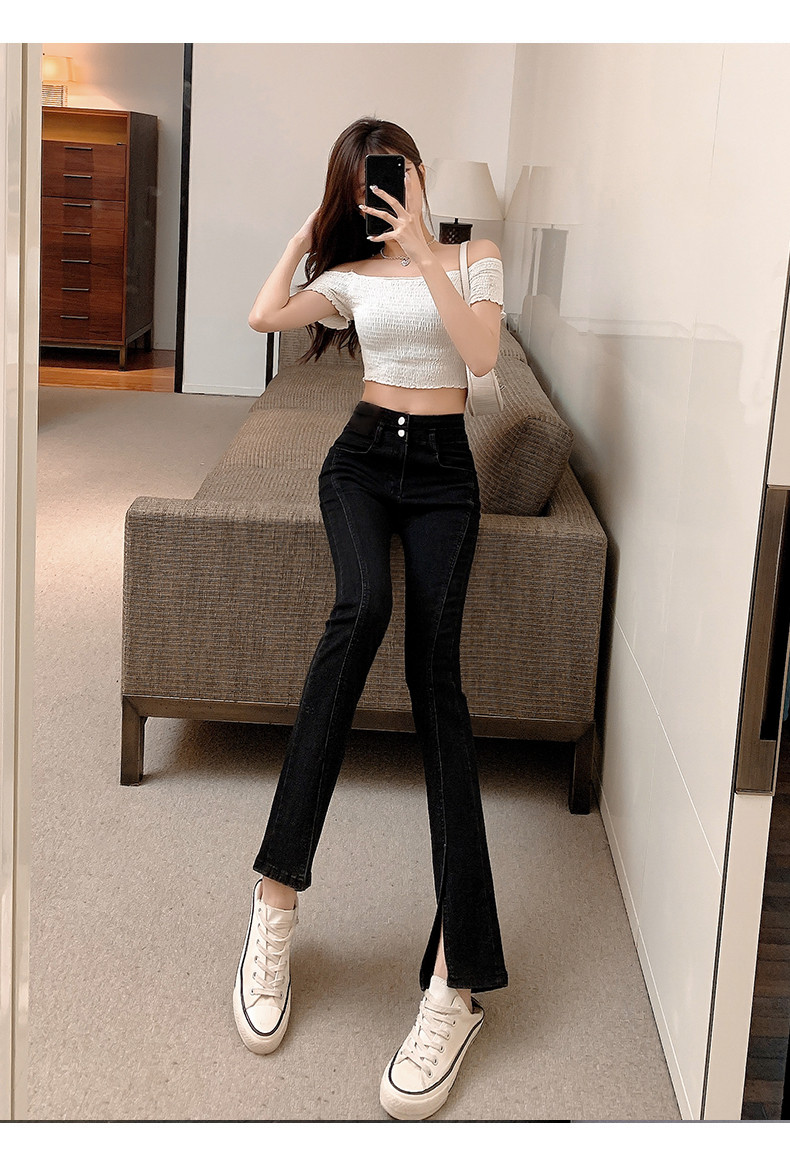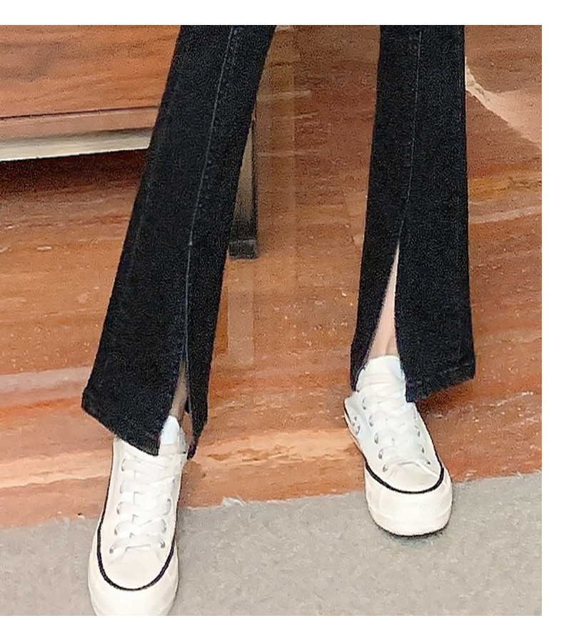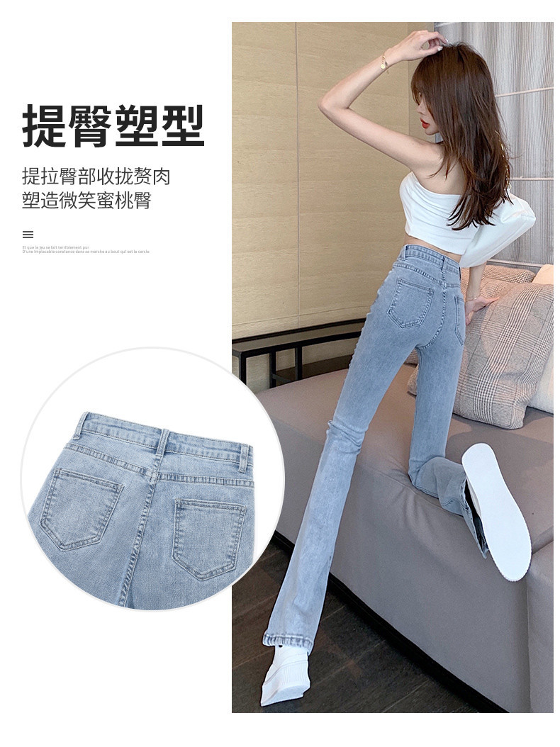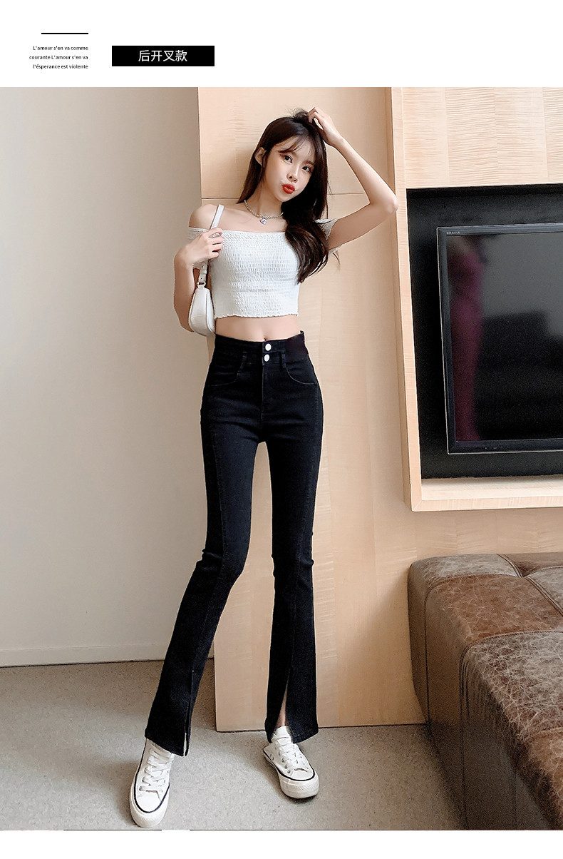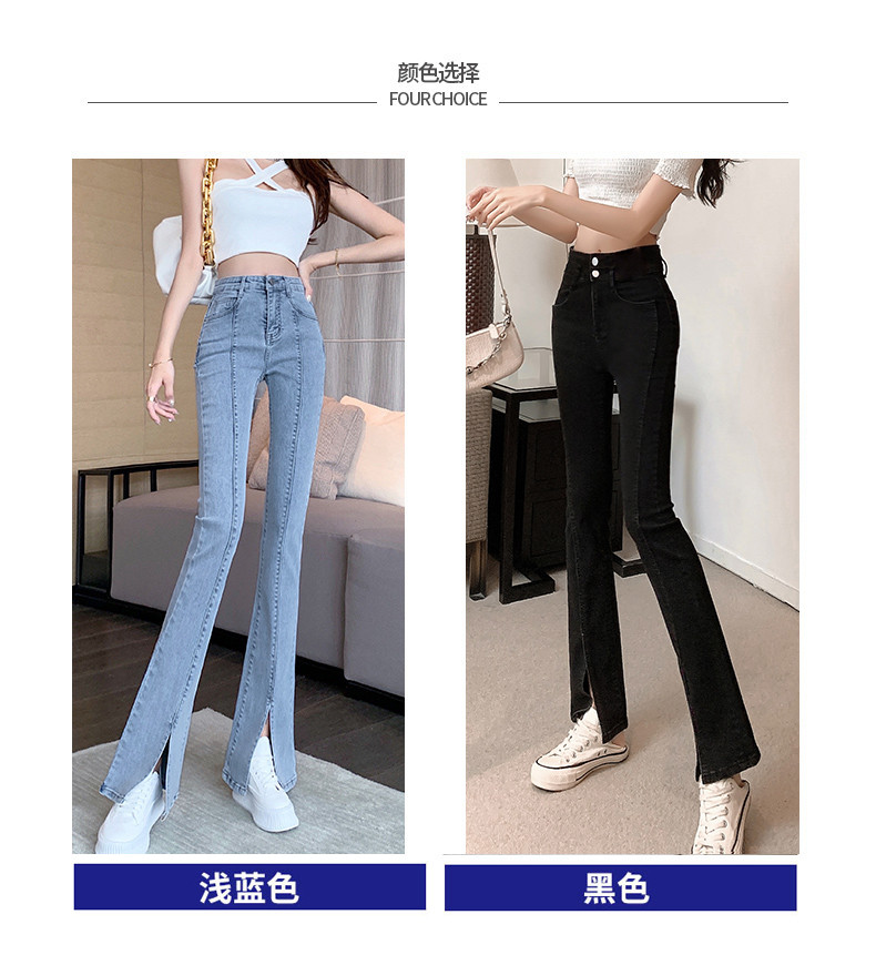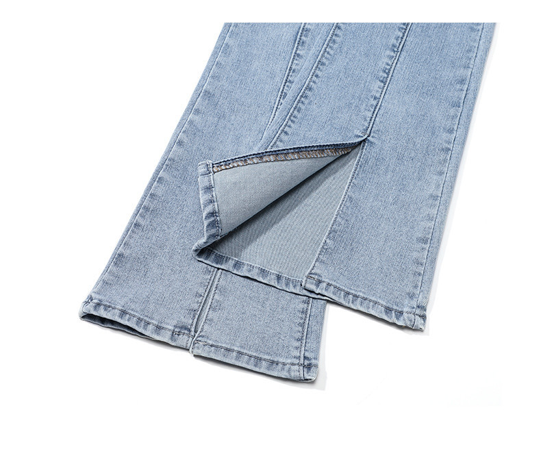 实拍开叉牛仔裤女夏季薄款2021新款高腰小个子微喇叭阔腿女裤子