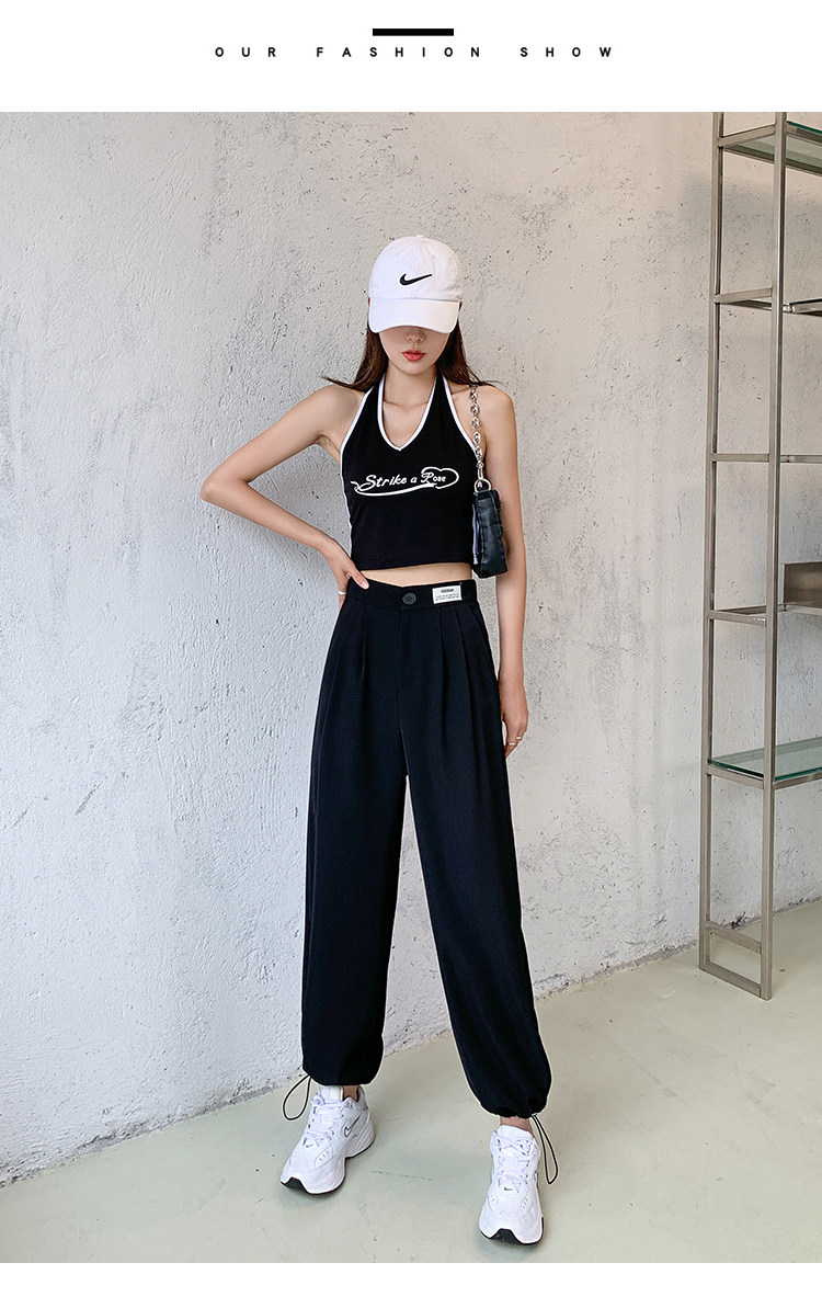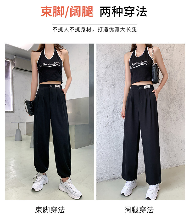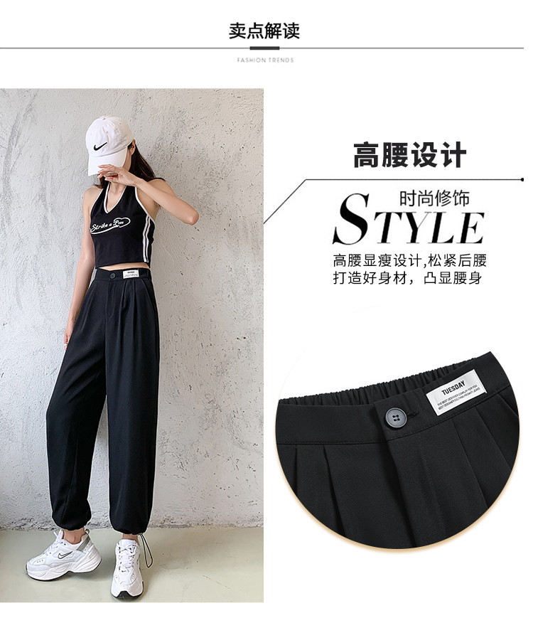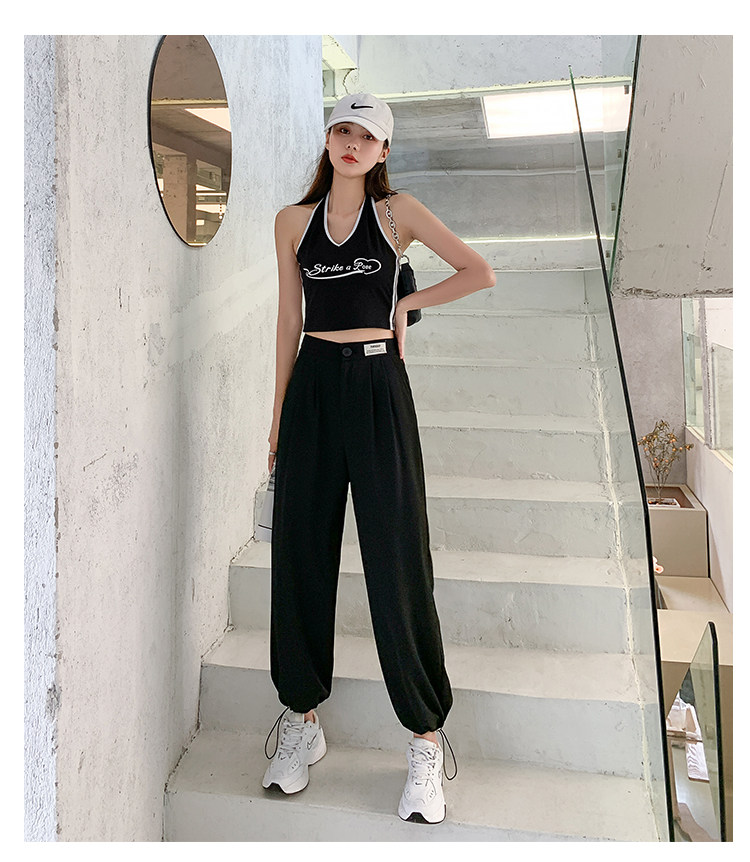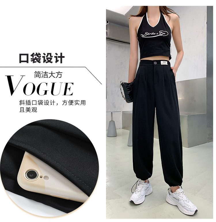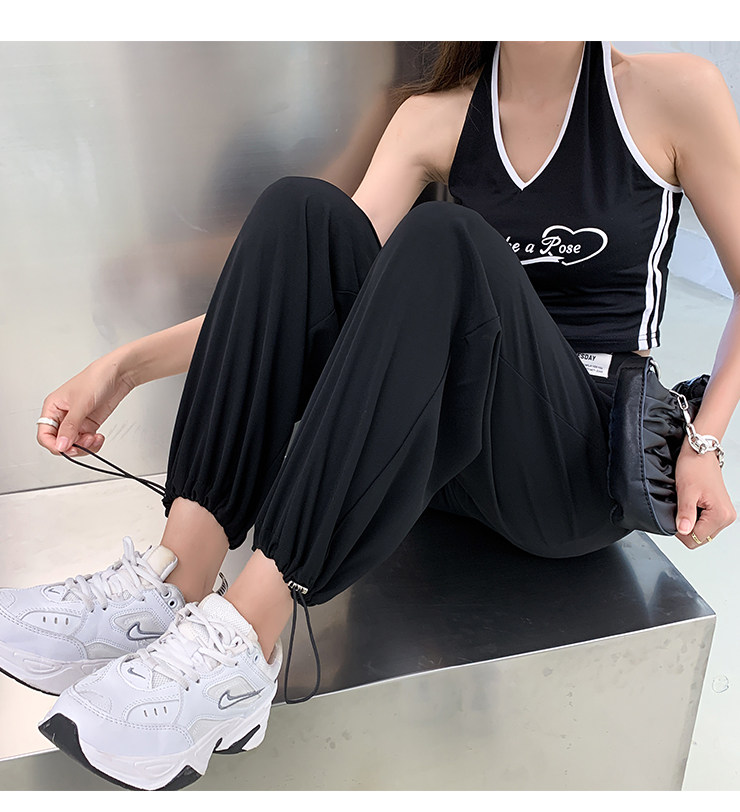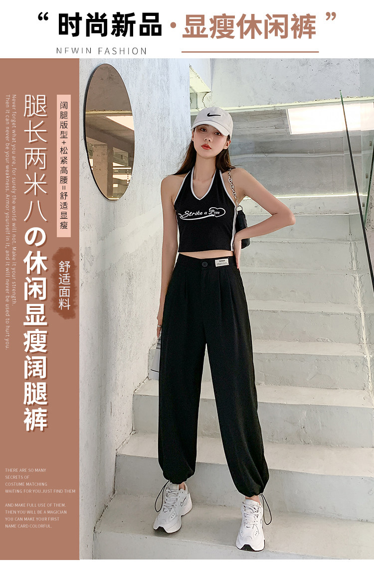 实拍夏季新款韩版直筒抽绳束脚哈伦宽松百搭休闲九分灯笼裤女