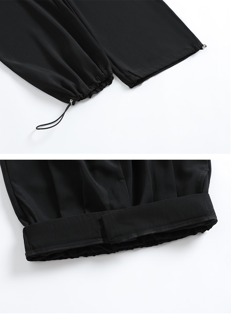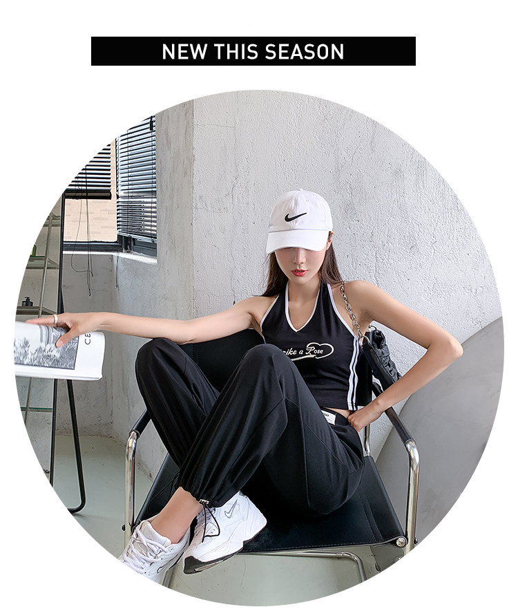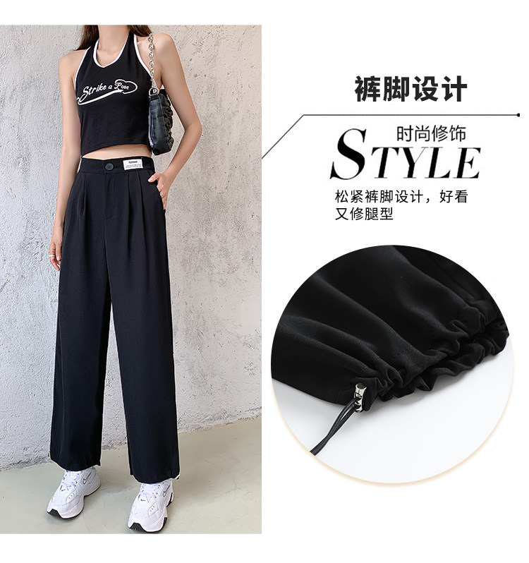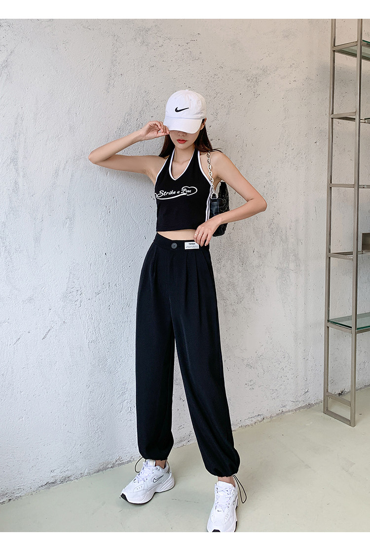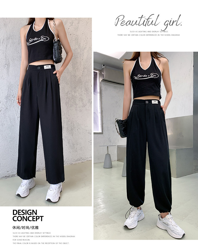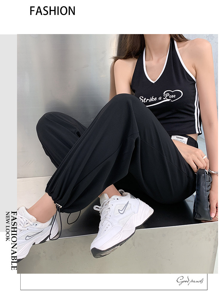 实拍夏季新款韩版直筒抽绳束脚哈伦宽松百搭休闲九分灯笼裤女