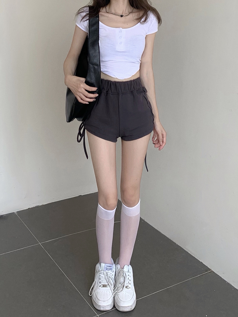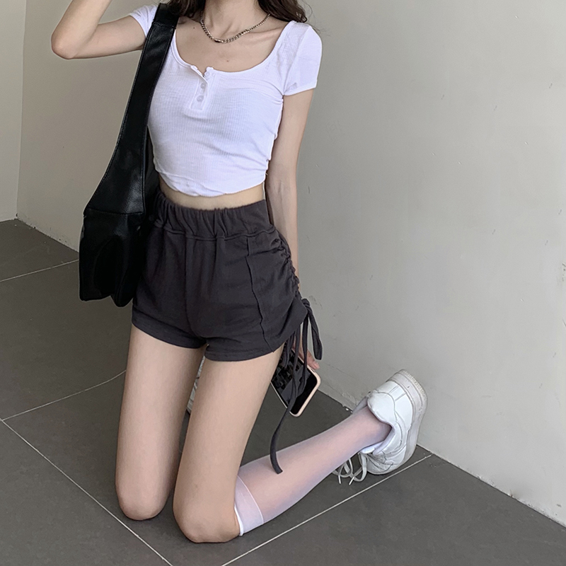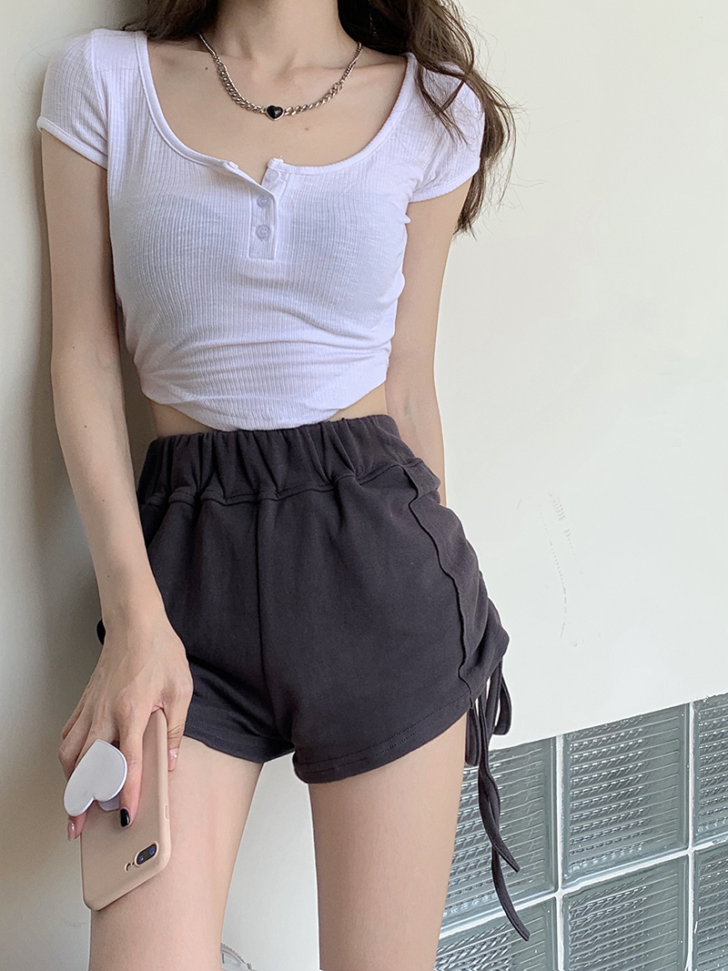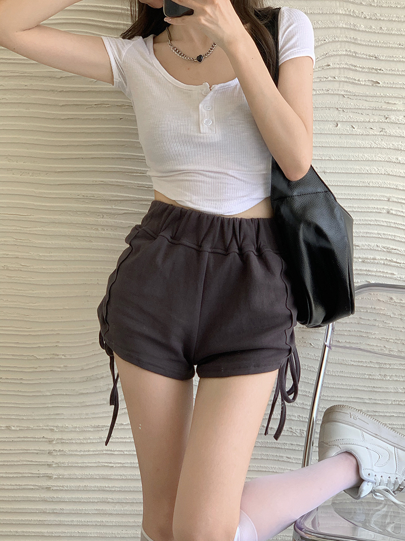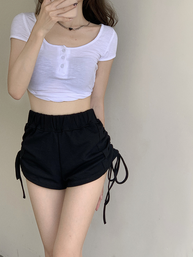 实价实拍三标齐有个性两连抽绳短袖辣妹系列热裤