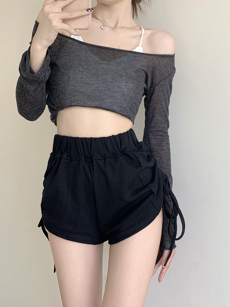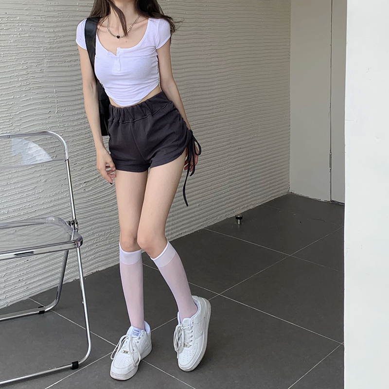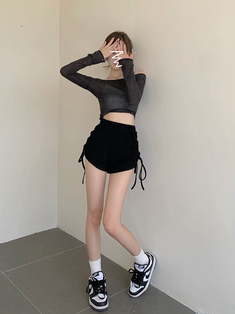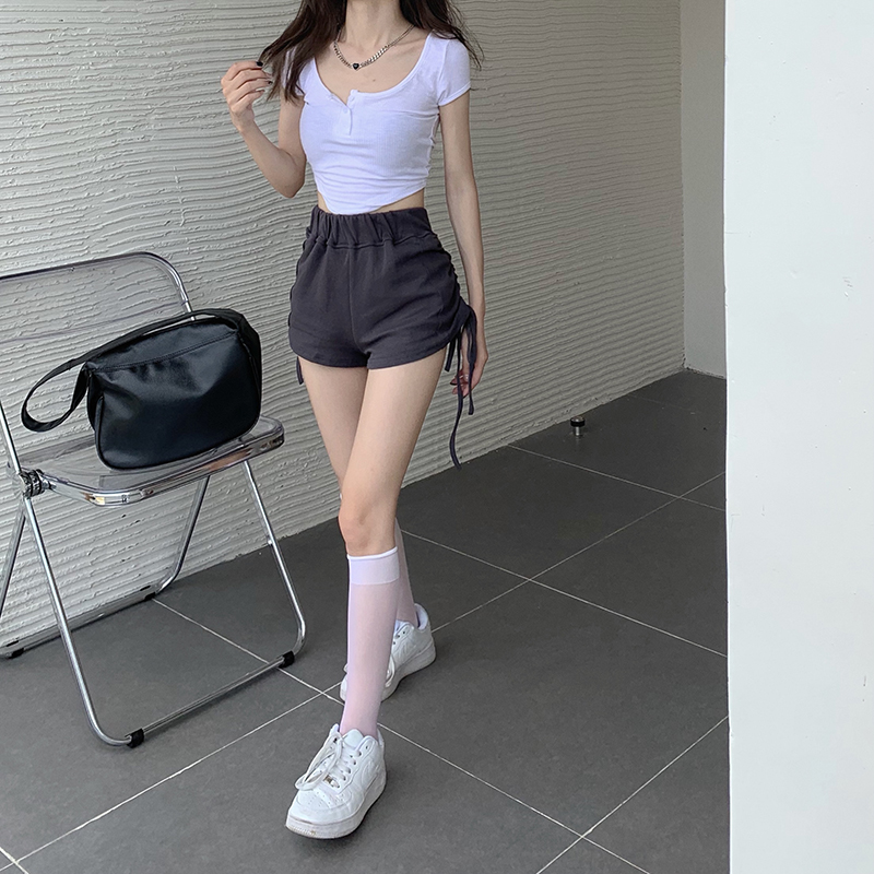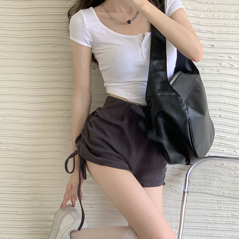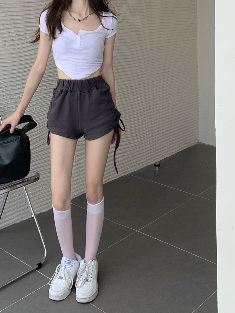 实价实拍三标齐有个性两连抽绳短袖辣妹系列热裤