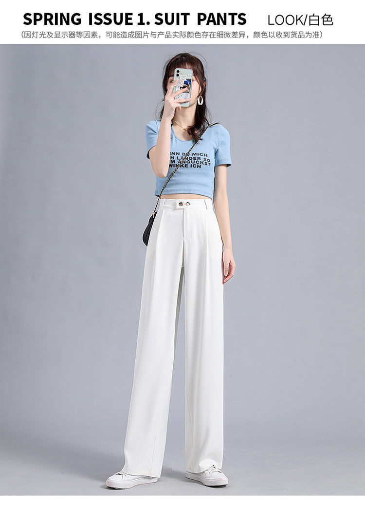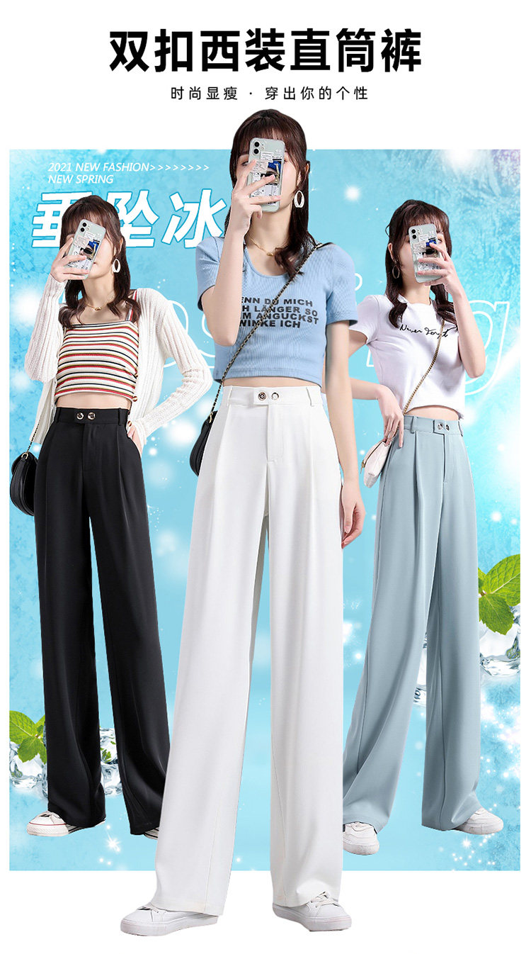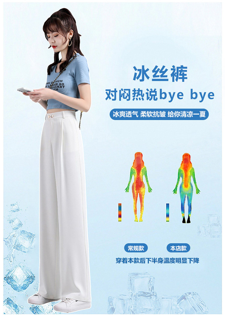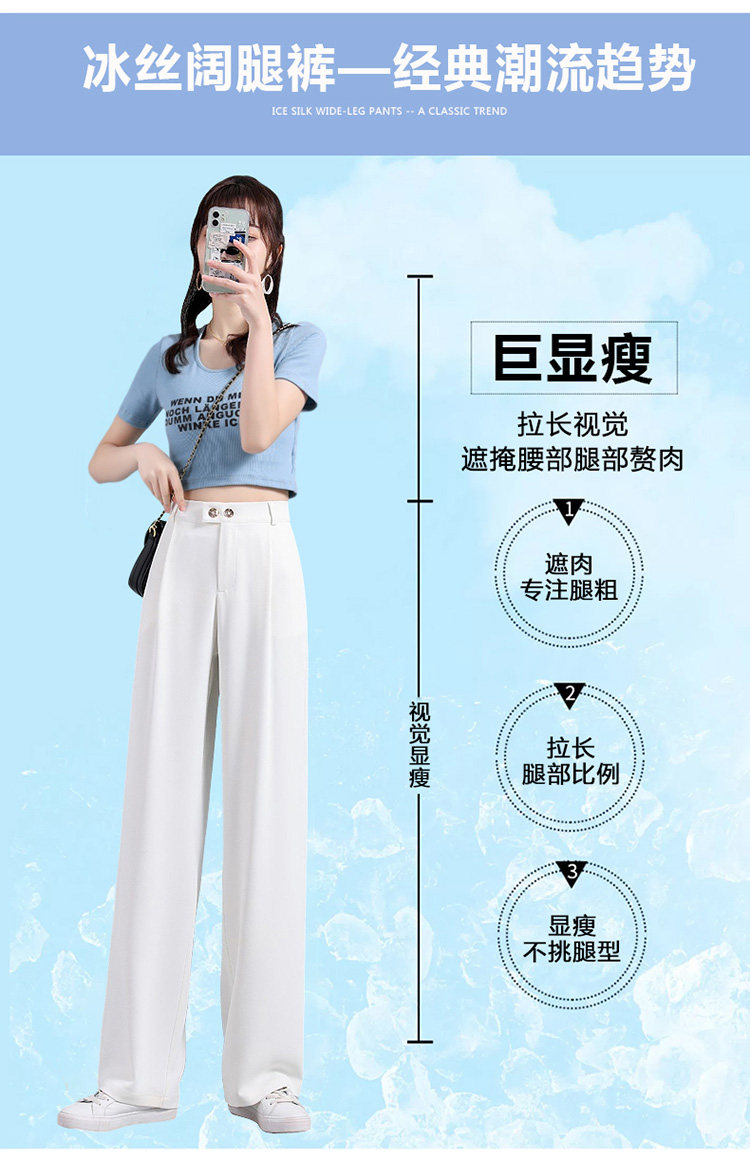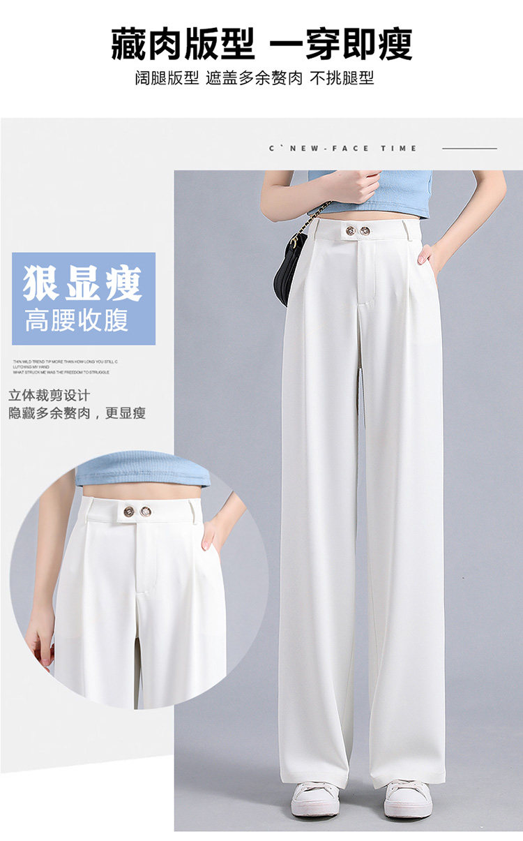 实拍 冰丝阔腿裤女高腰垂坠感夏季薄款宽松拖地西装休闲裤