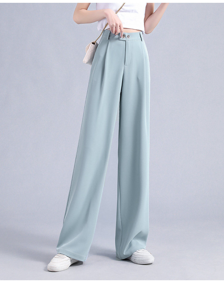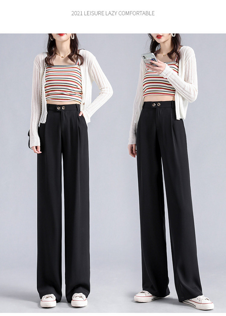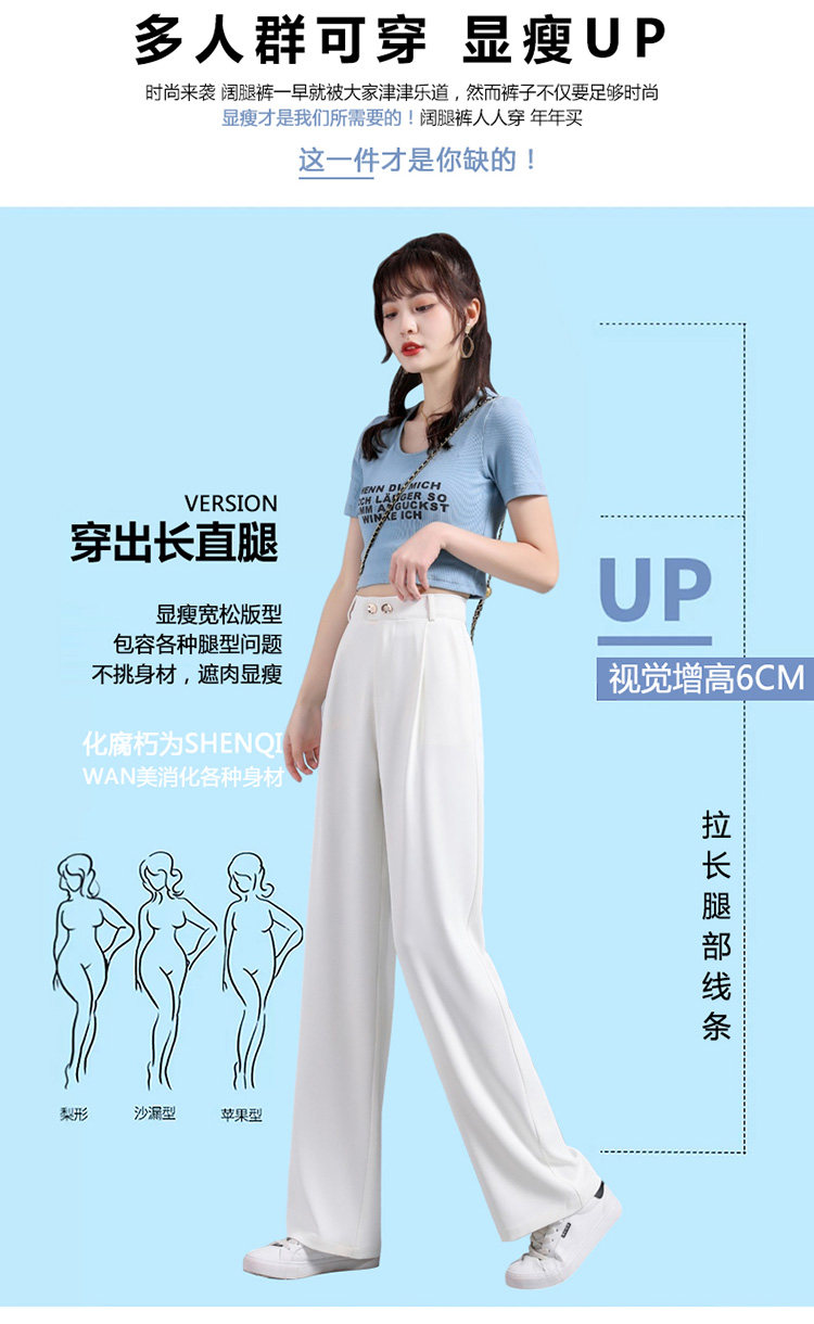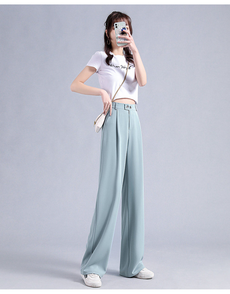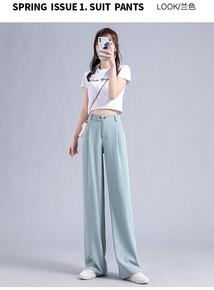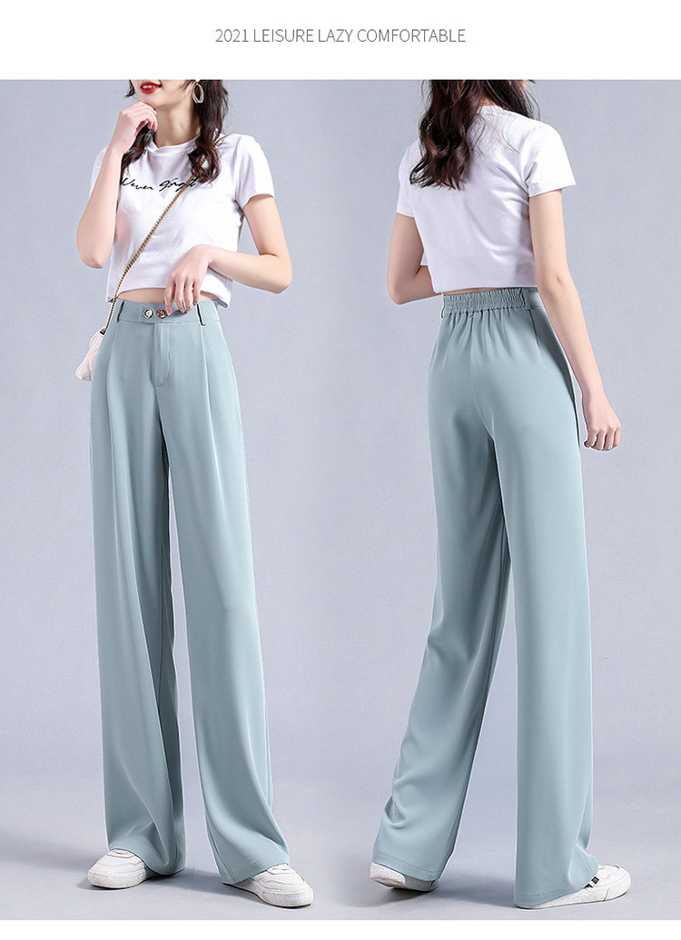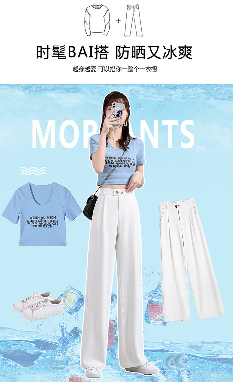 实拍 冰丝阔腿裤女高腰垂坠感夏季薄款宽松拖地西装休闲裤