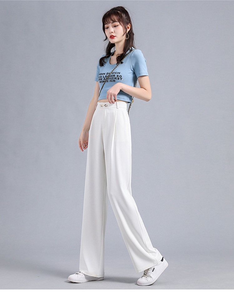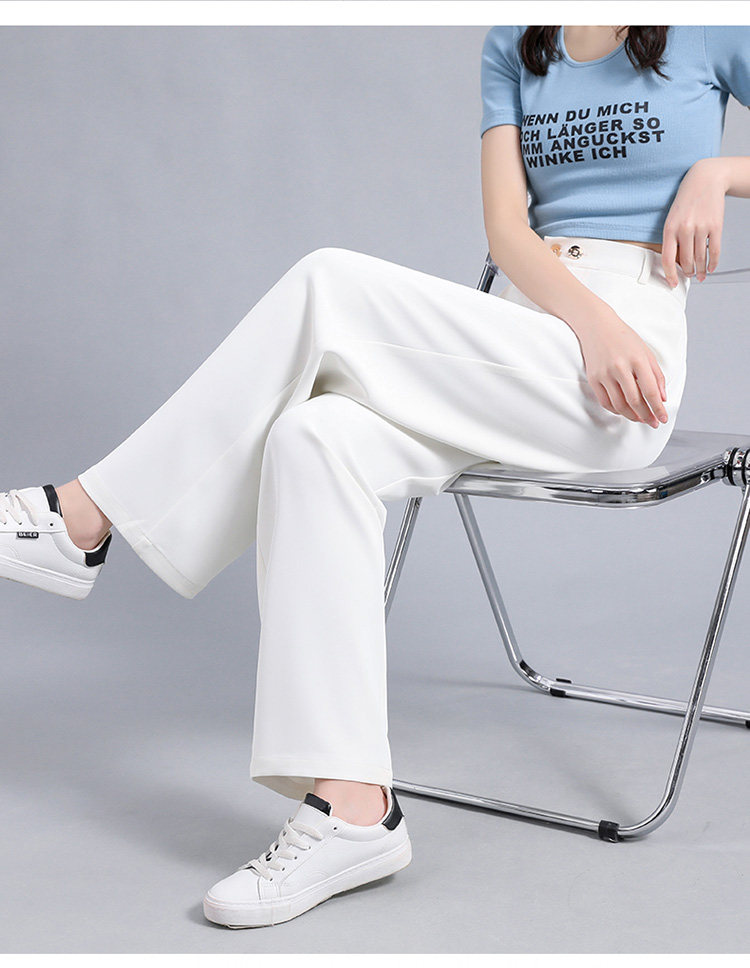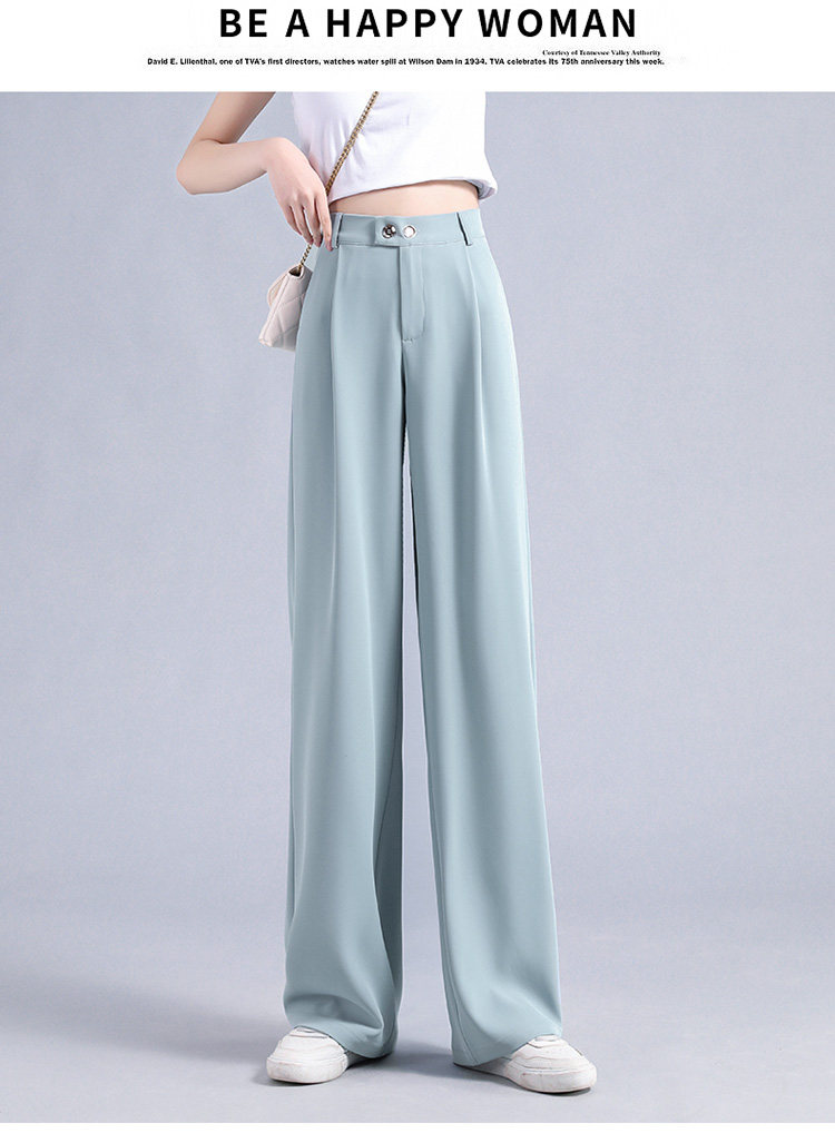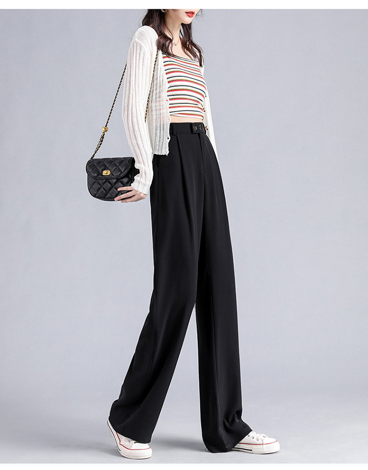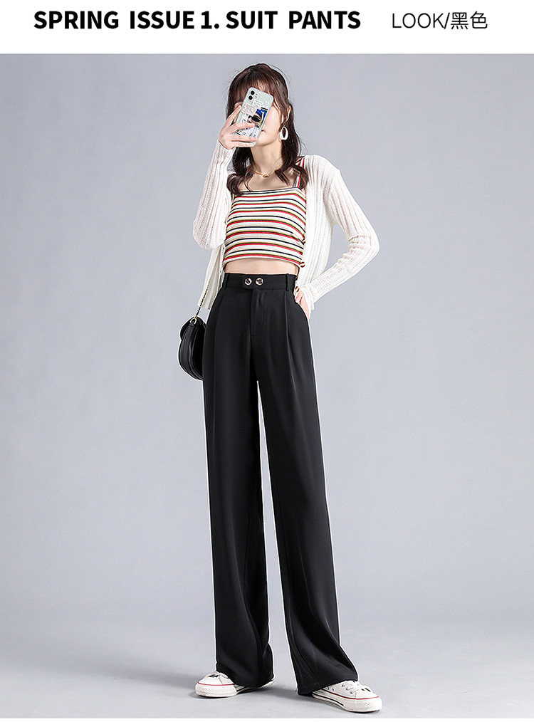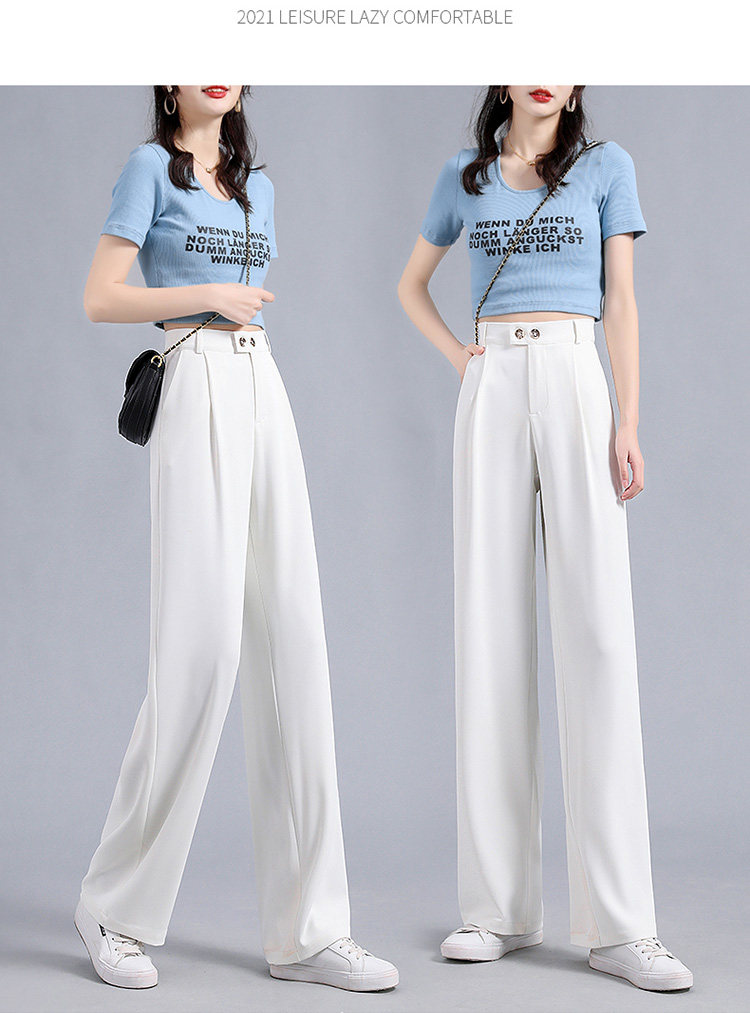 实拍 冰丝阔腿裤女高腰垂坠感夏季薄款宽松拖地西装休闲裤