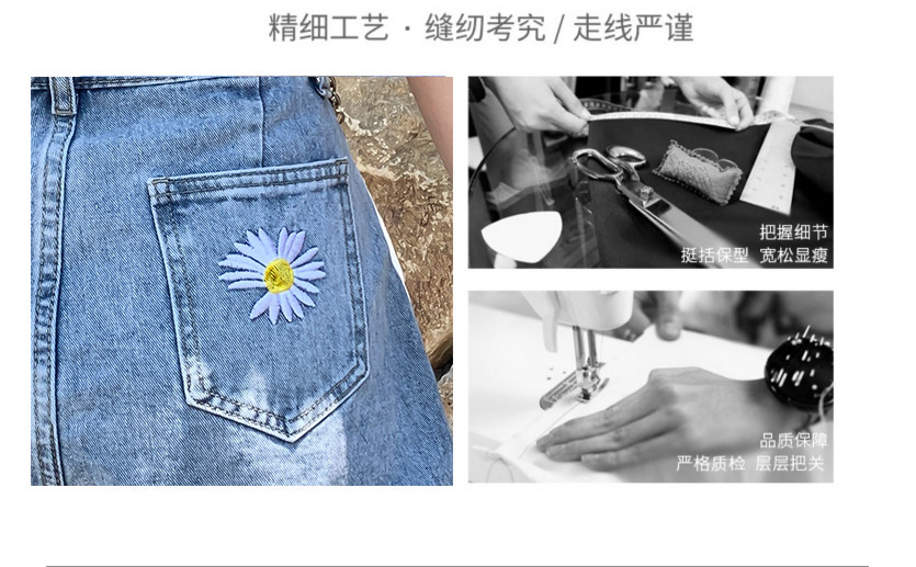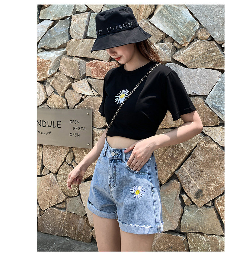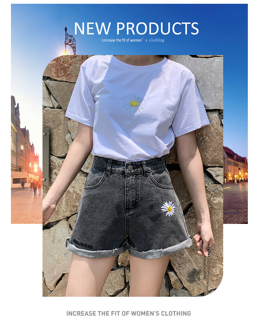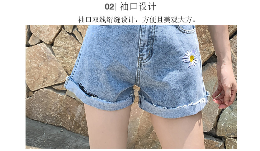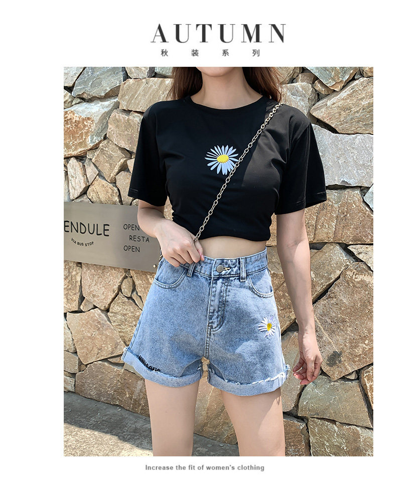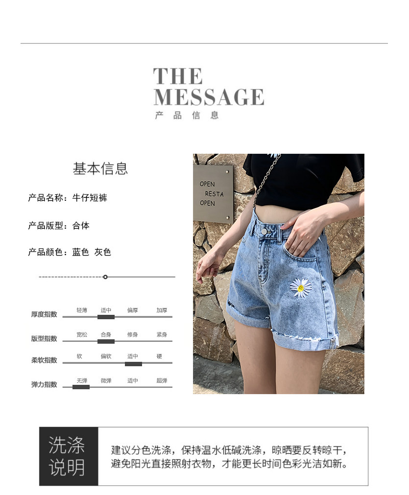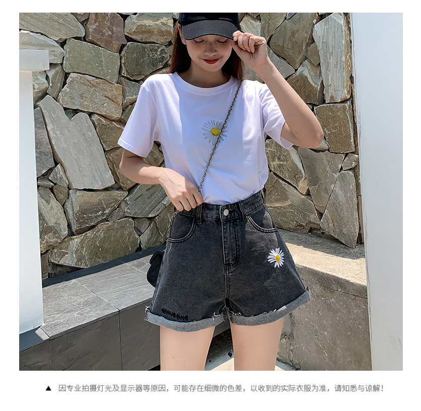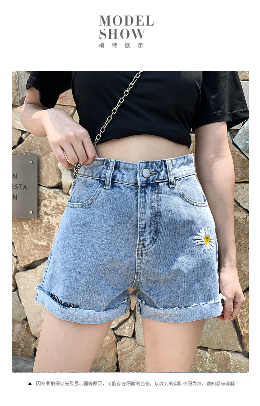 实拍下叫新款牛仔短裤女破洞高腰显瘦a字阔腿宽松小雏菊热裤潮女
