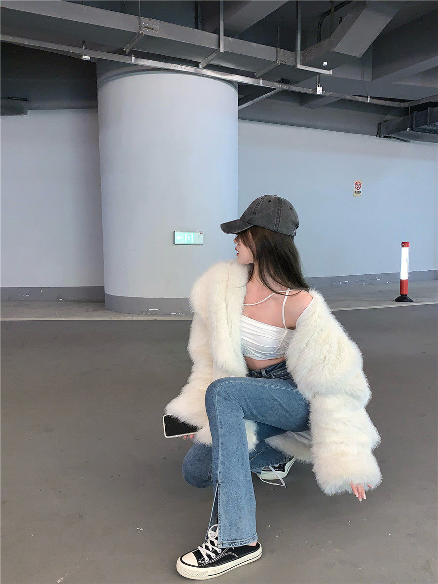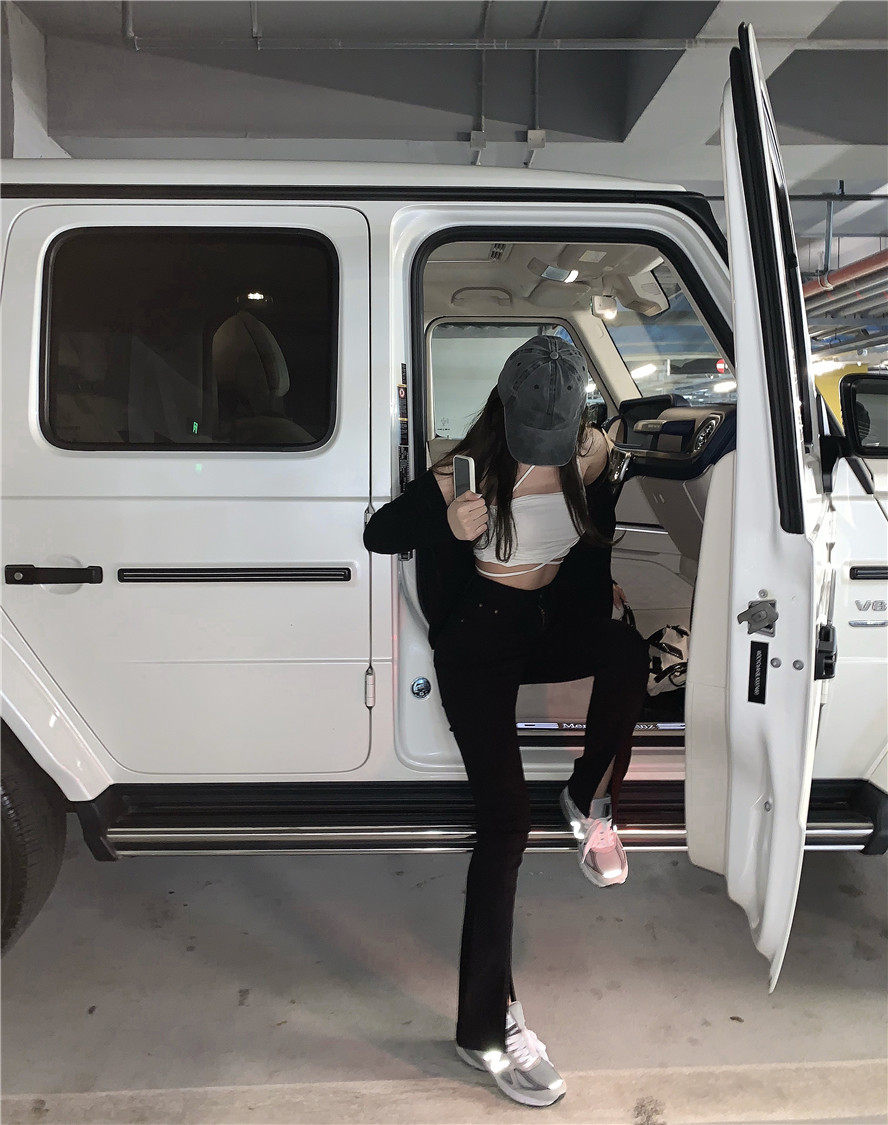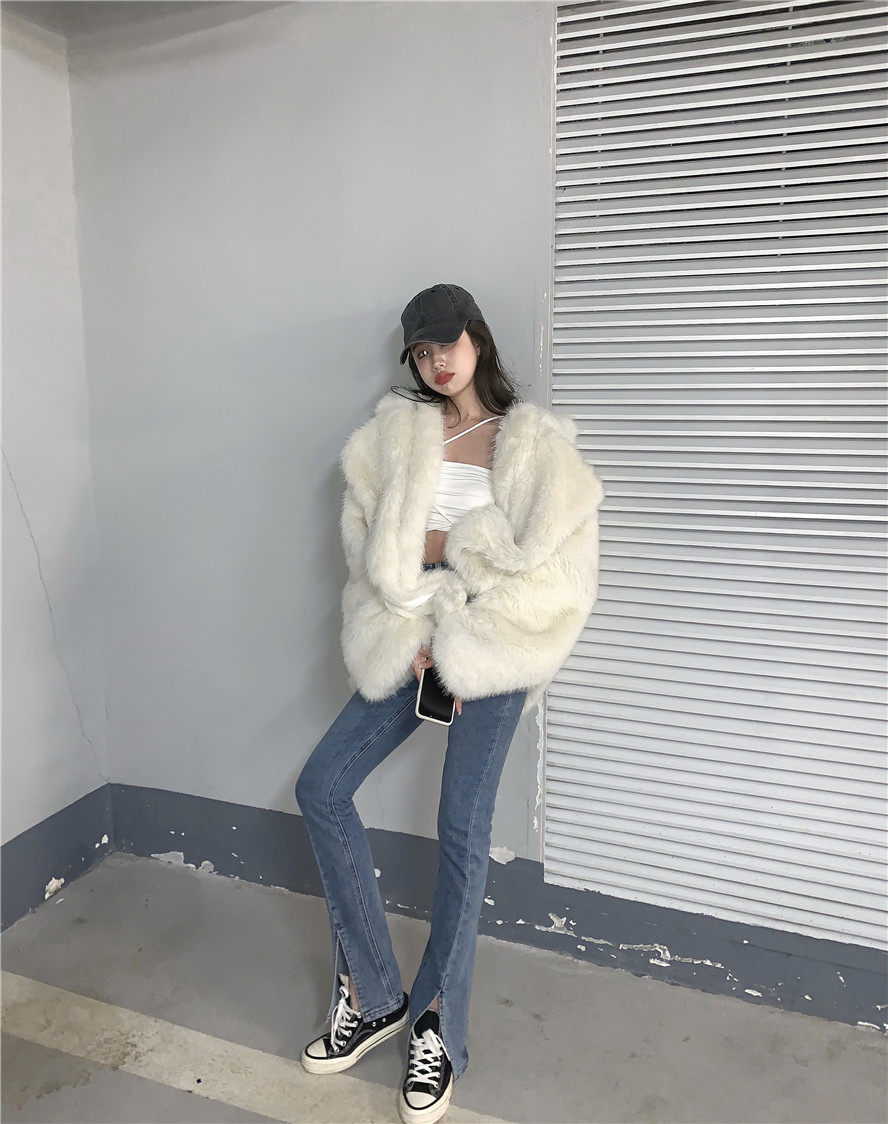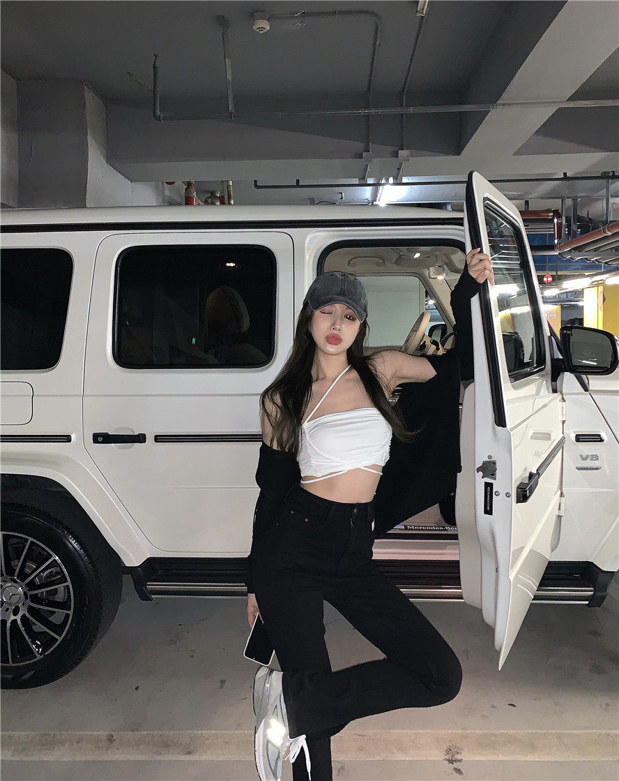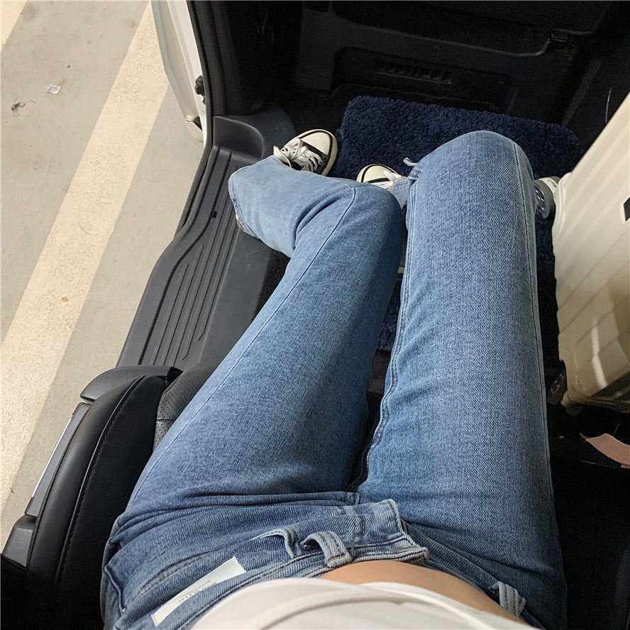 实拍 高腰复古牛仔开叉微喇牛仔裤女