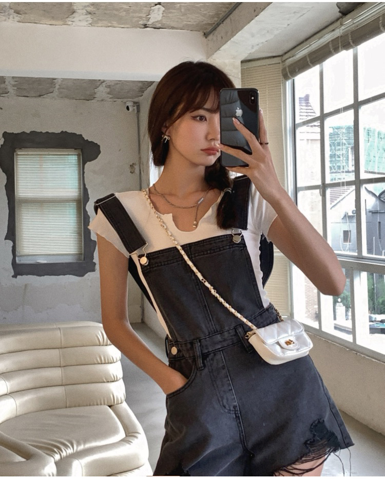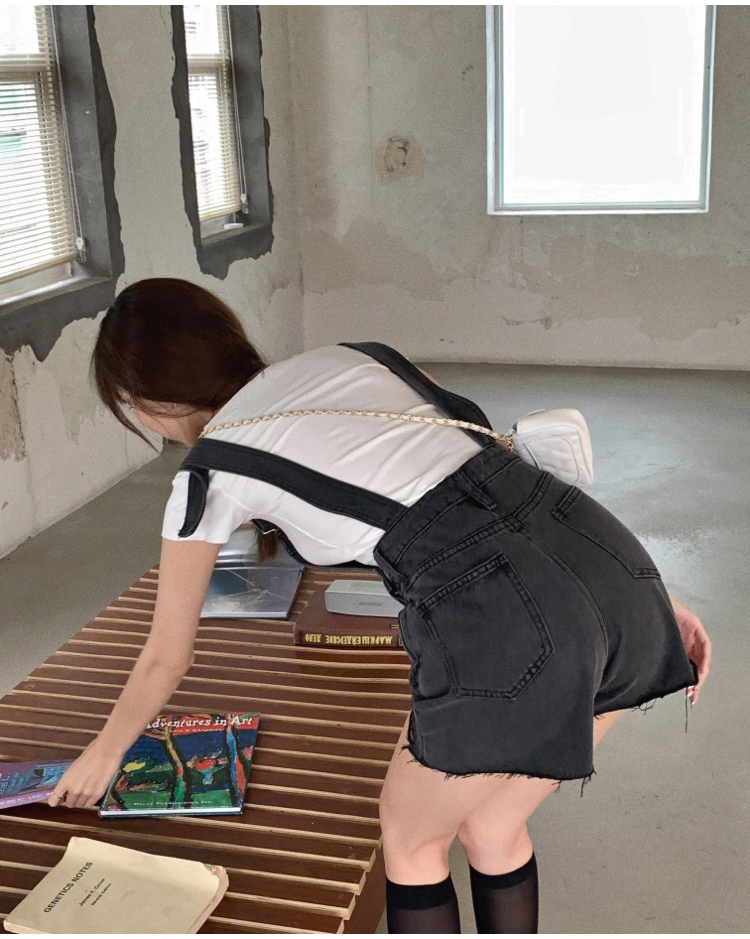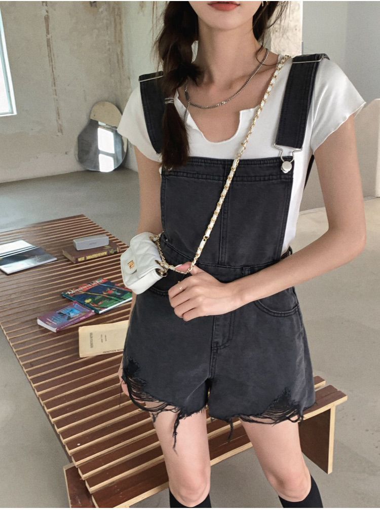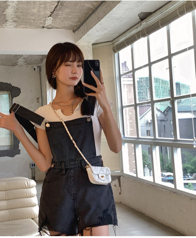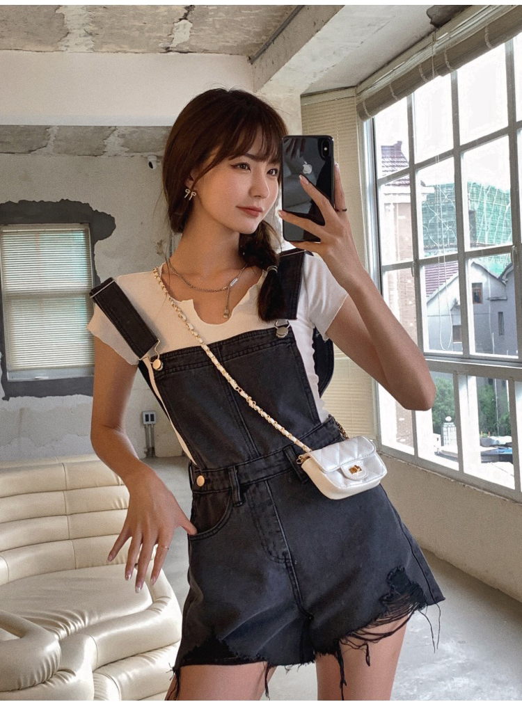 实拍 牛仔背带裤女韩版宽松短裤2021新潮显瘦直筒高腰磨破裤子夏