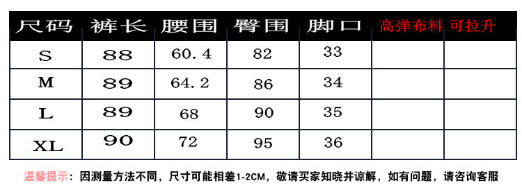 - 裤长:九分裤