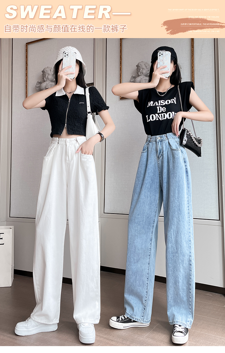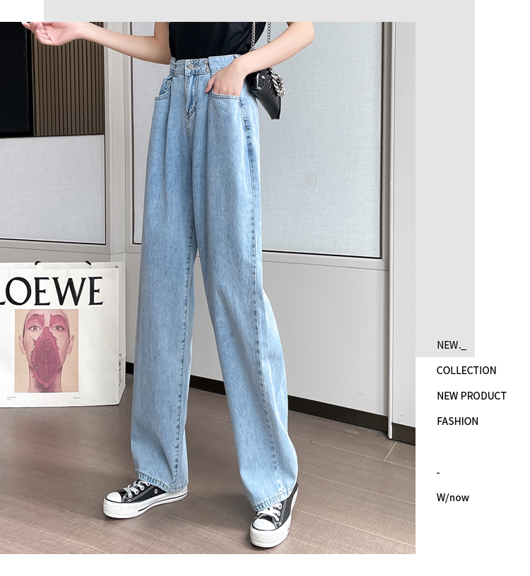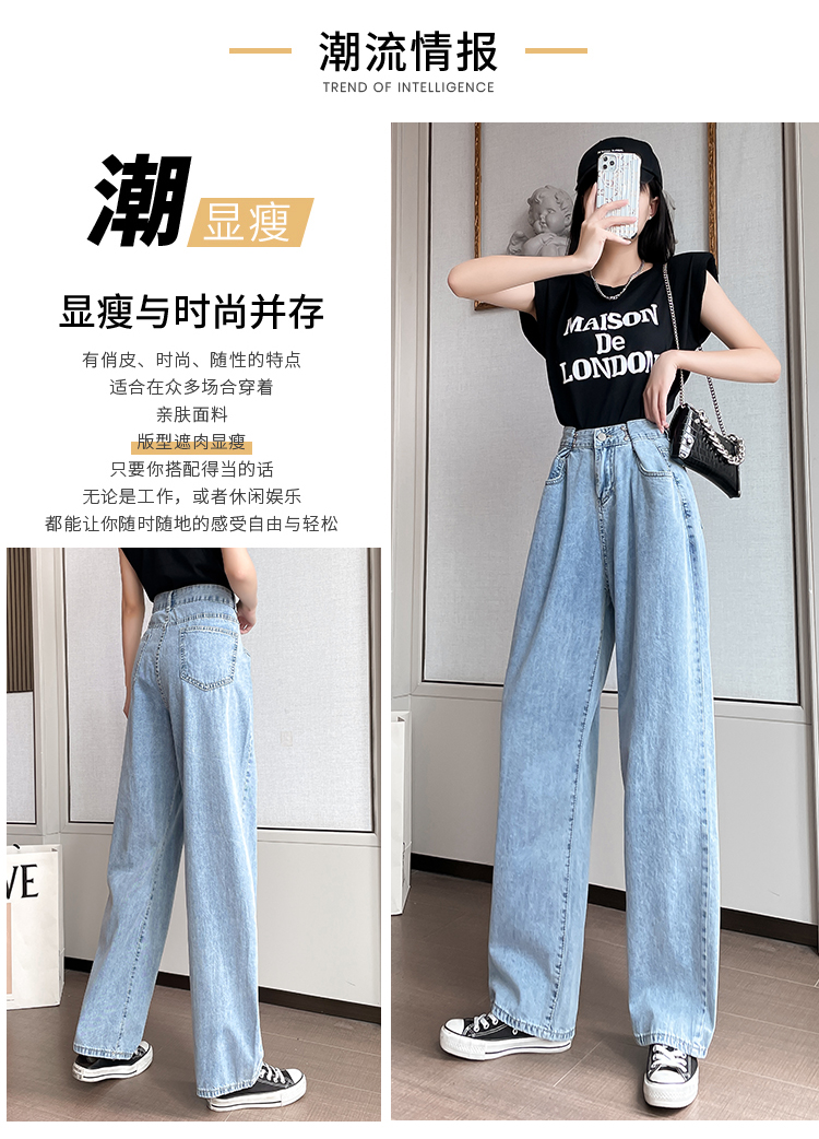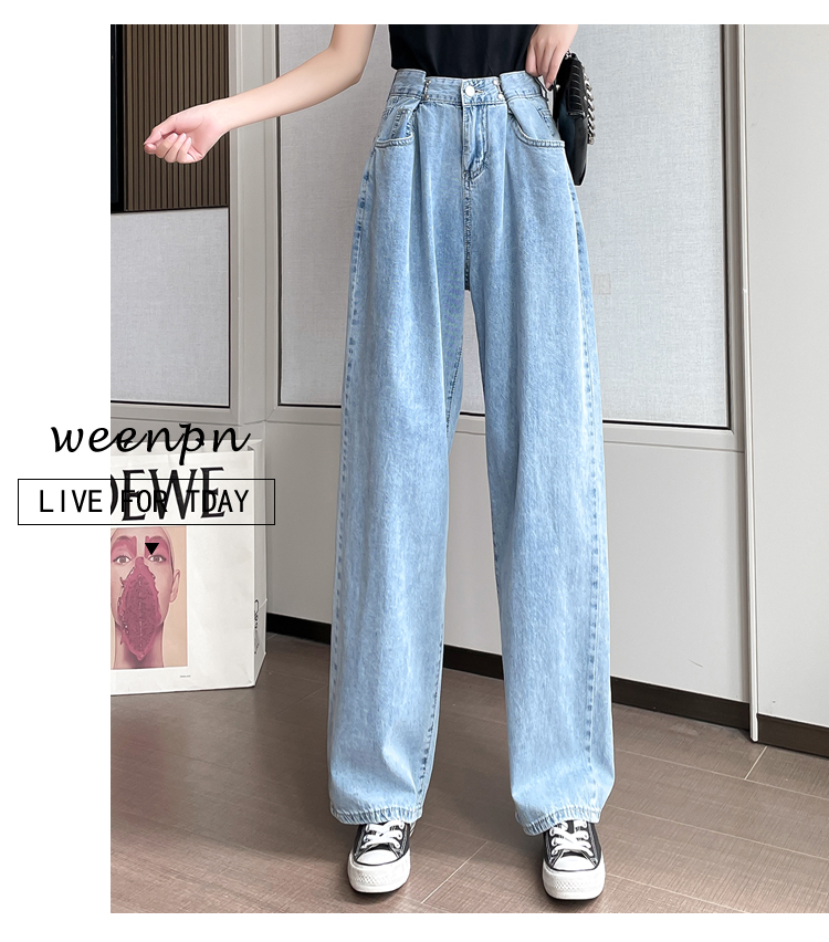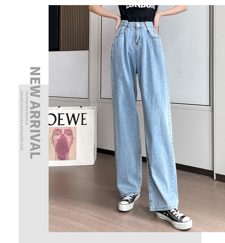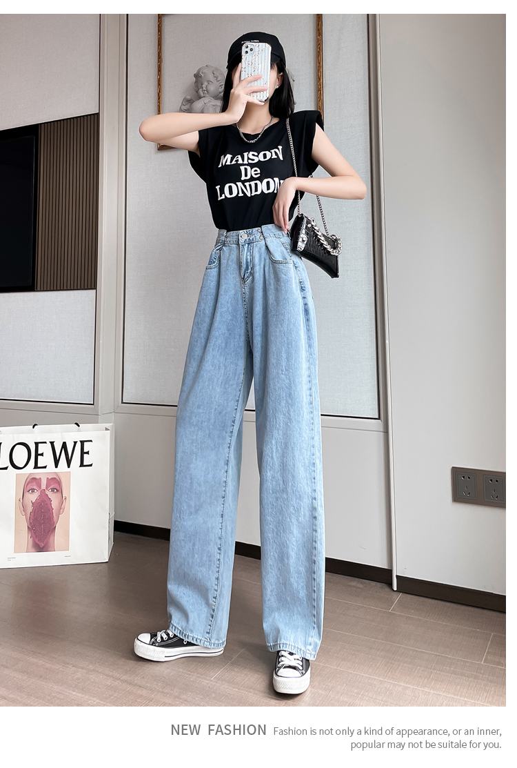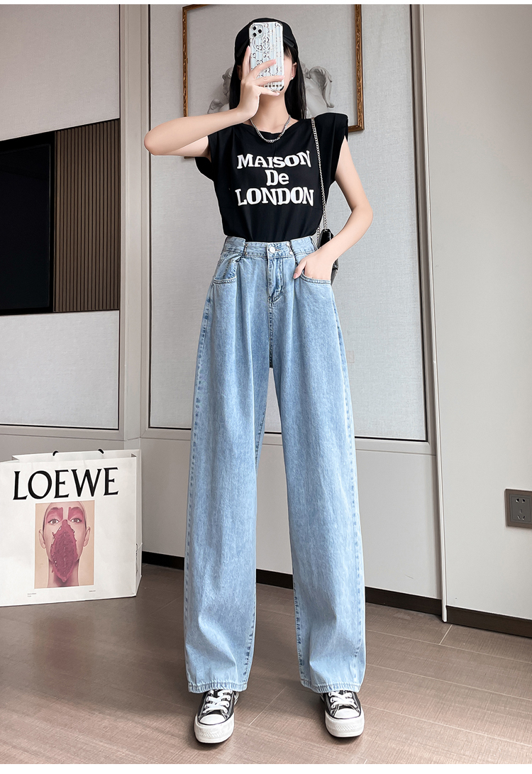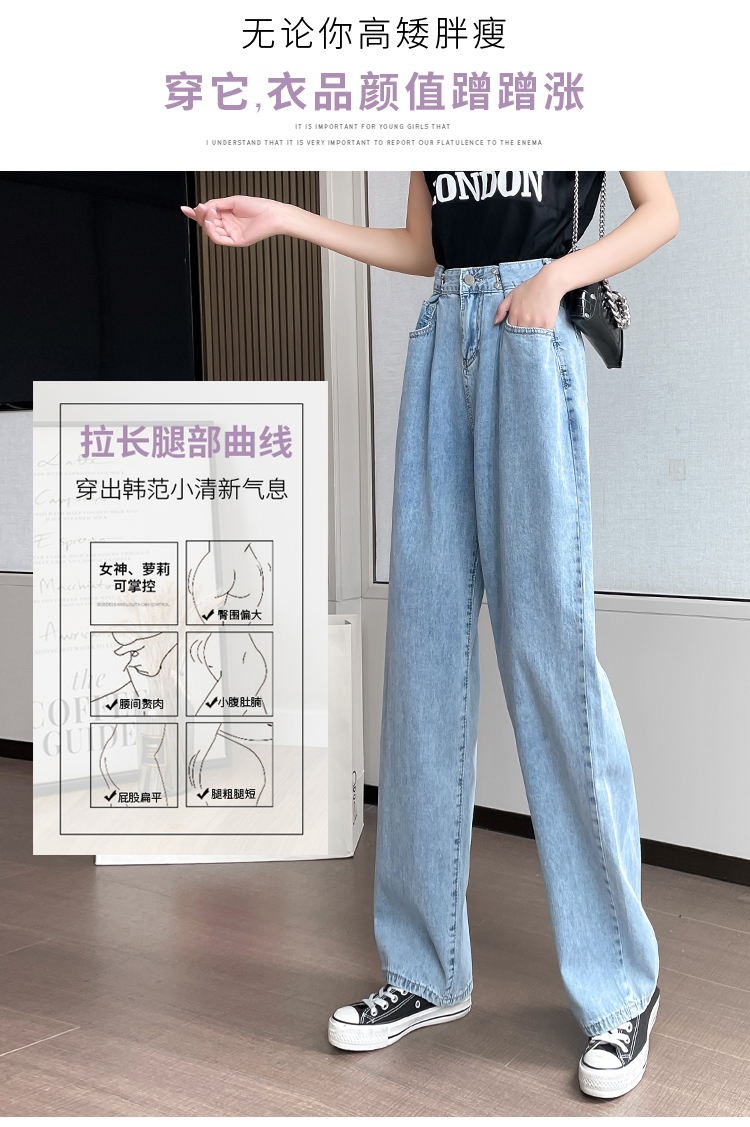高腰阔腿牛仔裤女2021年新款夏天薄款宽松显瘦设计感直筒拖地裤子