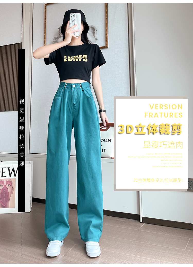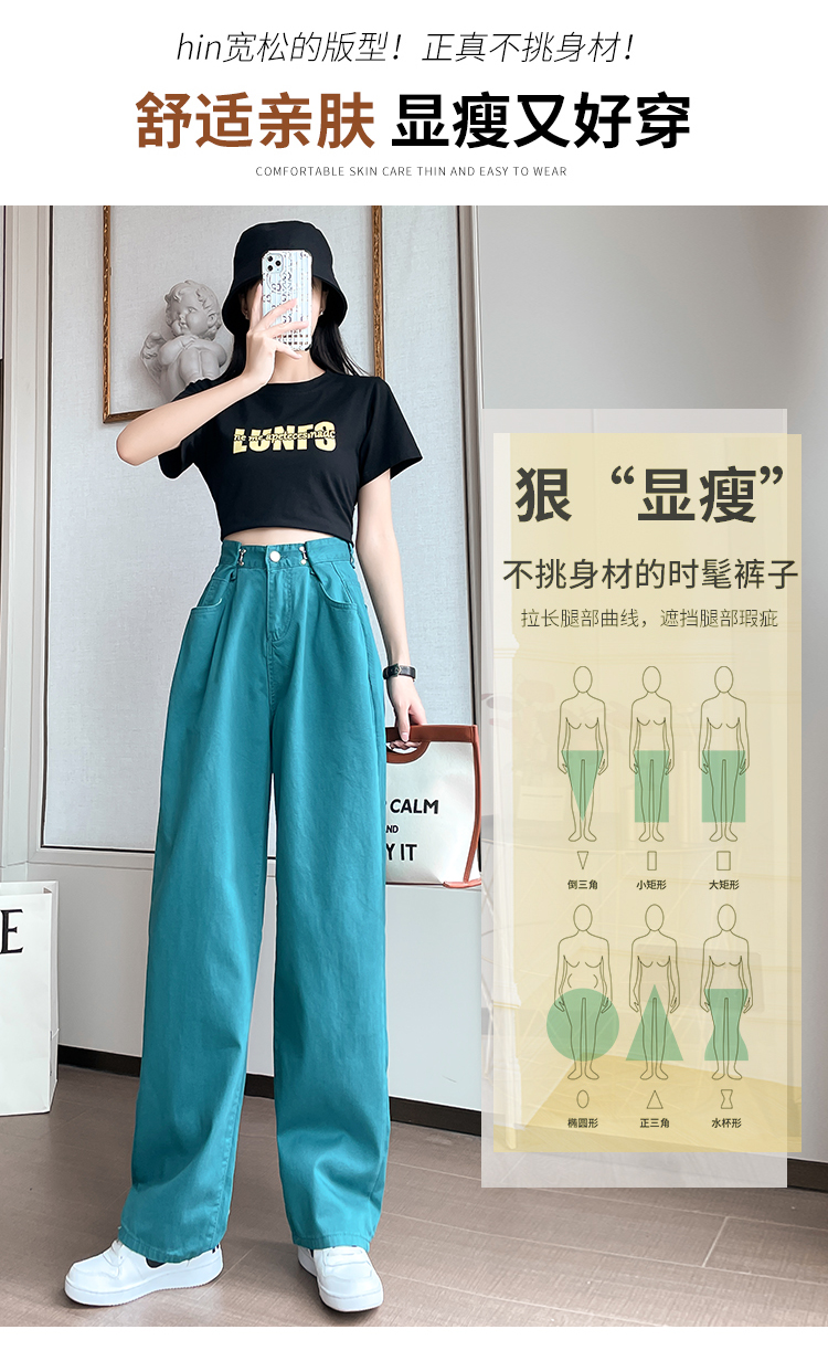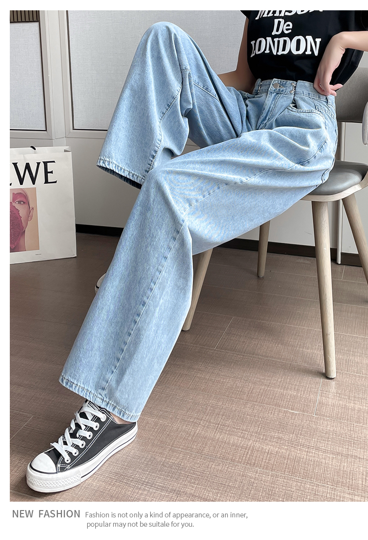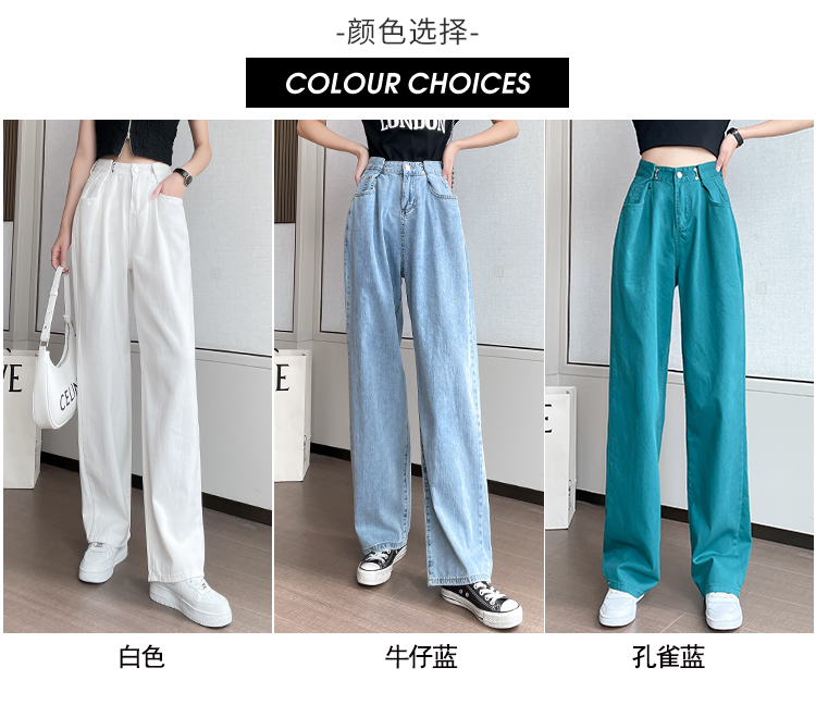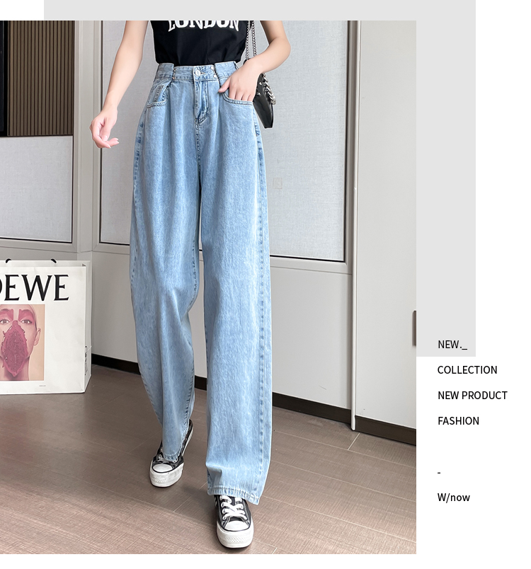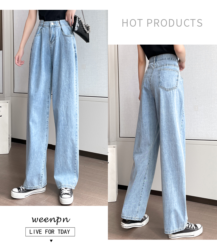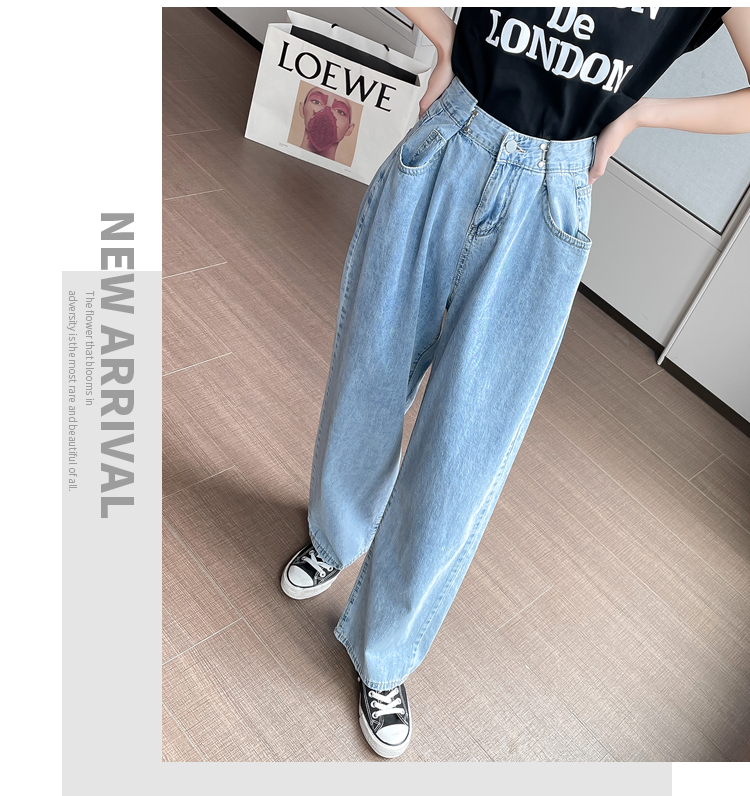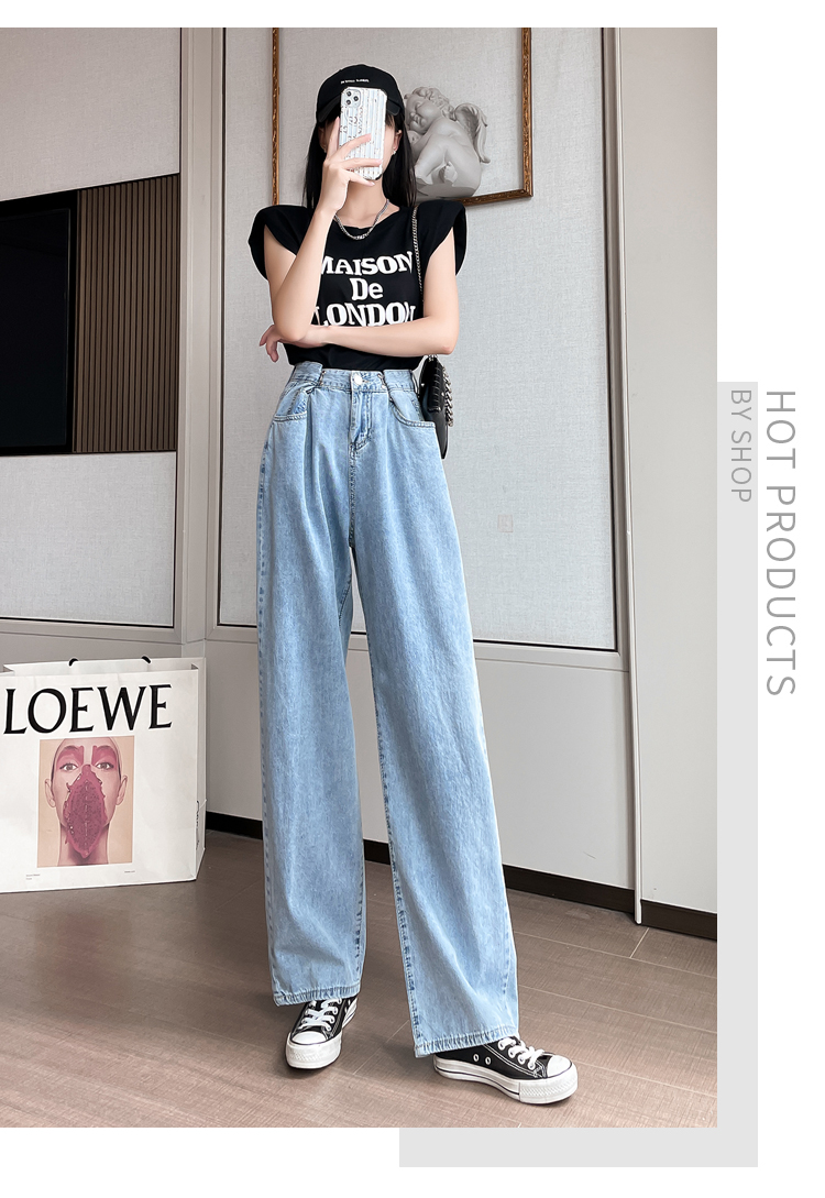高腰阔腿牛仔裤女2021年新款夏天薄款宽松显瘦设计感直筒拖地裤子