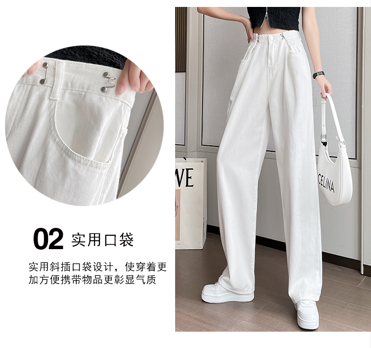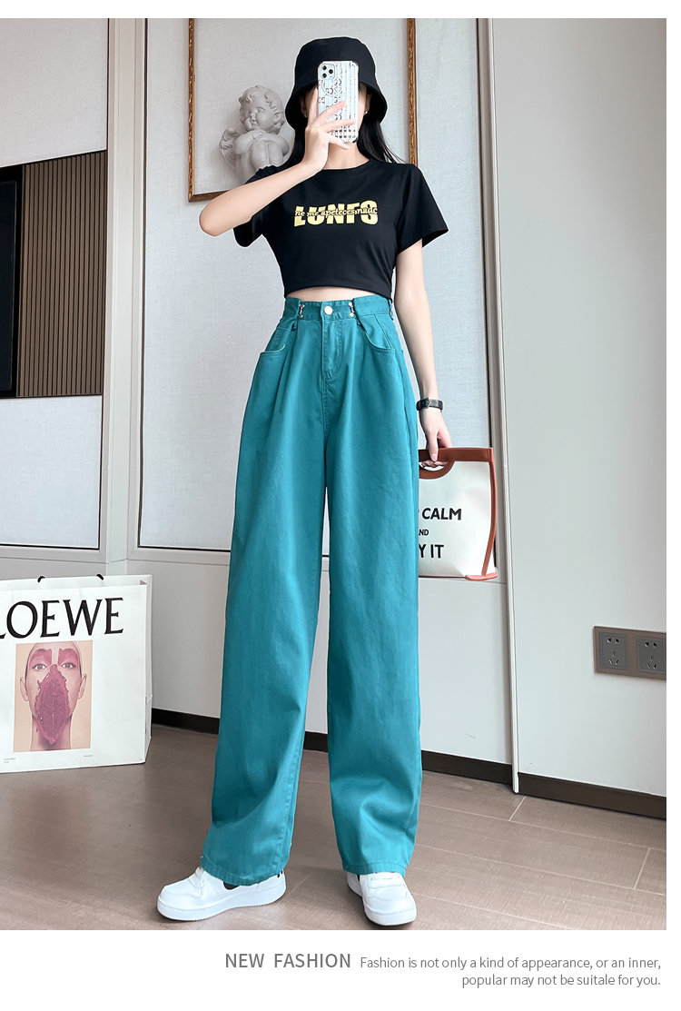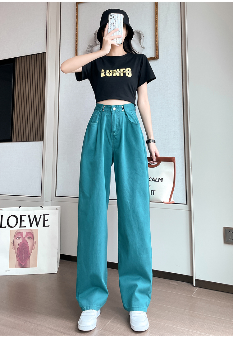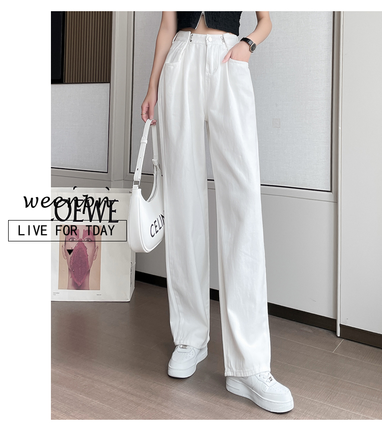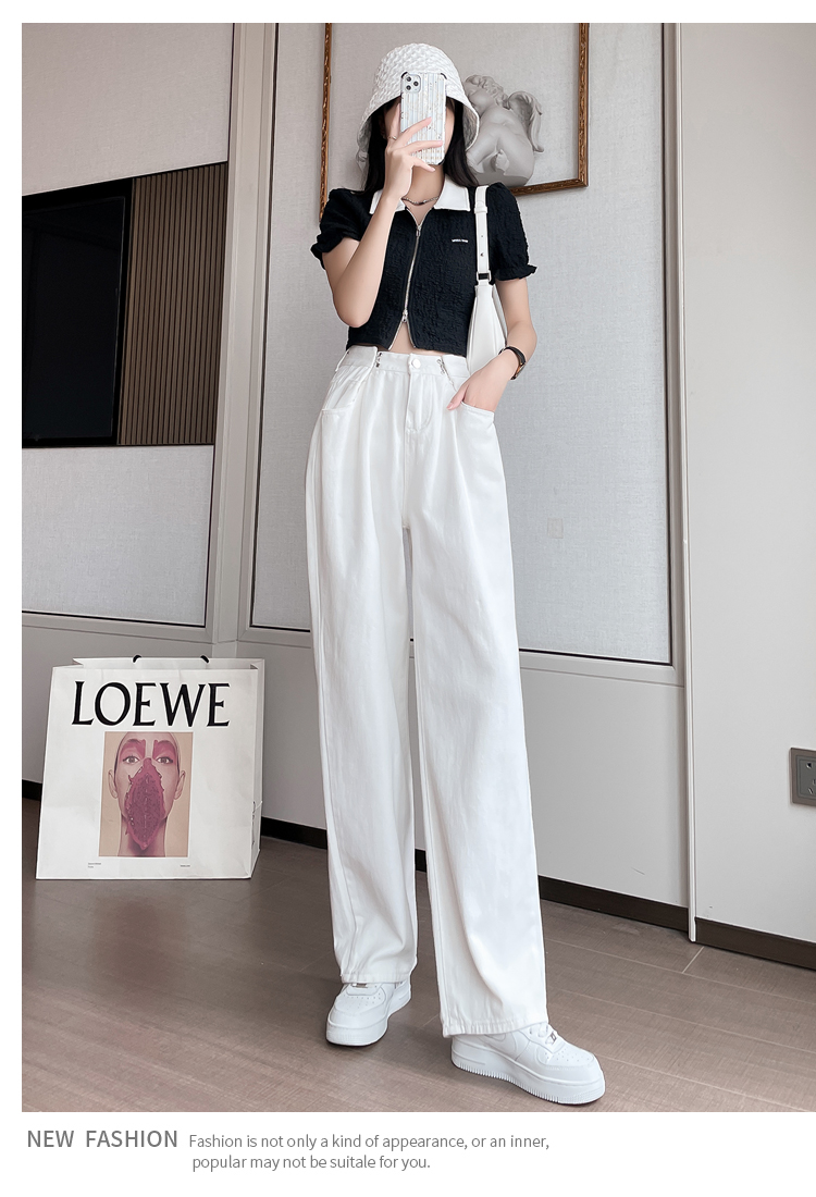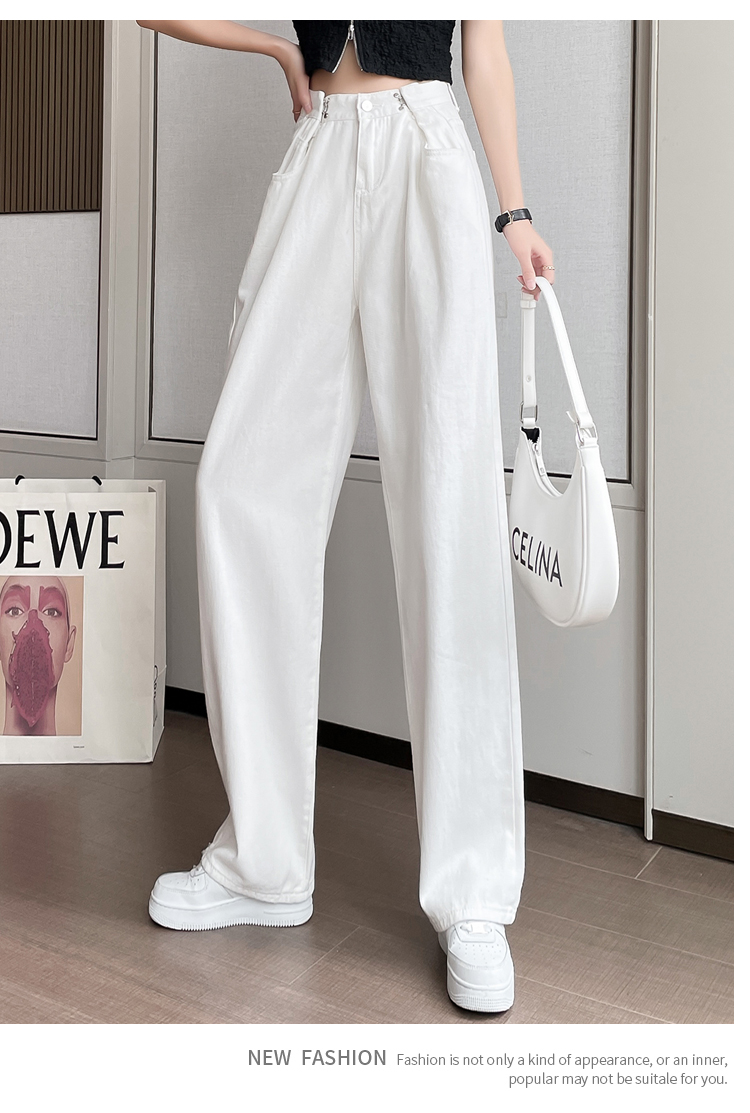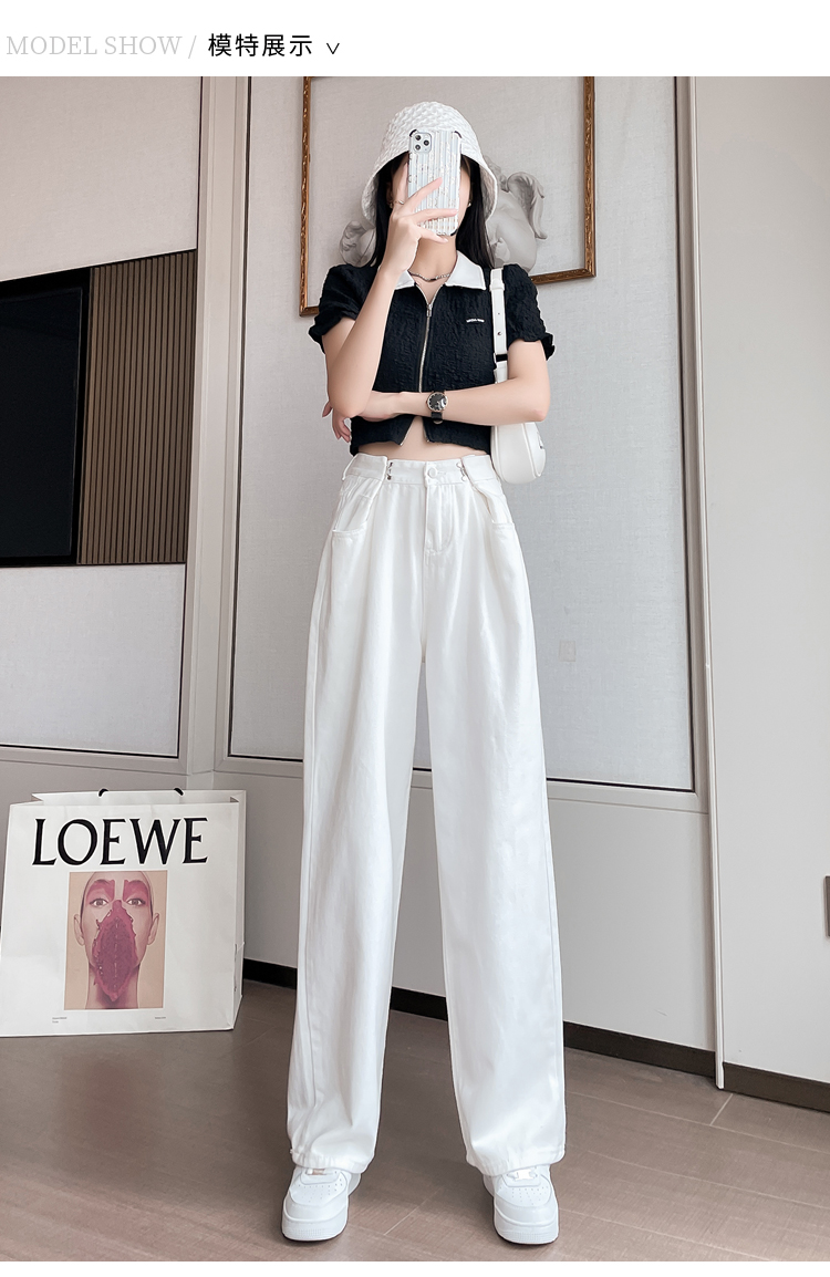 高腰阔腿牛仔裤女2021年新款夏天薄款宽松显瘦设计感直筒拖地裤子