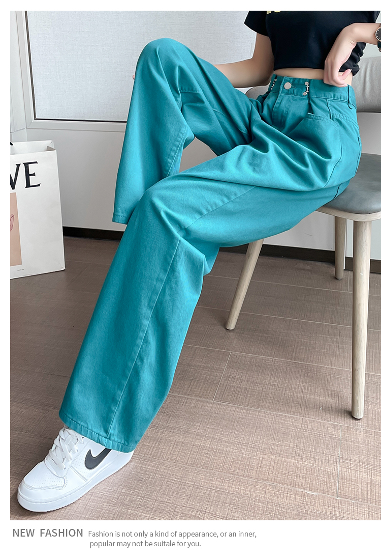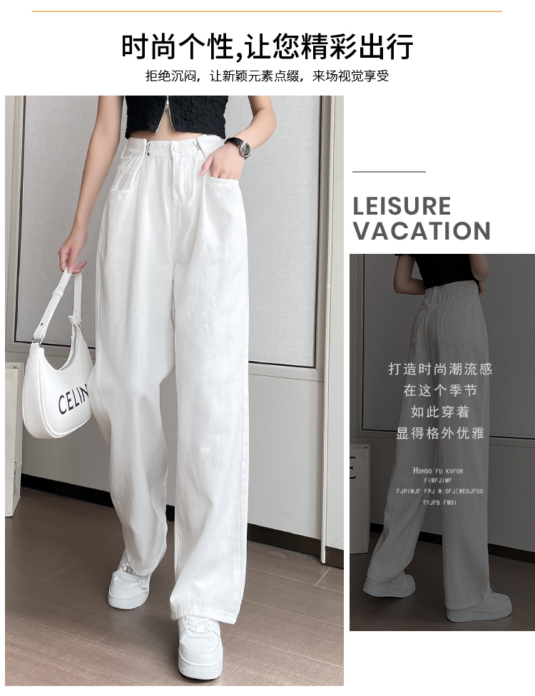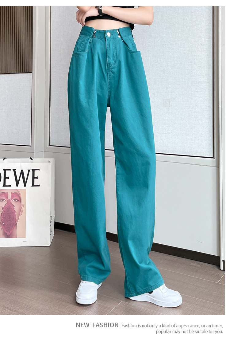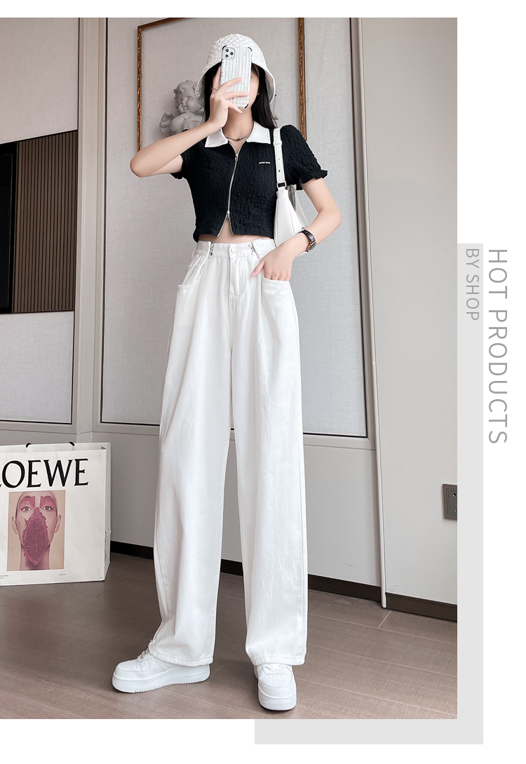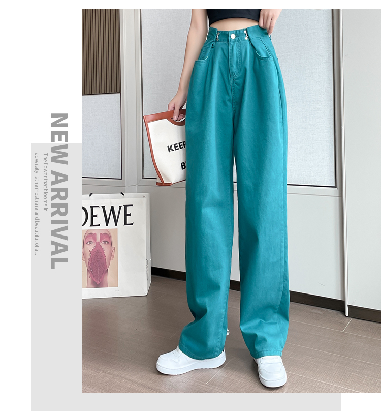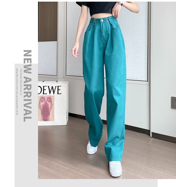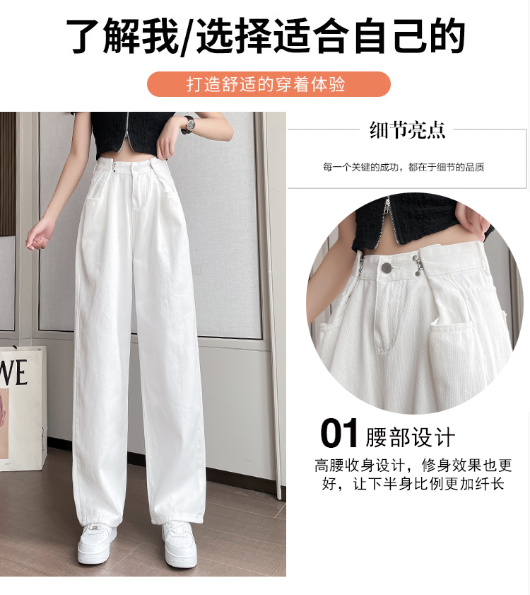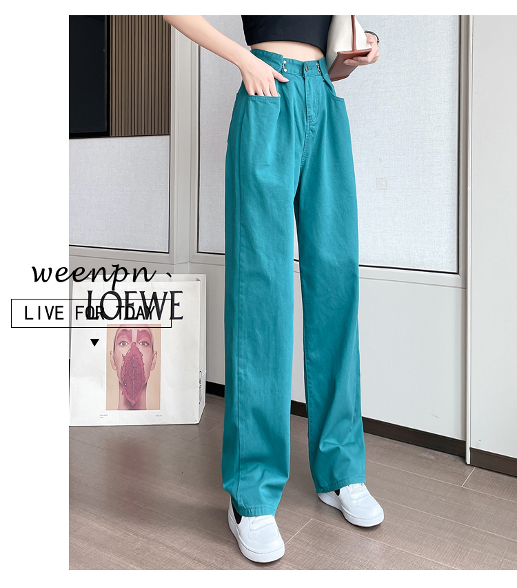 高腰阔腿牛仔裤女2021年新款夏天薄款宽松显瘦设计感直筒拖地裤子