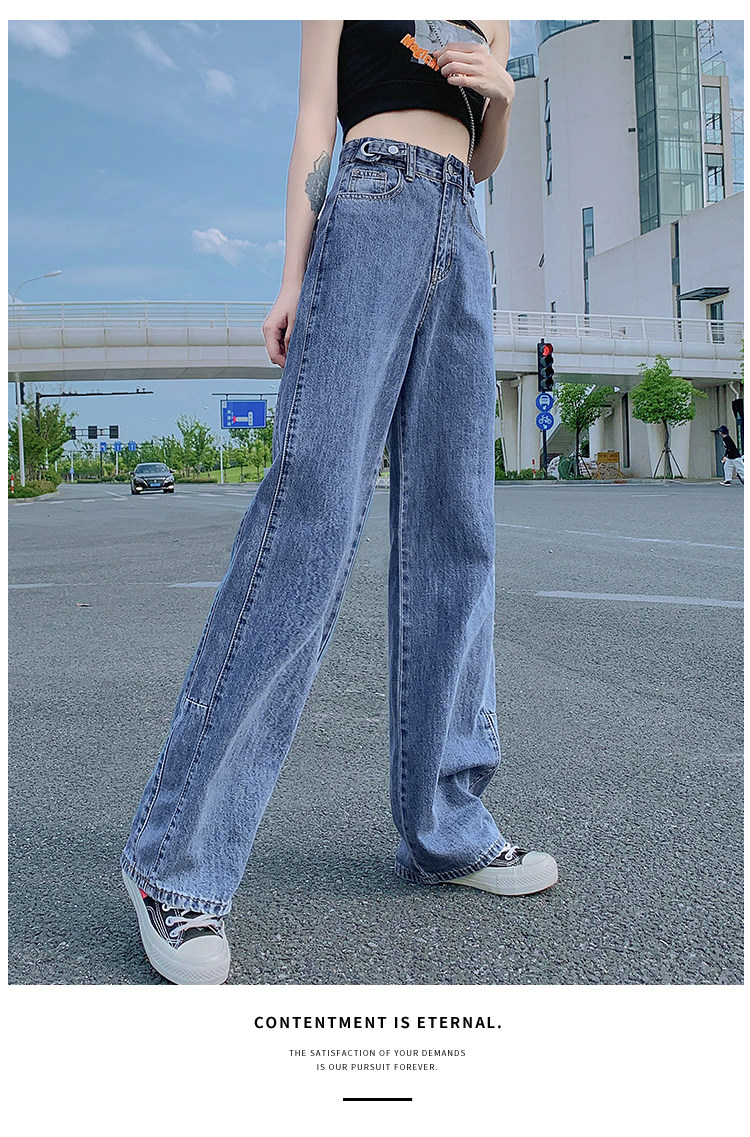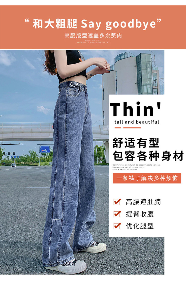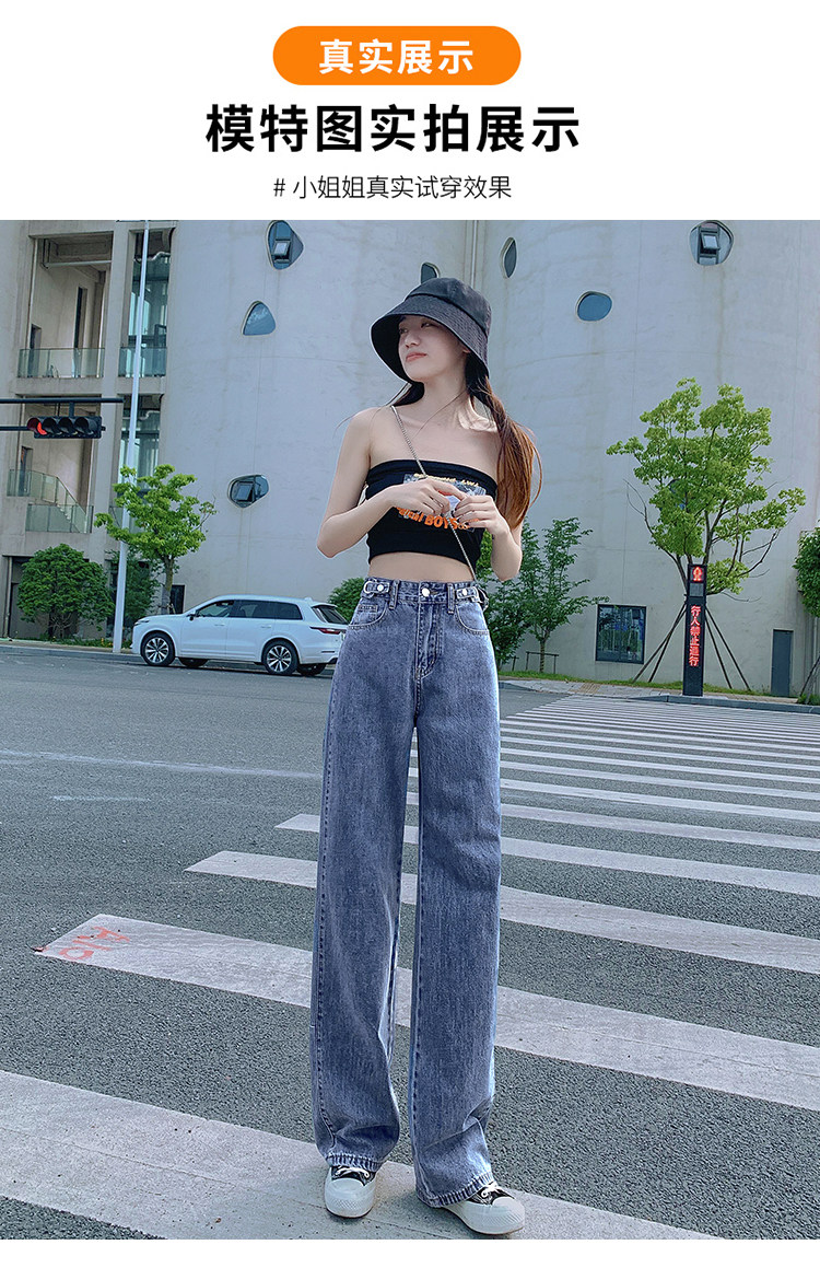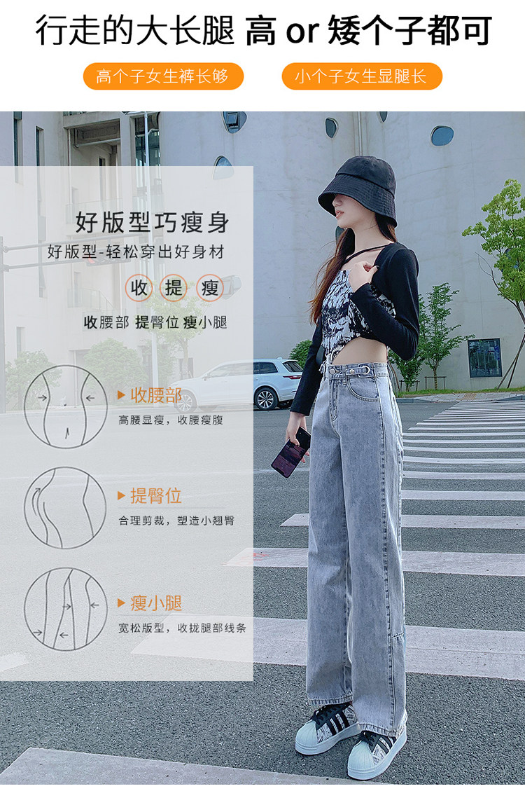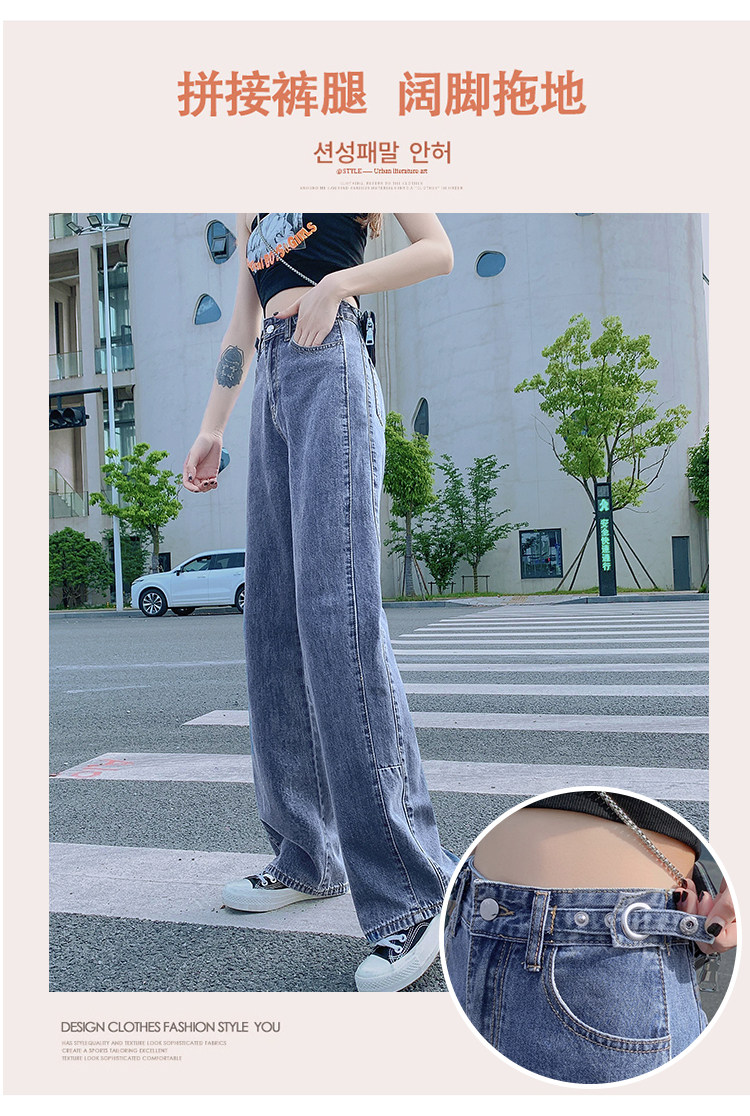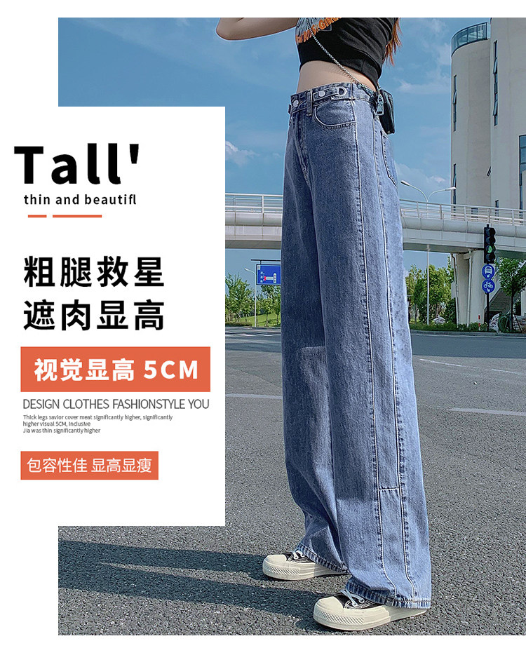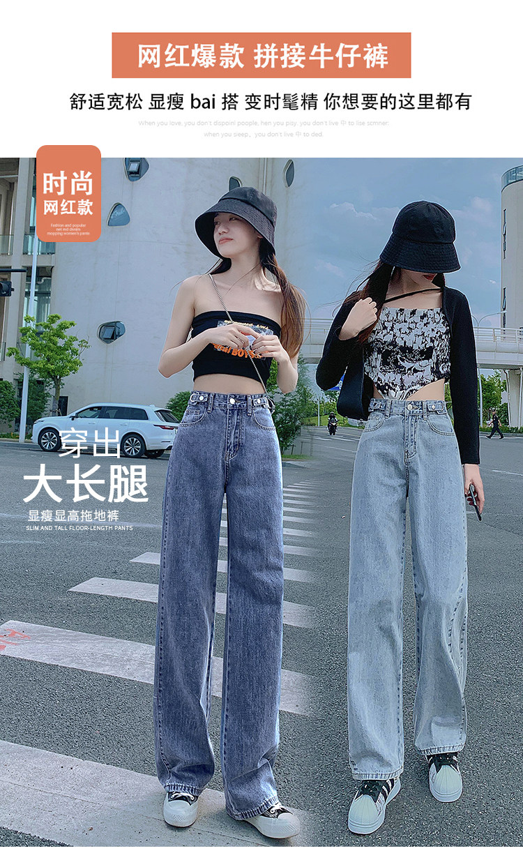实拍垂坠感阔腿牛仔裤女夏季薄款高腰直筒拼接显瘦拖地宽松