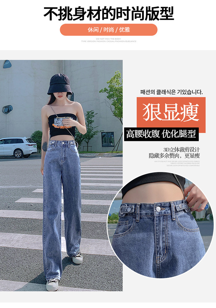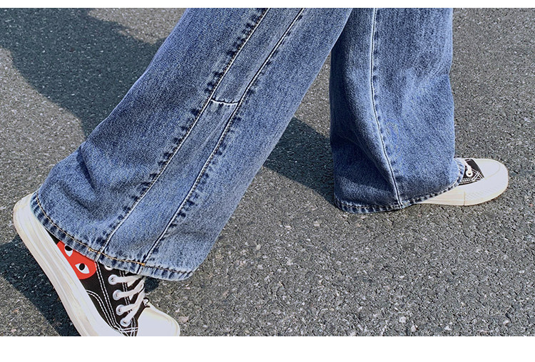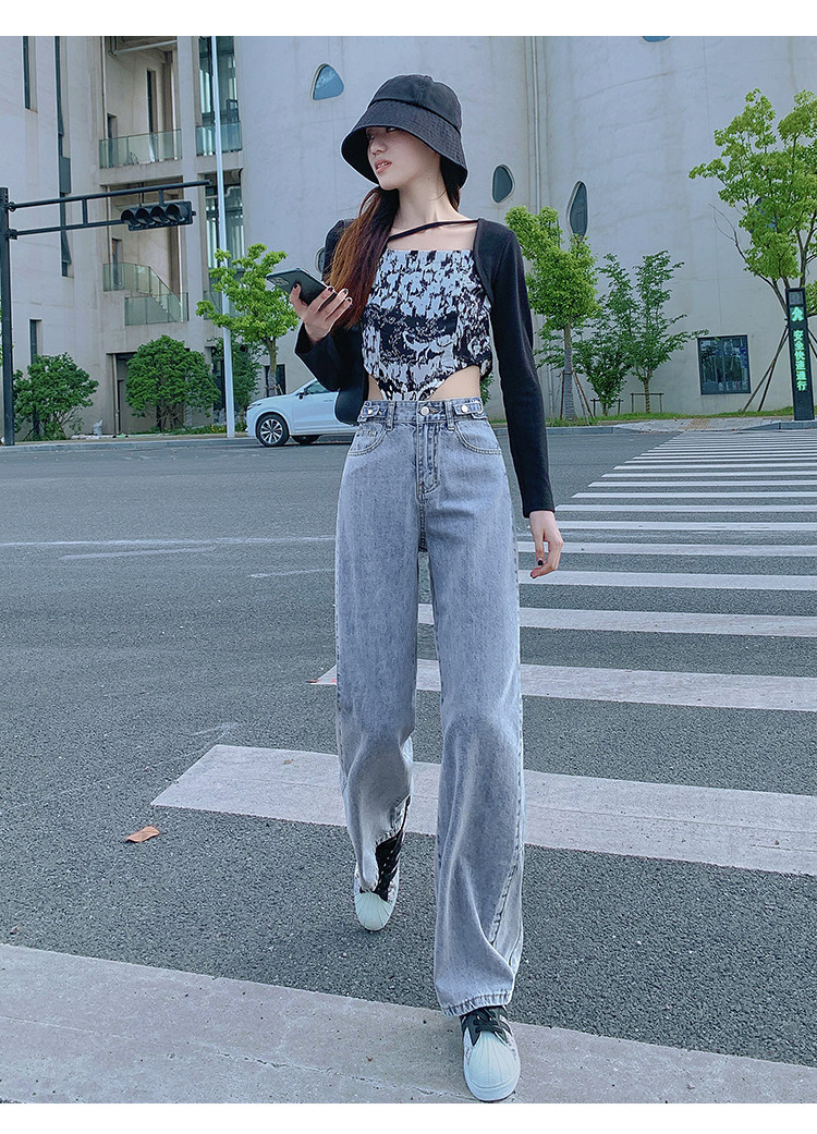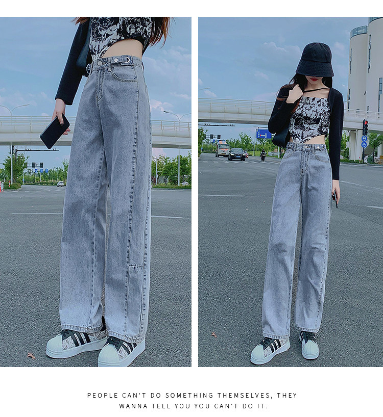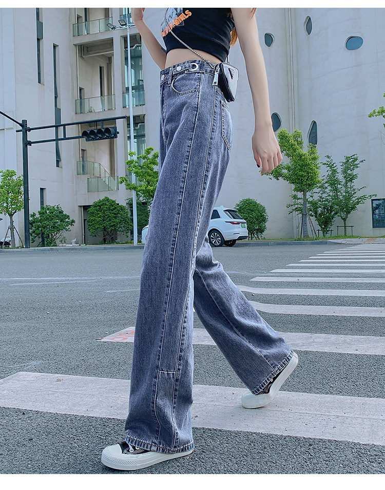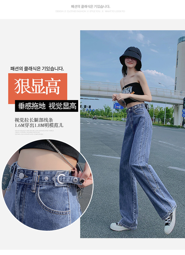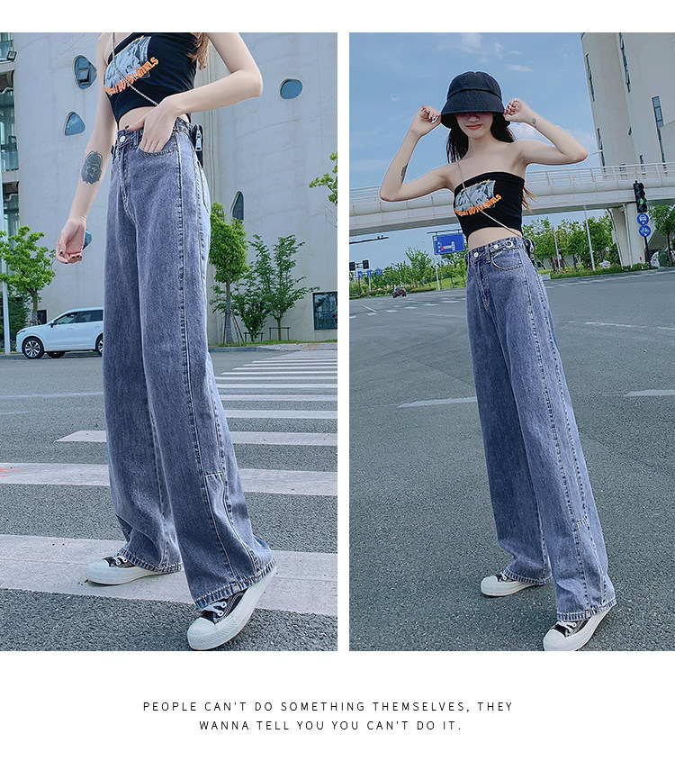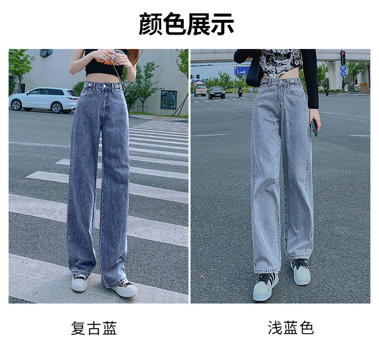 实拍垂坠感阔腿牛仔裤女夏季薄款高腰直筒拼接显瘦拖地宽松