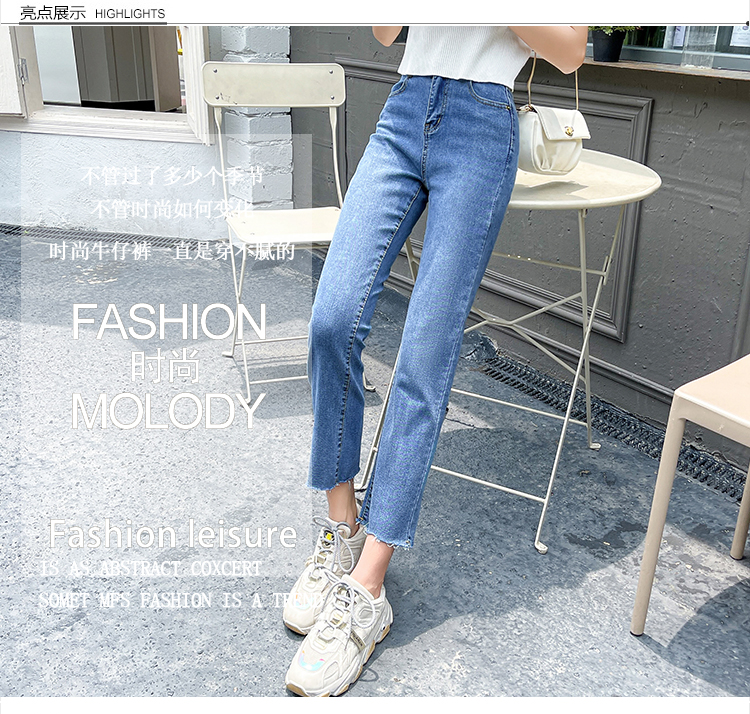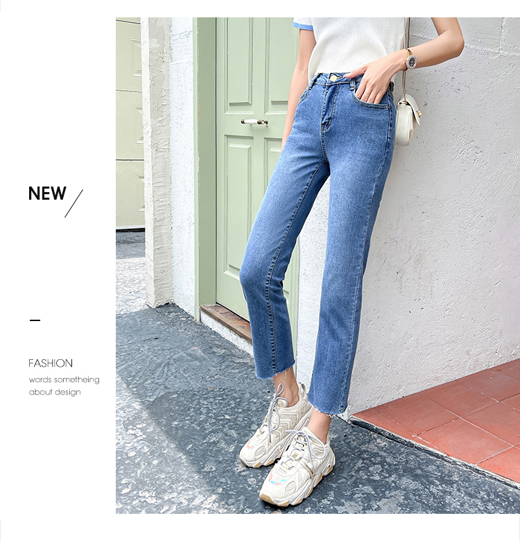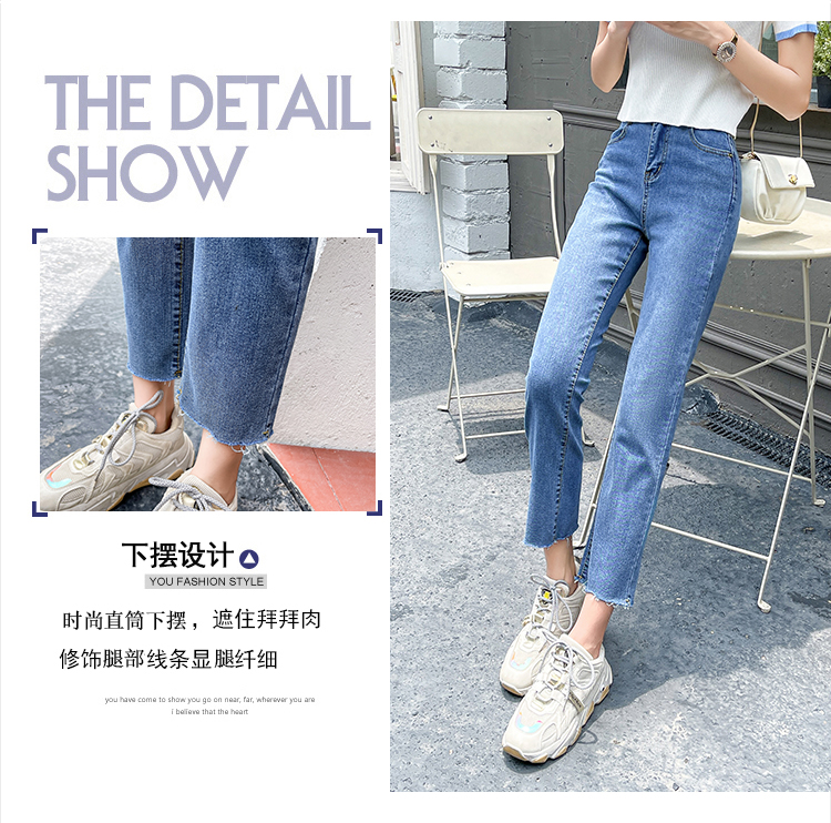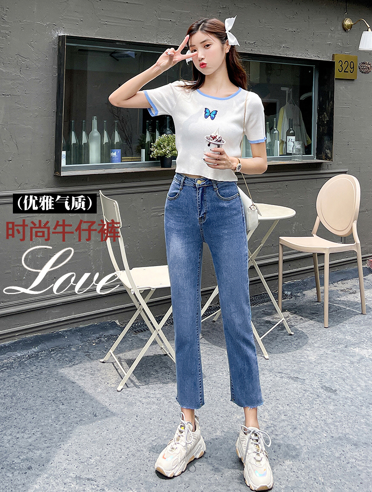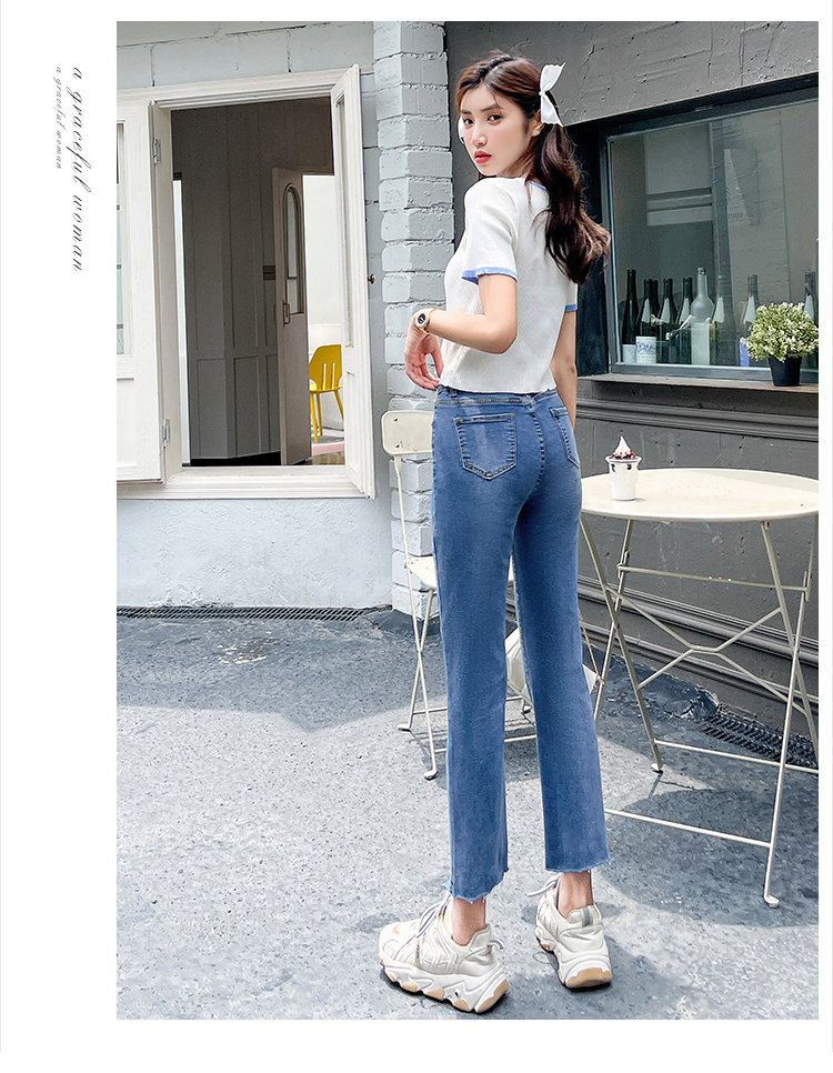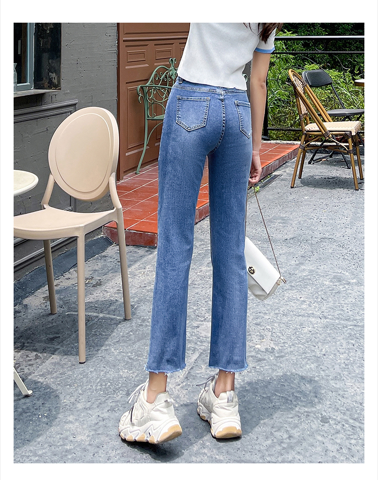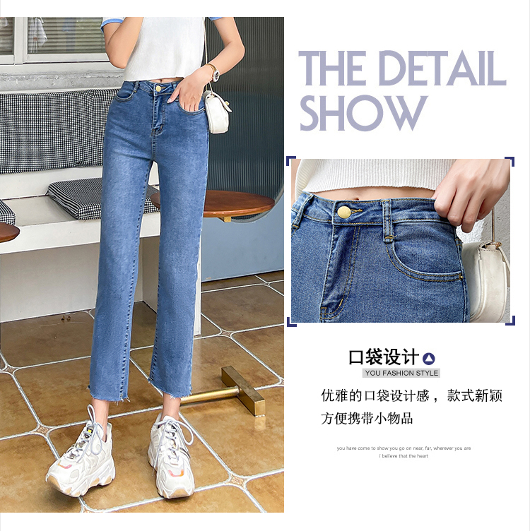 实拍薄款弹力牛仔裤女直筒阔腿chic2021夏季年新款显瘦九分烟管裤