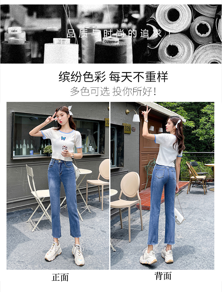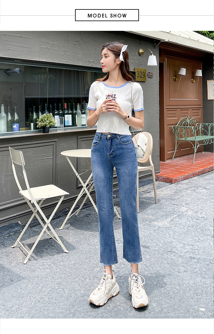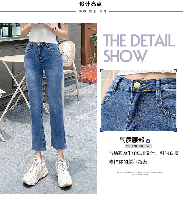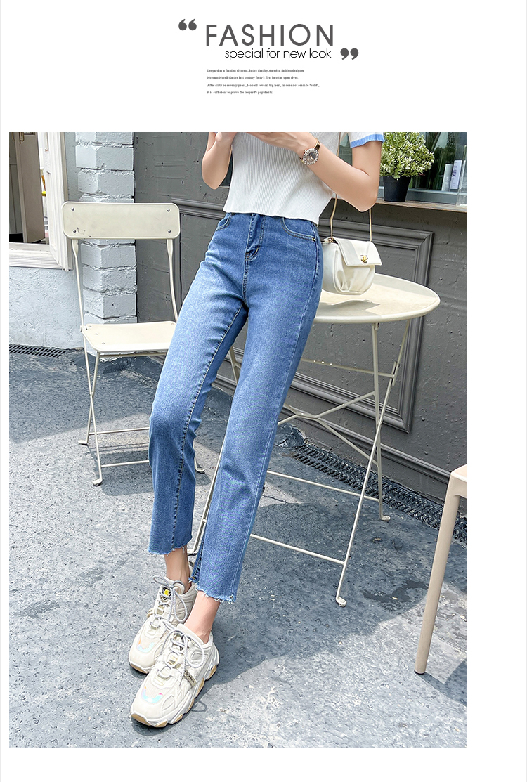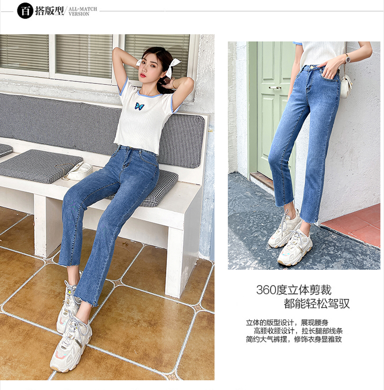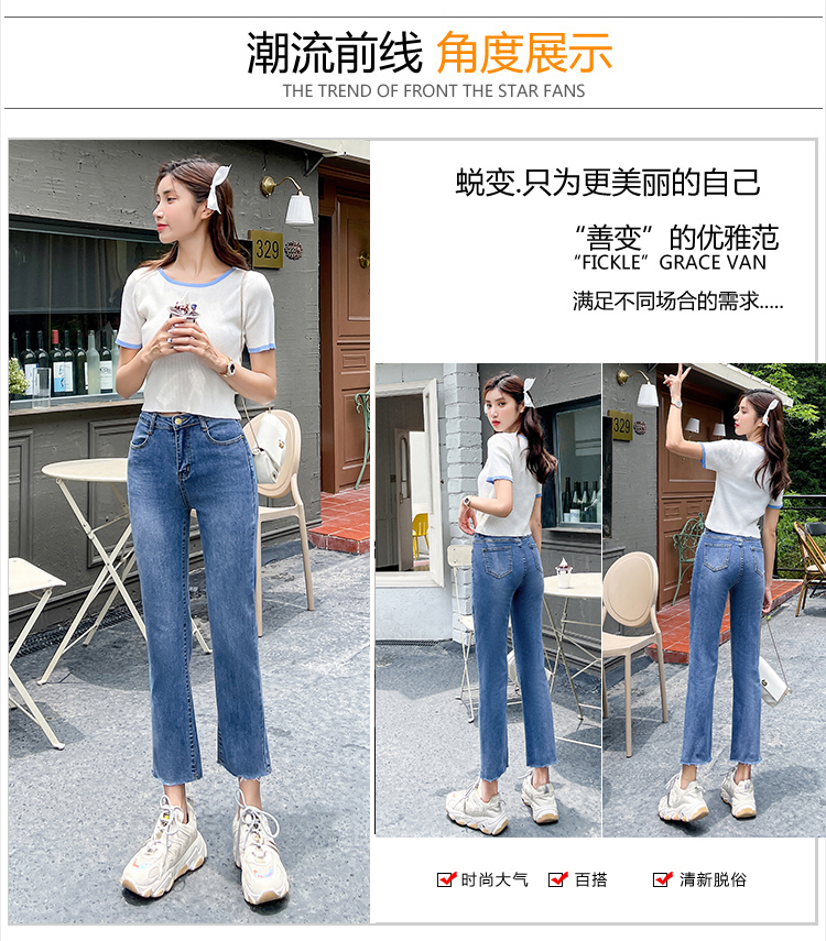 实拍薄款弹力牛仔裤女直筒阔腿chic2021夏季年新款显瘦九分烟管裤