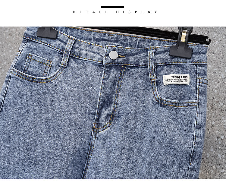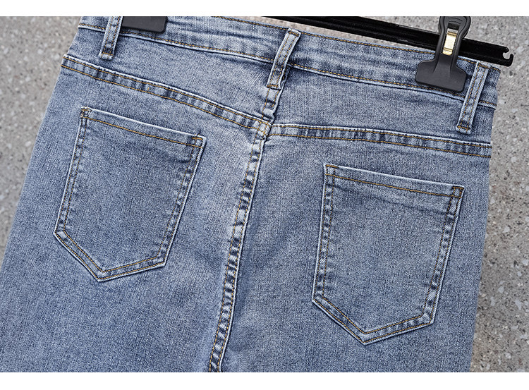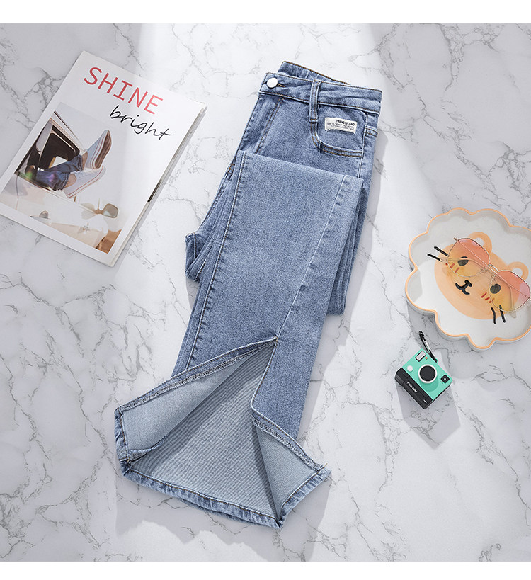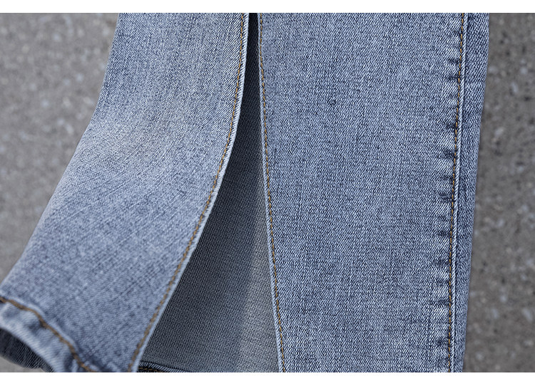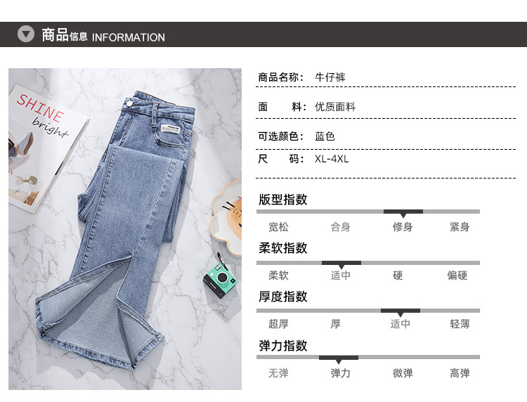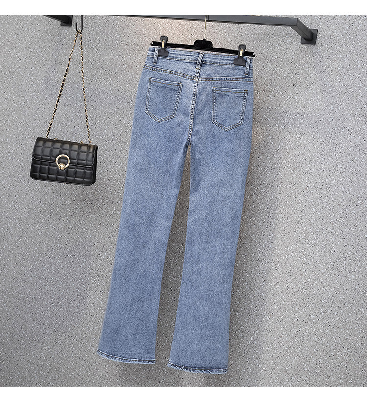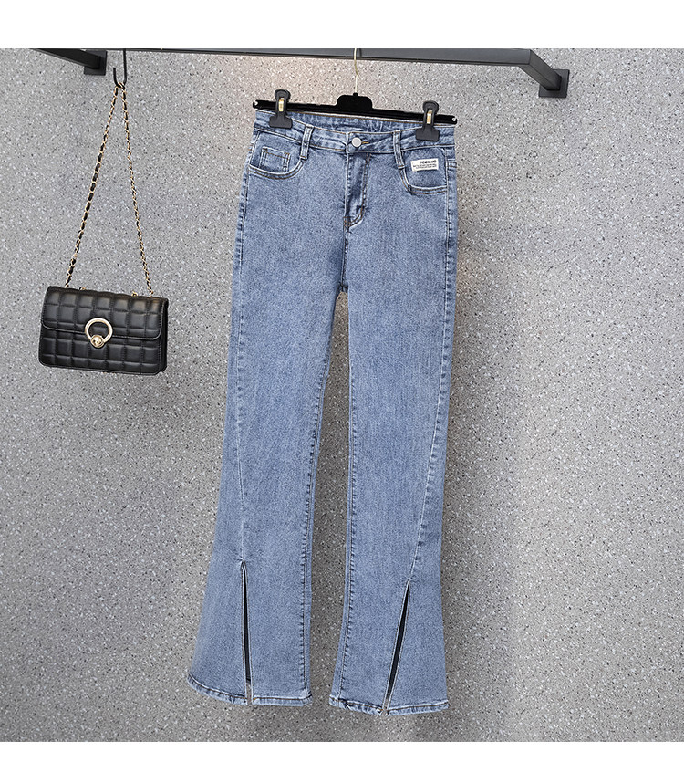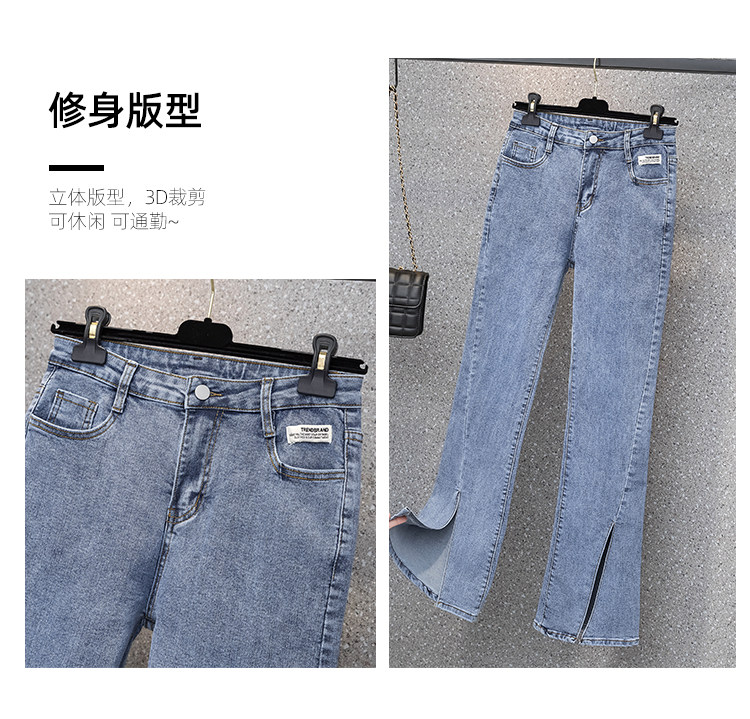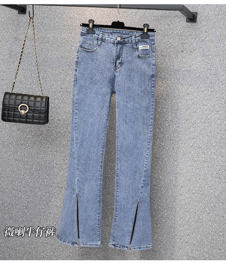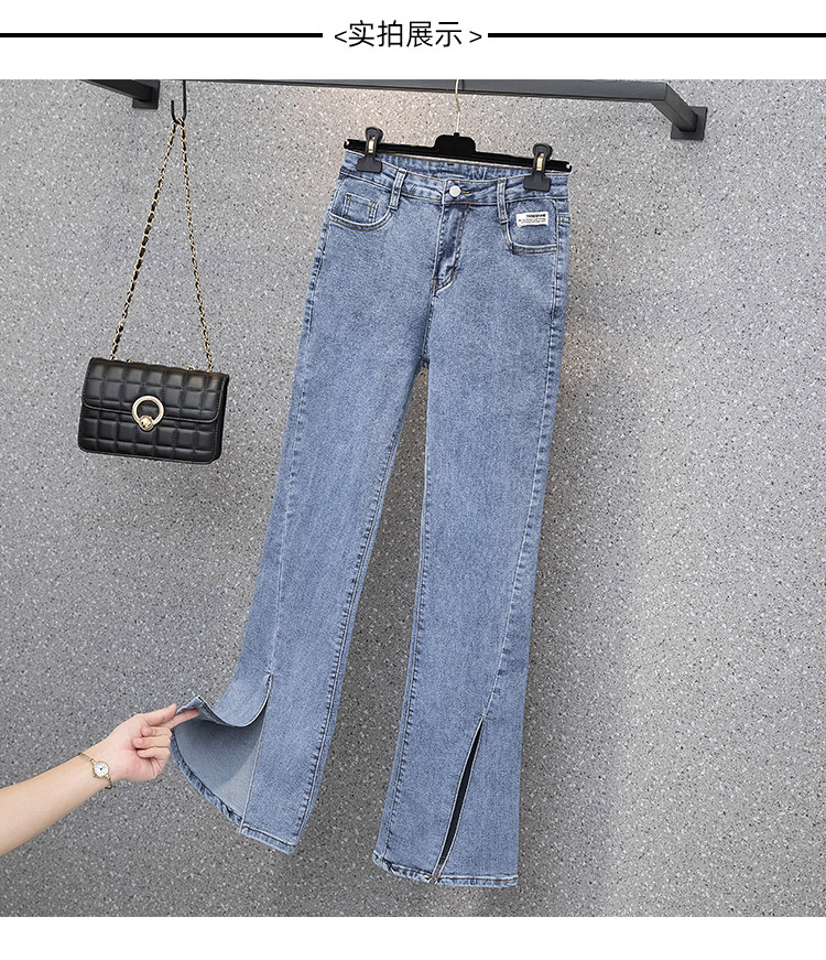 实拍大码女装高腰开叉弹力牛仔裤女夏胖MM显瘦显高喇叭裤子