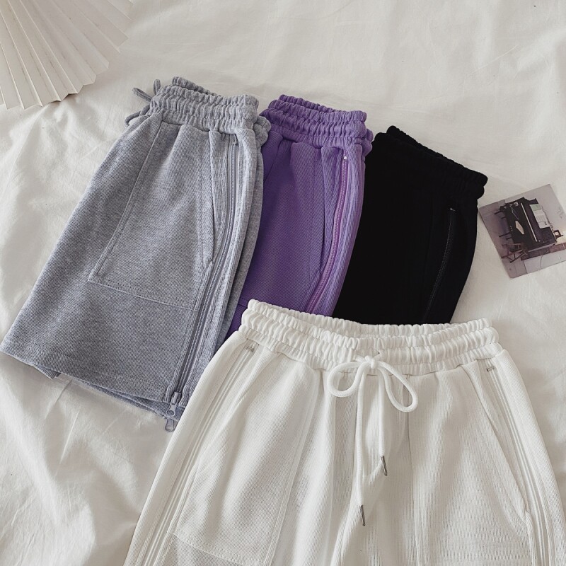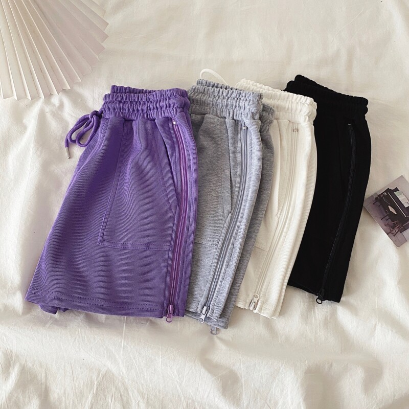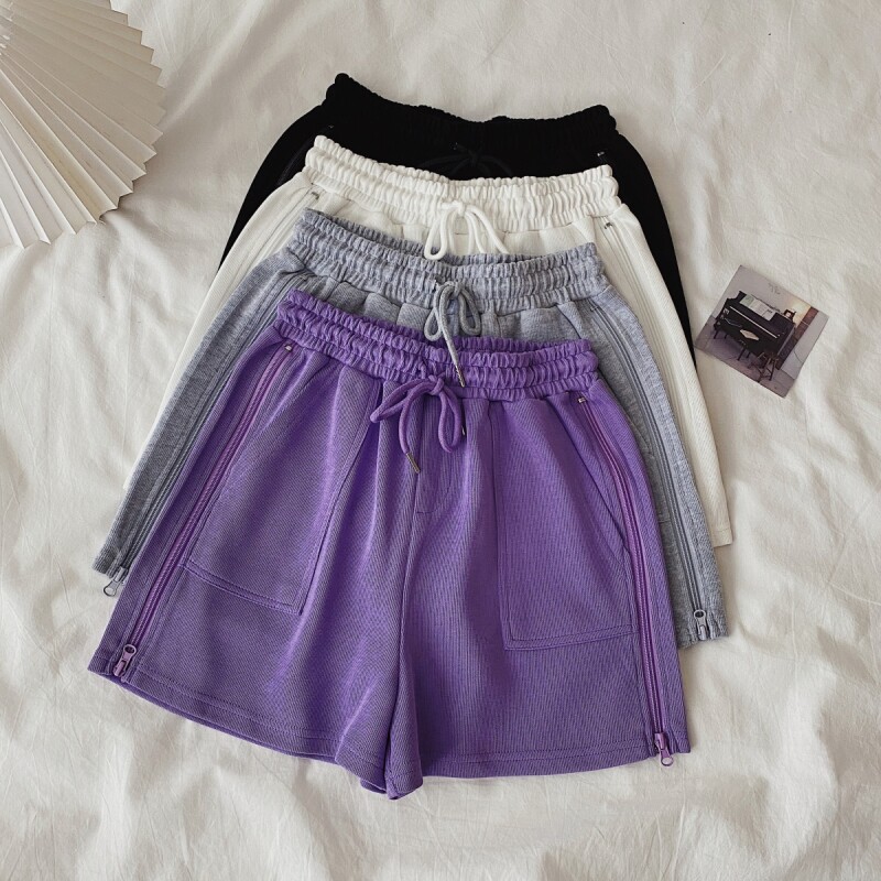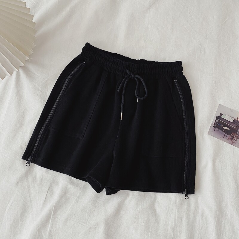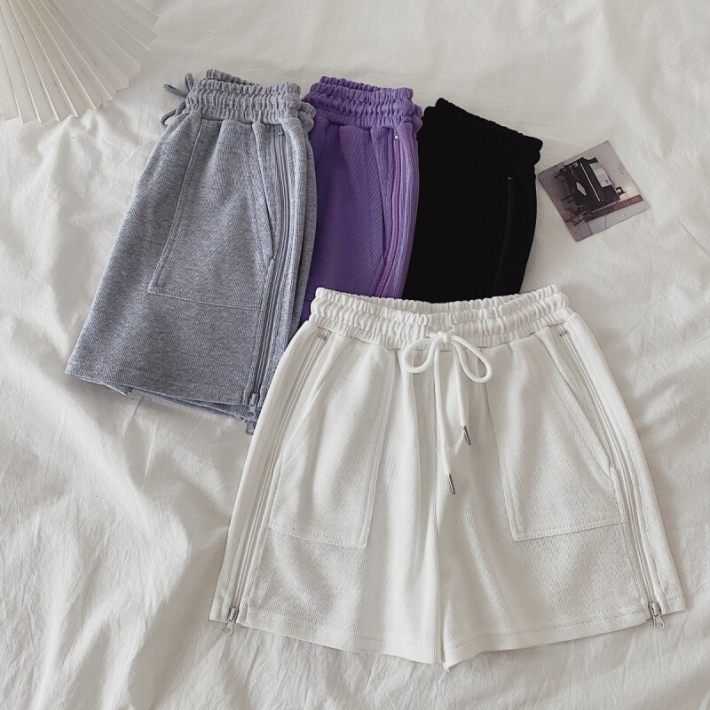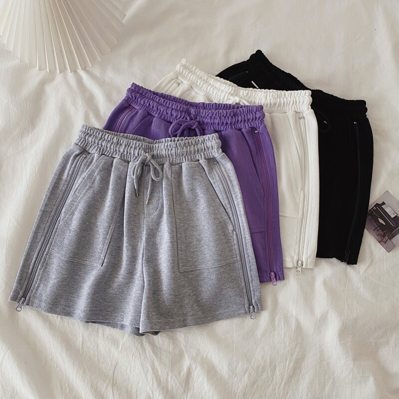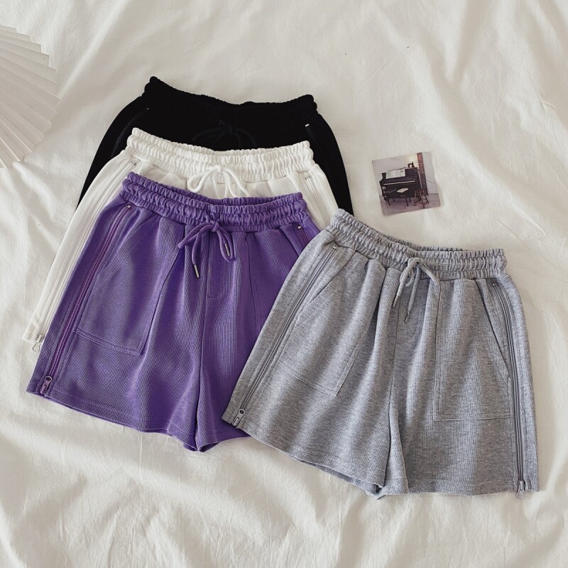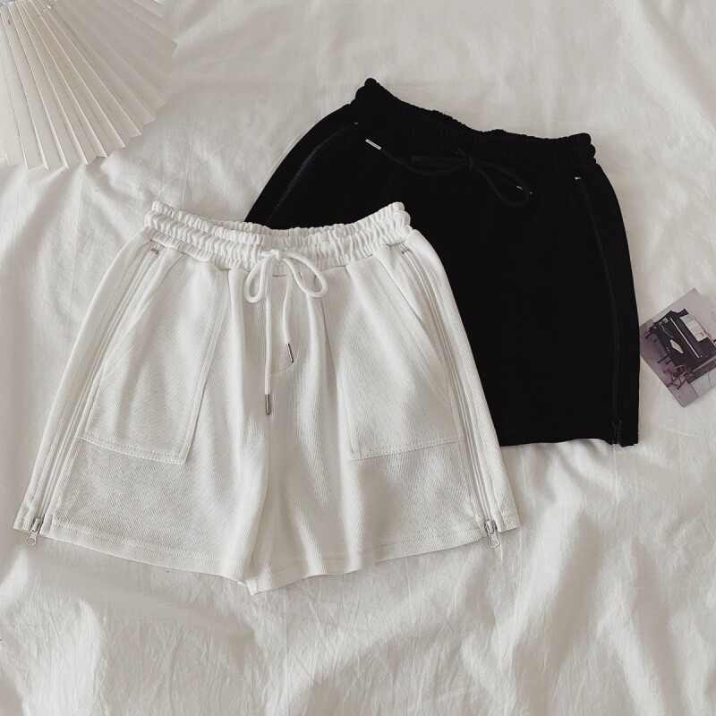 实拍现货 夏季新款韩版百搭短裤高腰运动裤哈伦裤拉链休闲裤女